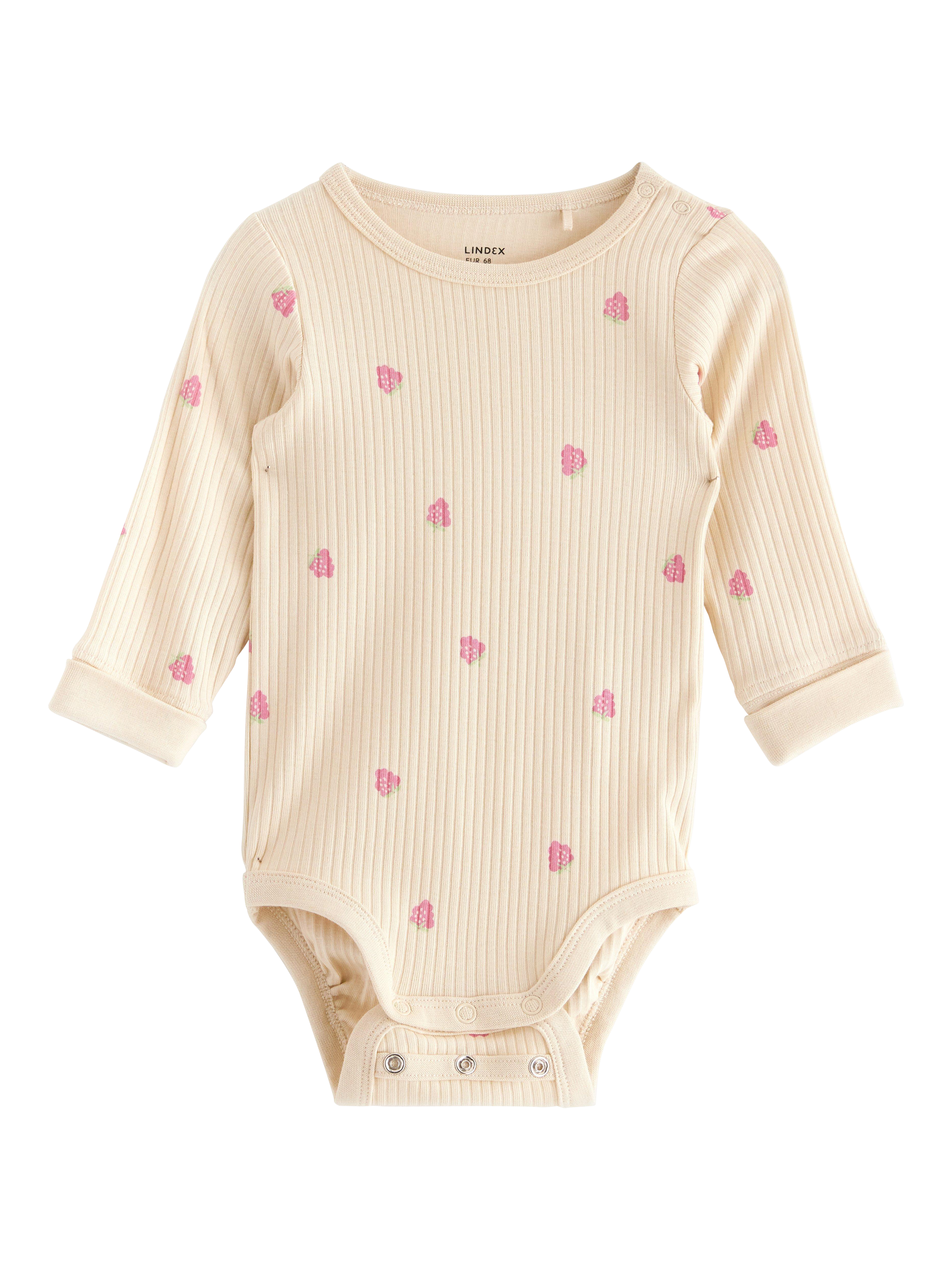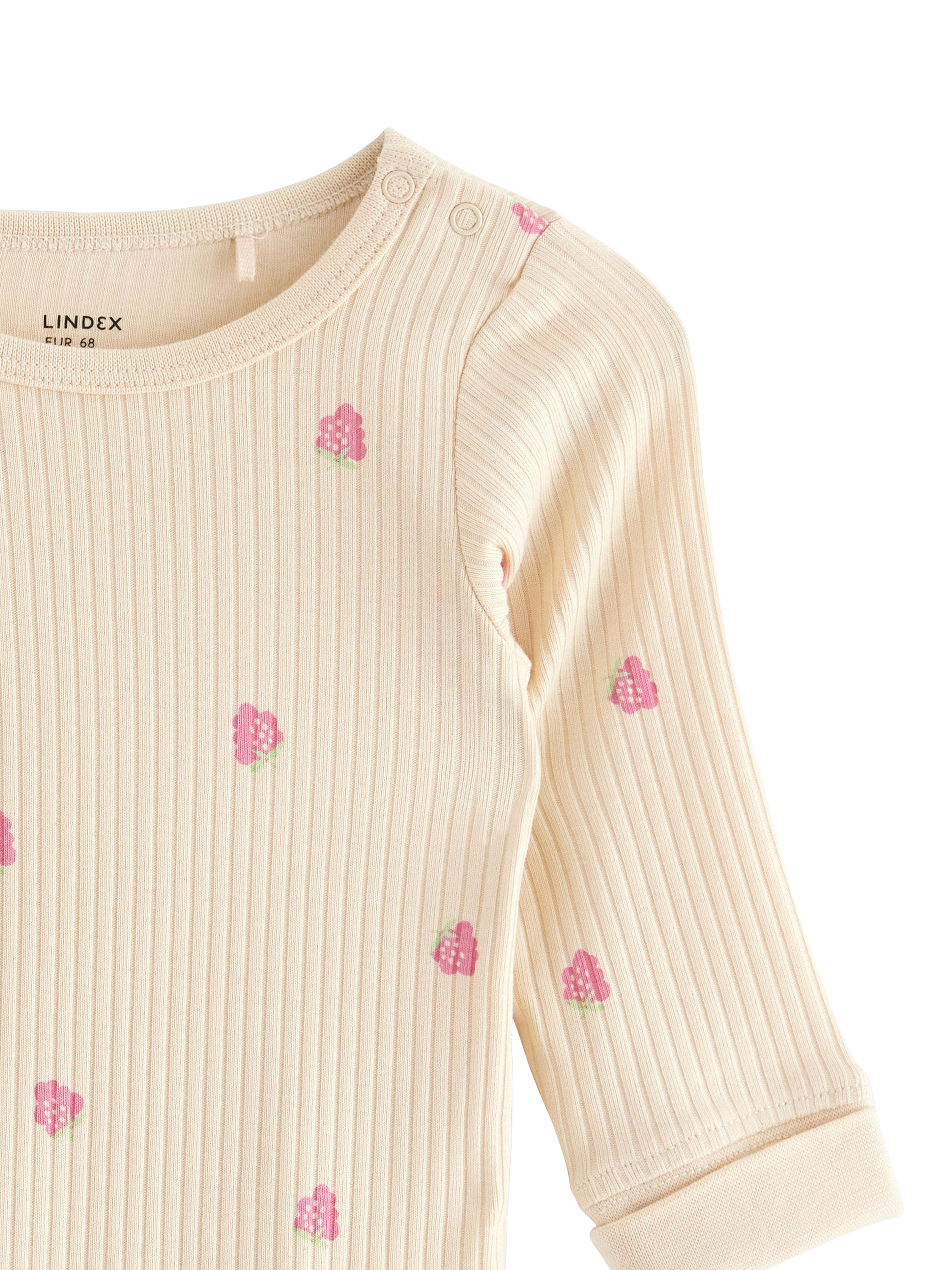 Long-sleeved bodysuit in soft, ribbed cotton with an allover pattern. With our smart Extended size solution the baby can grow a size and still keep the same garment.