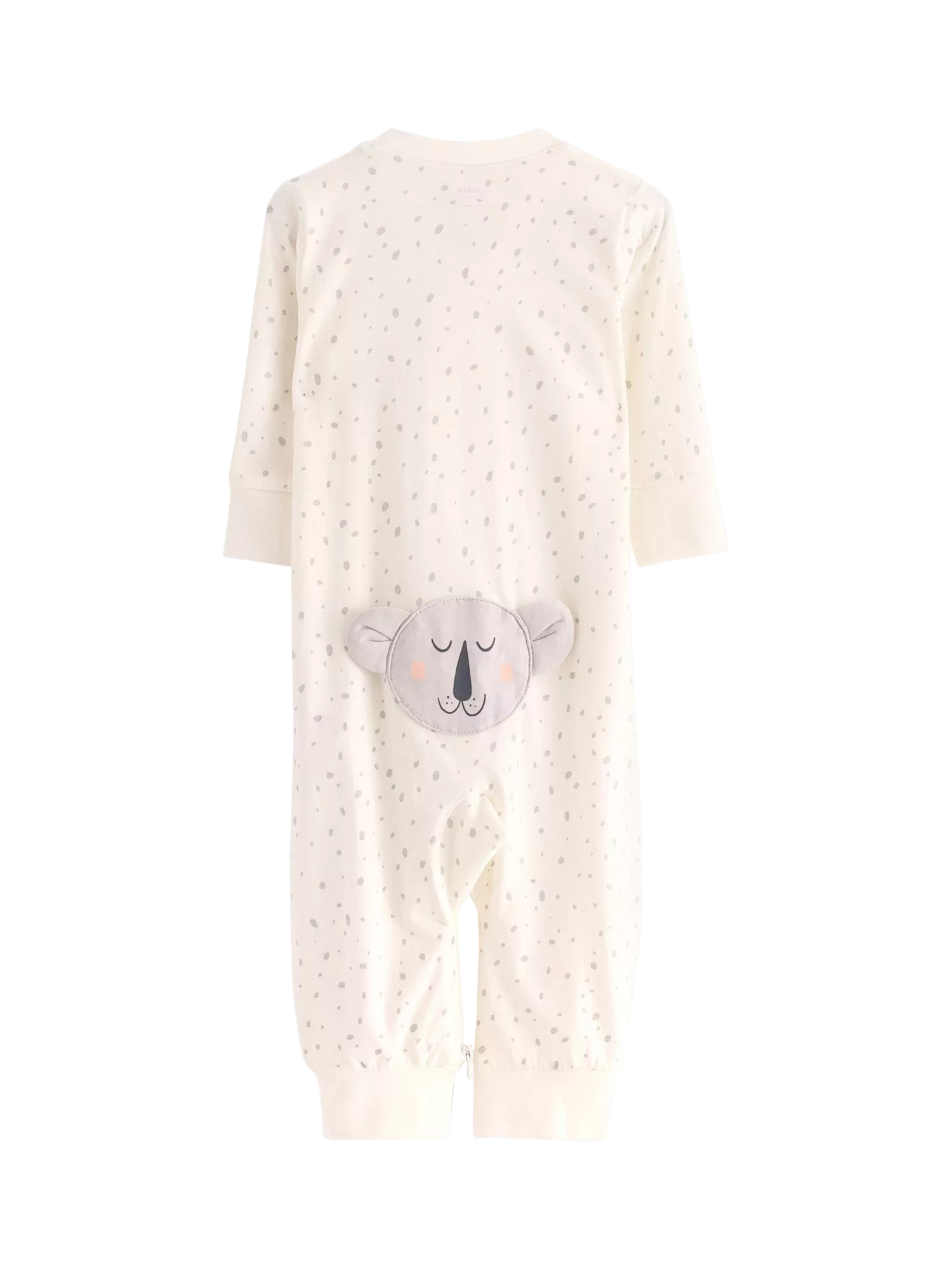 A cosy sleepsuit made of soft cotton fabric with long sleeves and a handy two-way zip to make diaper changes much less of a hassle. Featuring a contented sleeping koala on the bottom.