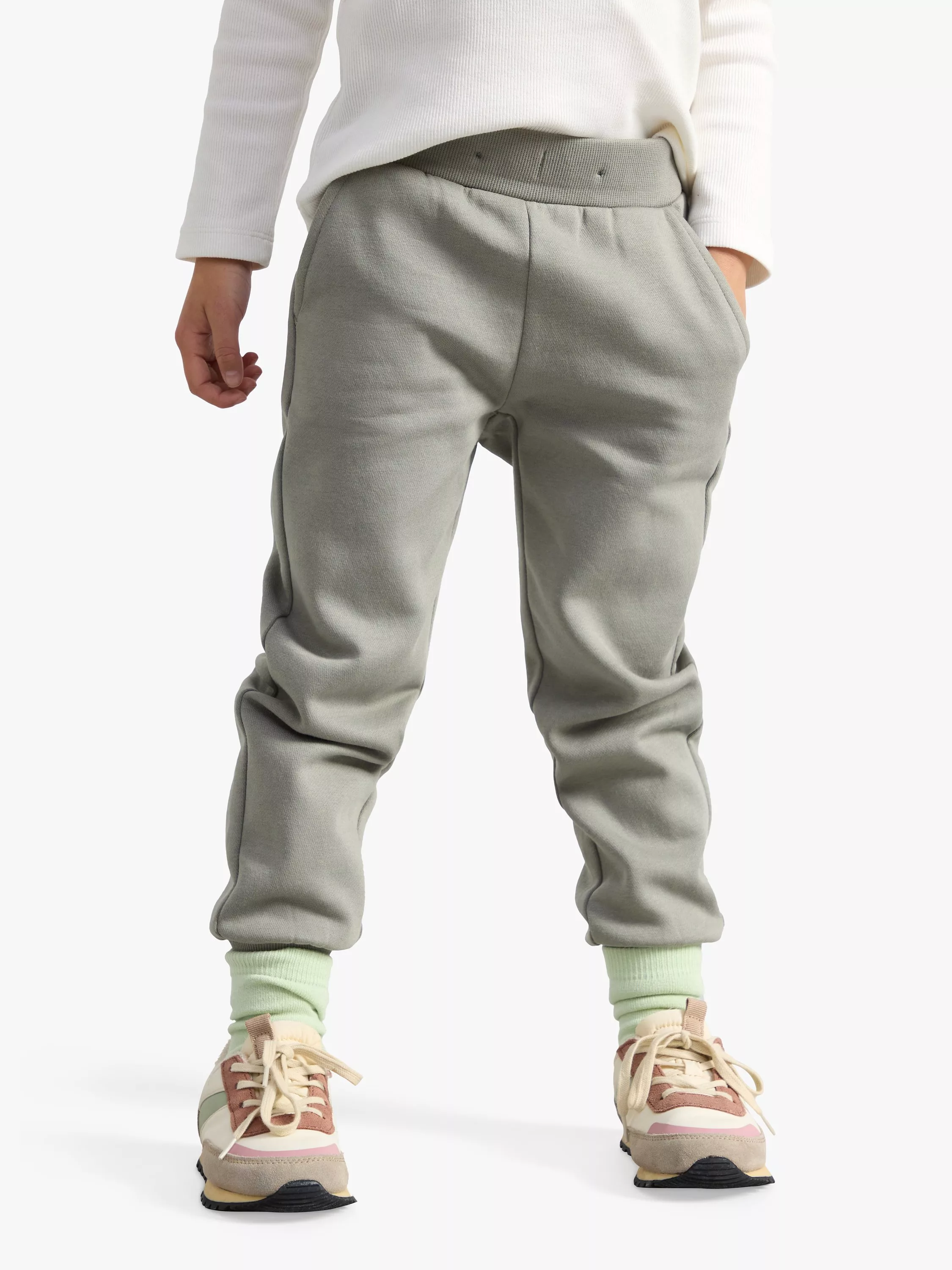 Soft, organic cotton blend joggers with side pockets and a brushed inside for extra warmth.
