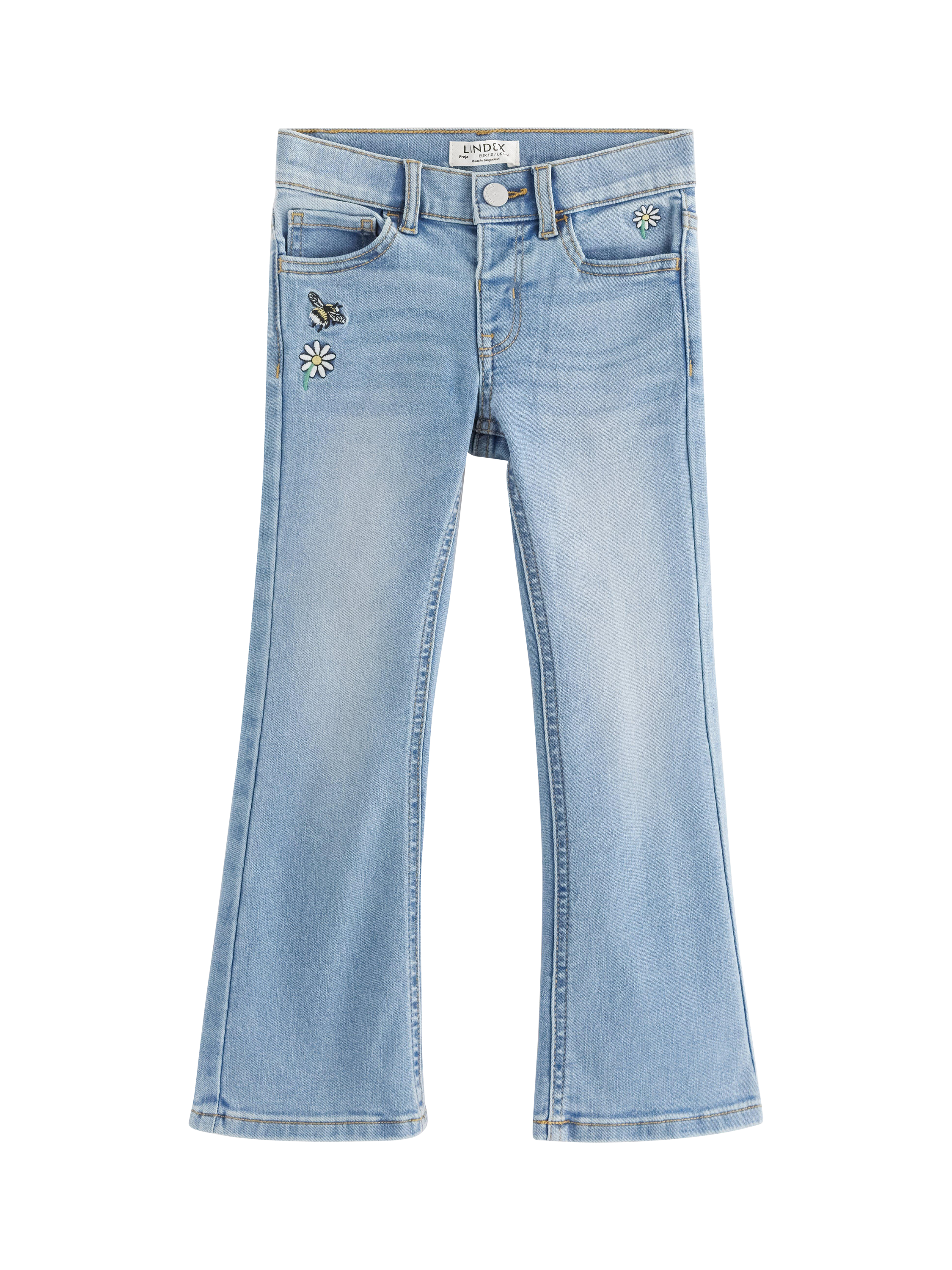 Just in time for spring, the Freja denim flared jeans offer a stylish, relaxed fit with unique bee embroidery.