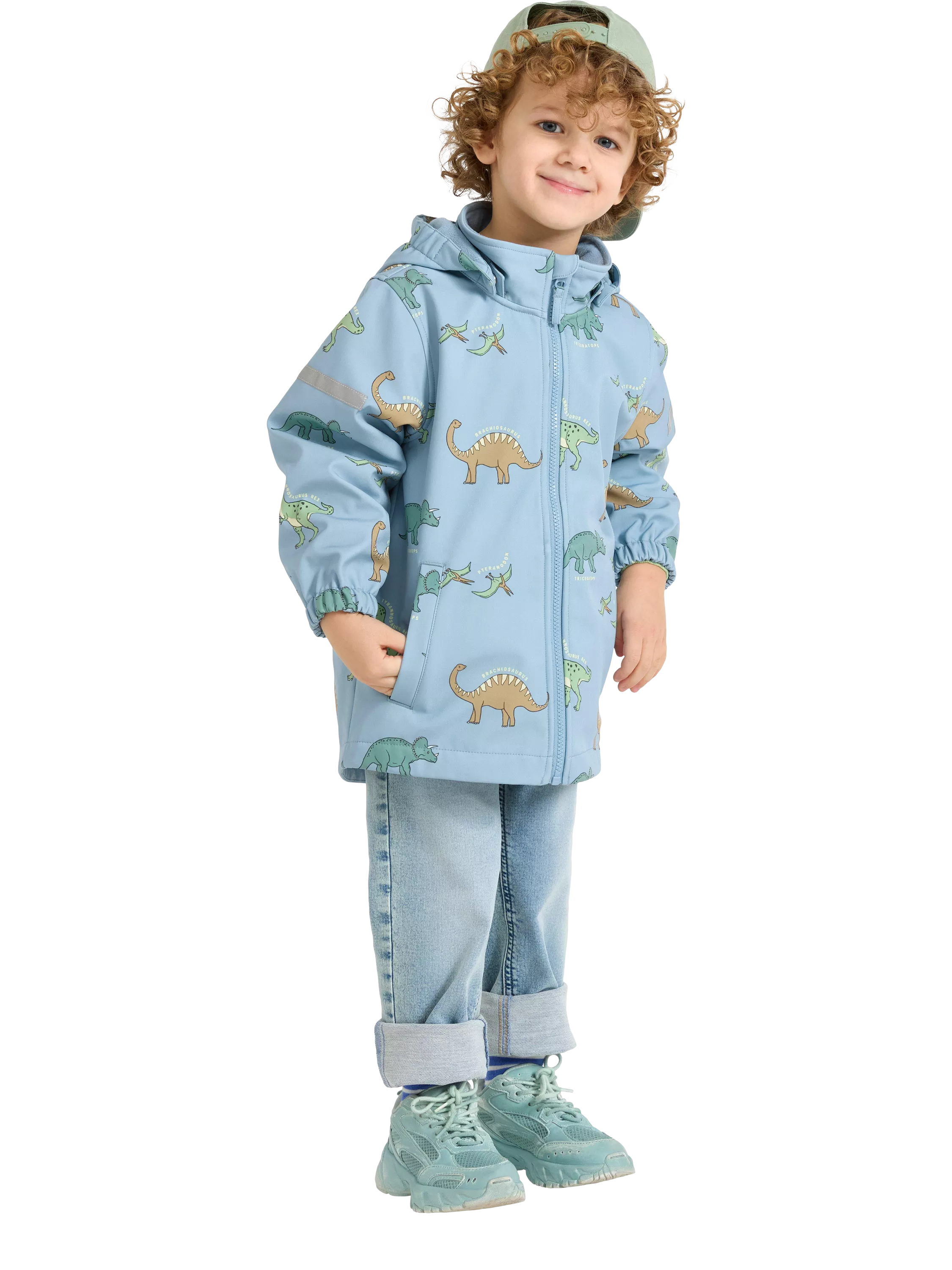 LindexKids' Dinosaur Print Waterproof Jacket, Light Blue