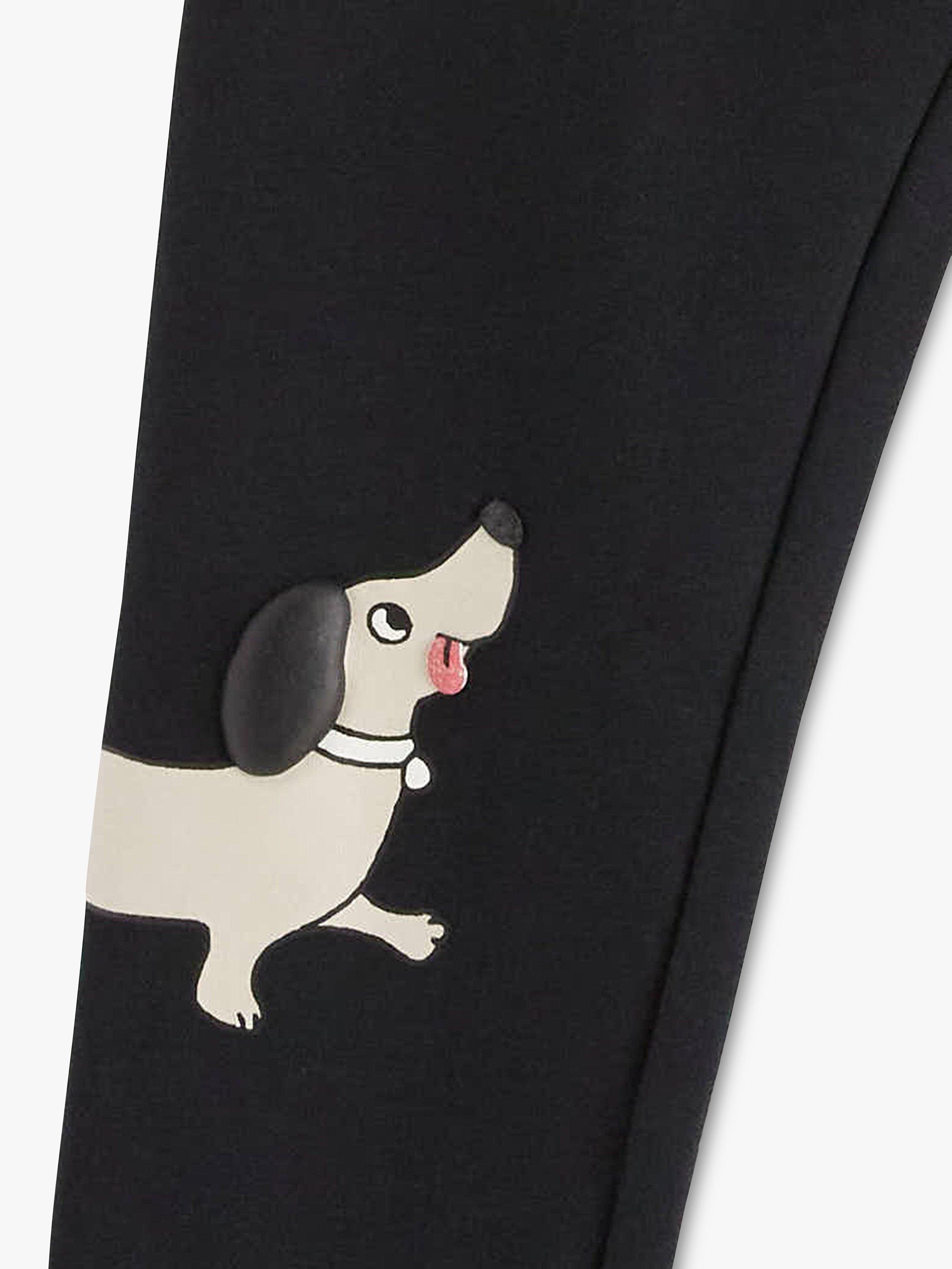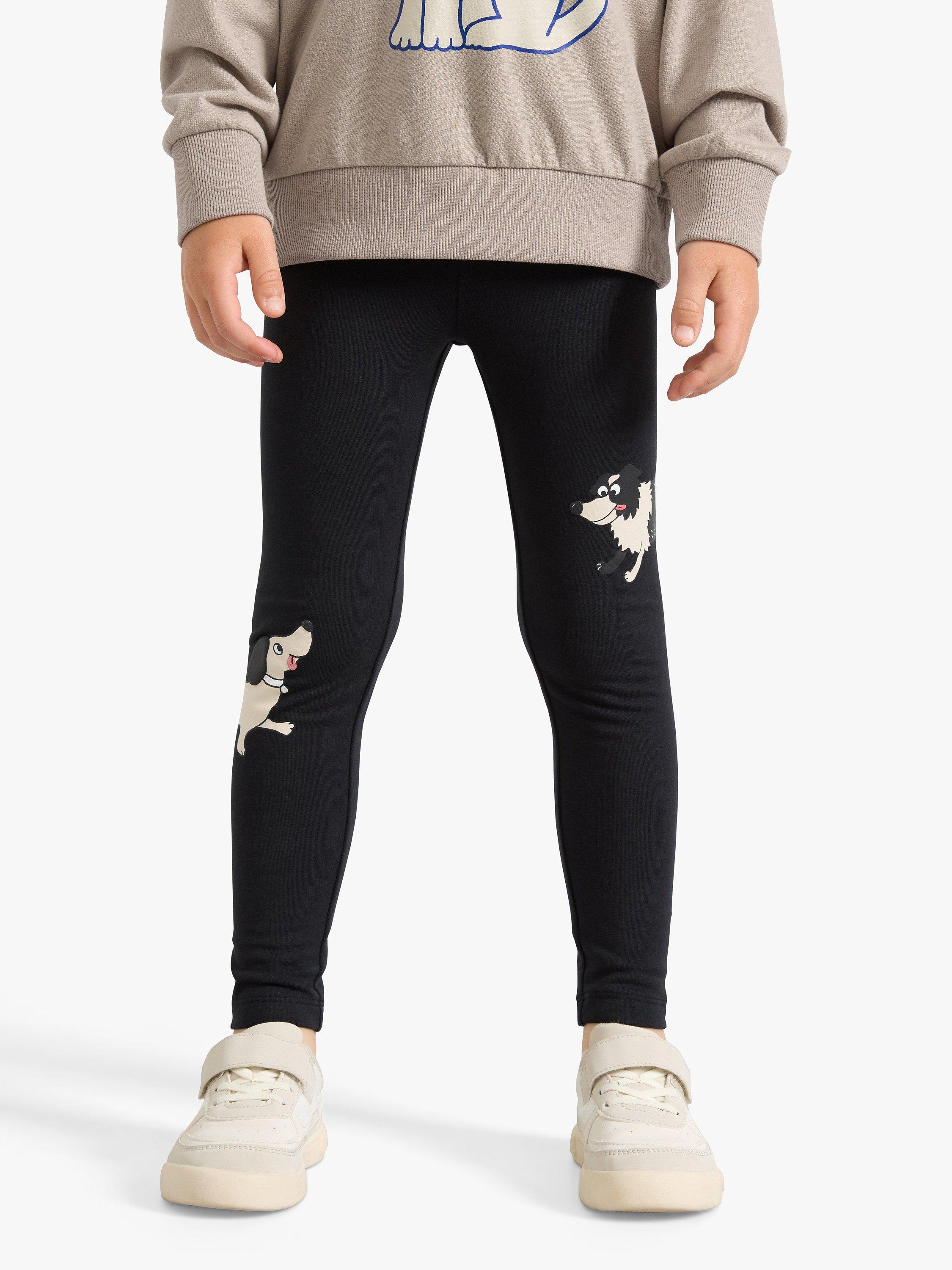 Comfy leggings made from cotton with a hint of stretch. Brushed inside for extra softness, they have an adjustable, elasticated waist and a cute dog print on each knee.