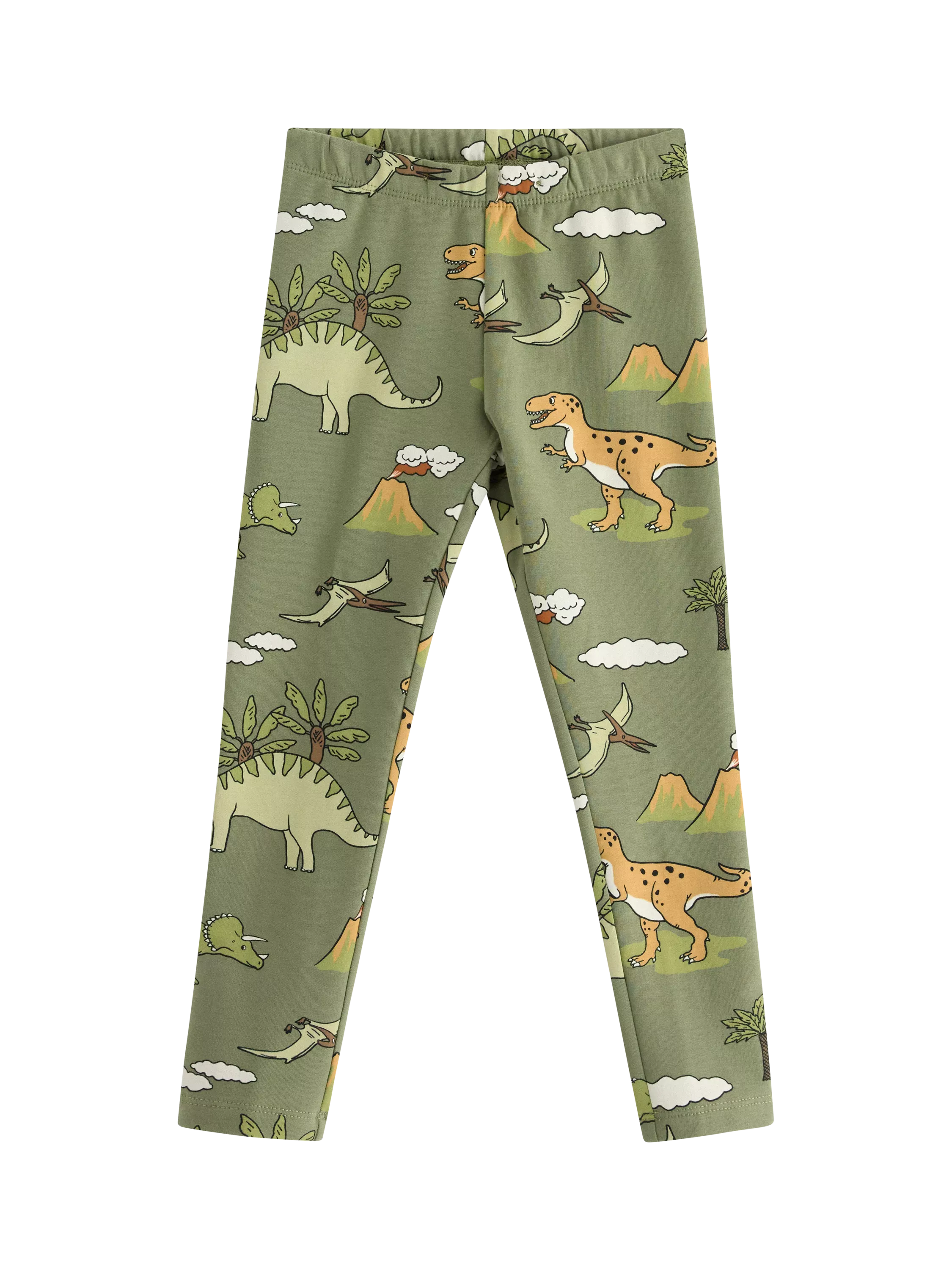 Comfortable cotton leggings from Lindex, featuring an elasticated waist and all-over dinosaur print, perfect for casual and playful wear.