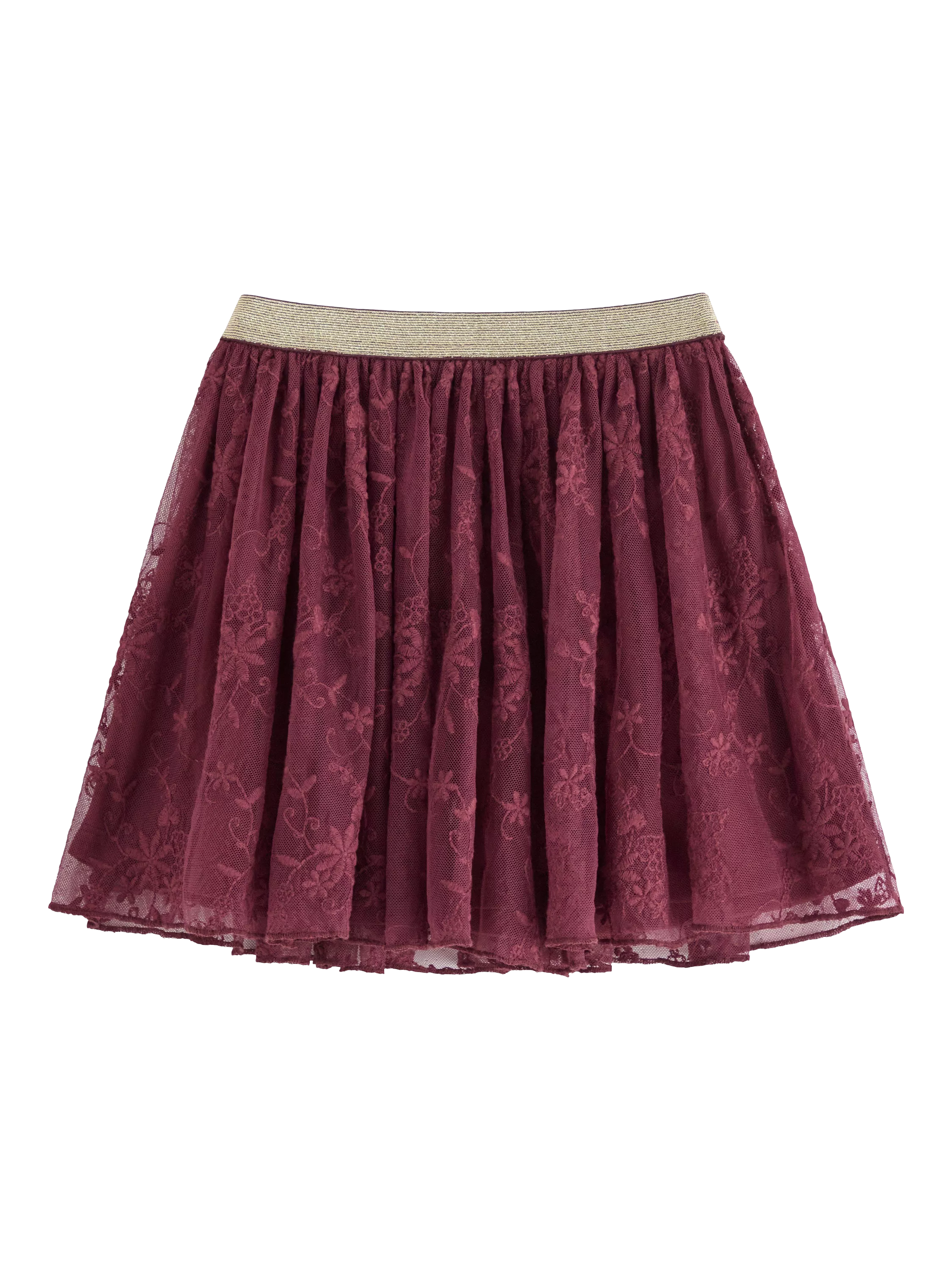 Jersey skirt with sheer lace and a comfortable elasticated waist.