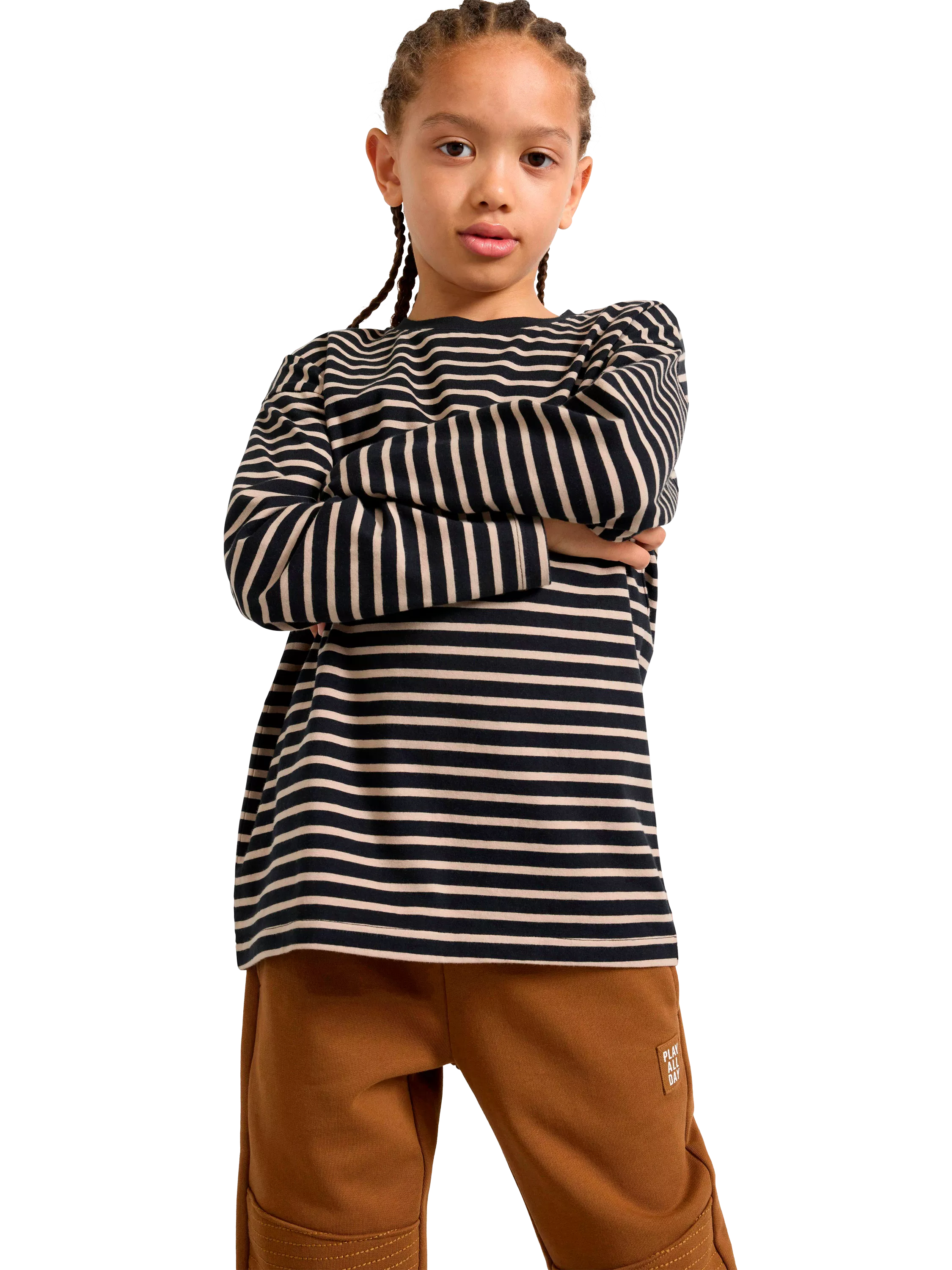 LindexKids' Essential Stripe Long Sleeve Top, Black/Multi