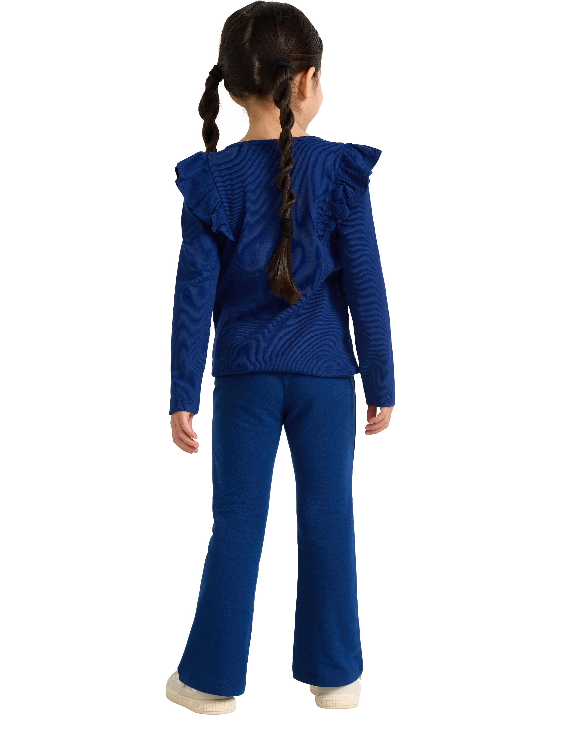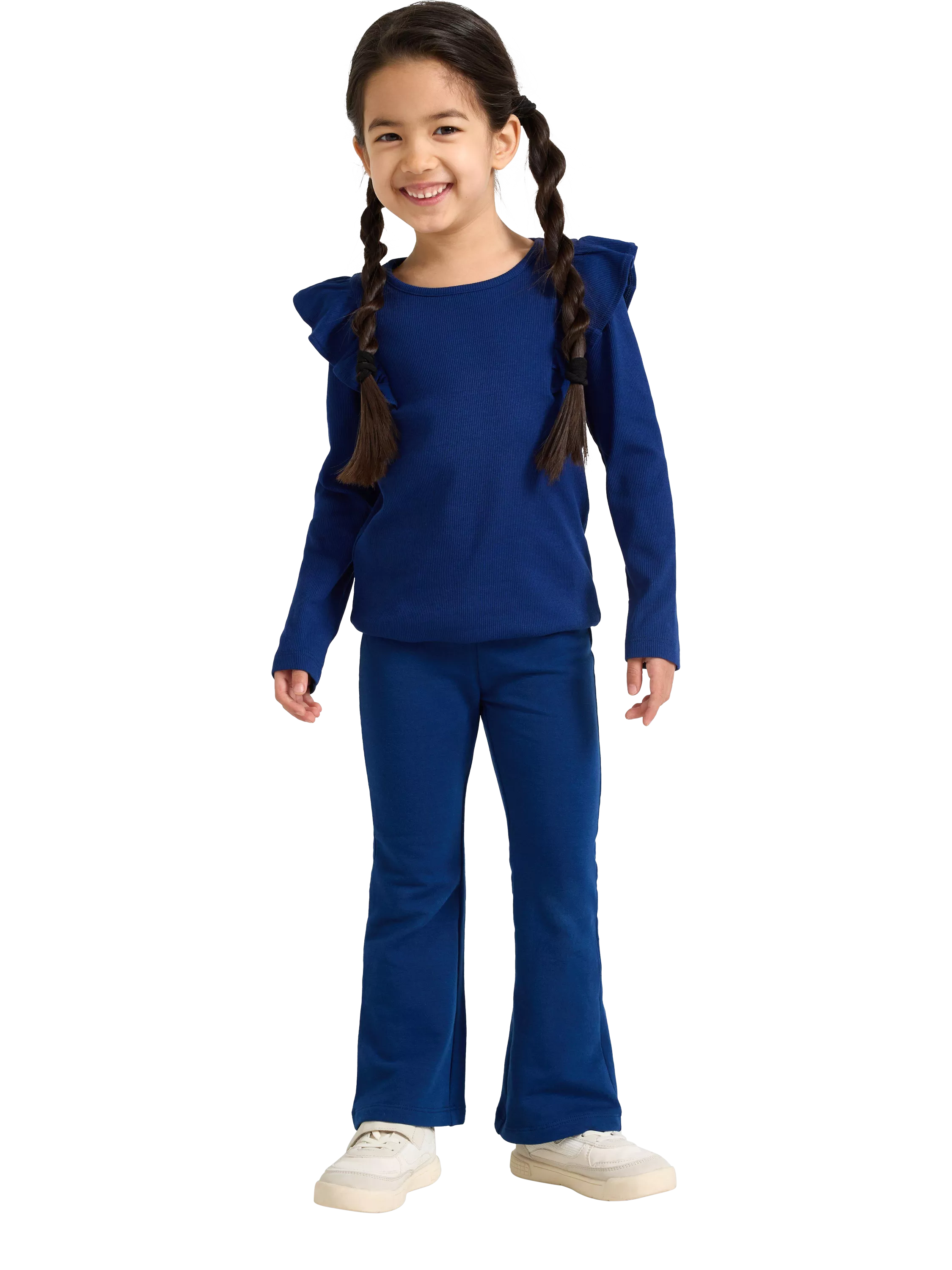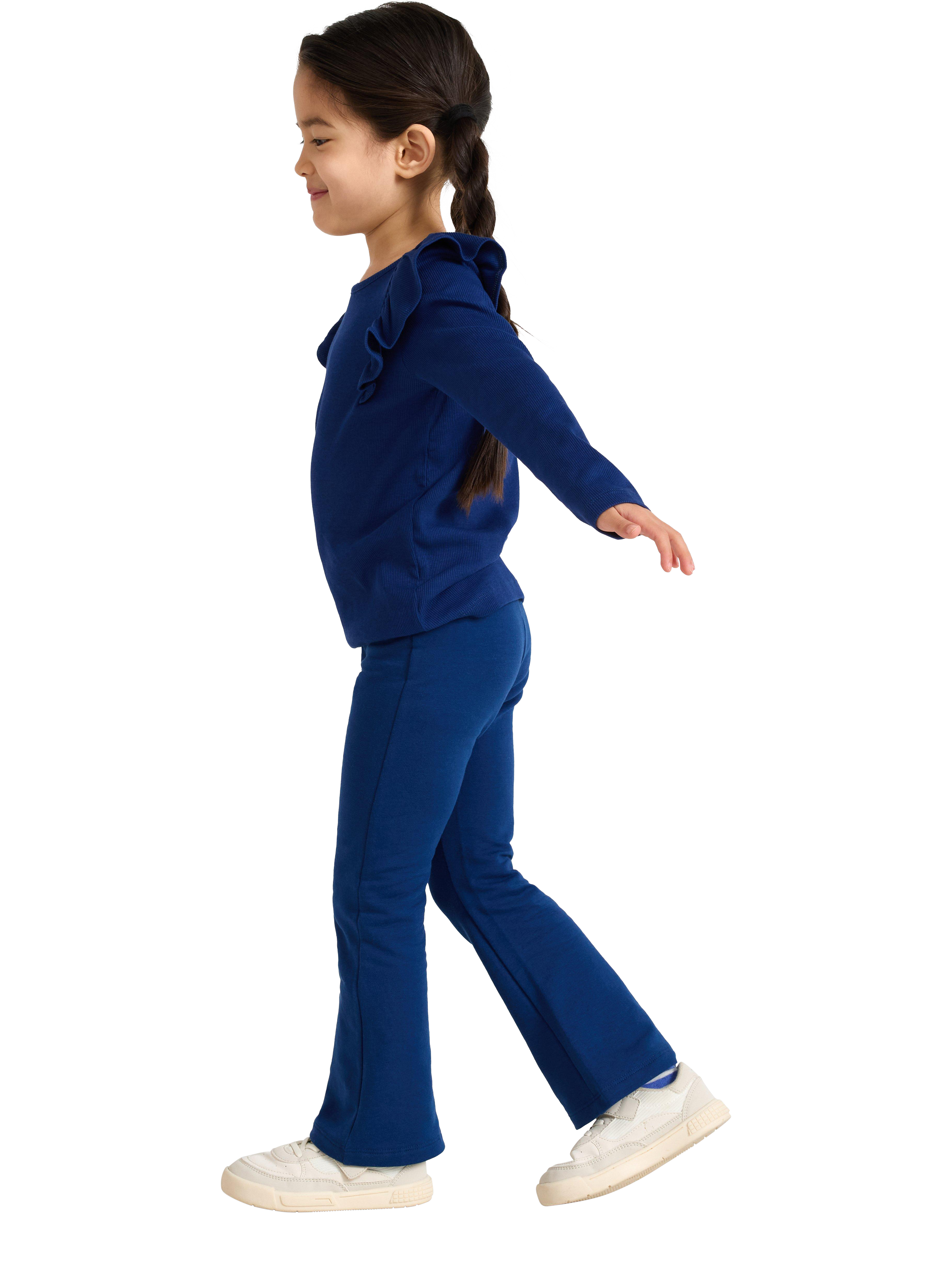 Brushed-soft interior and stretchy flare for all-day comfort, a playful silhouette that moves with her from playdates to special moments.