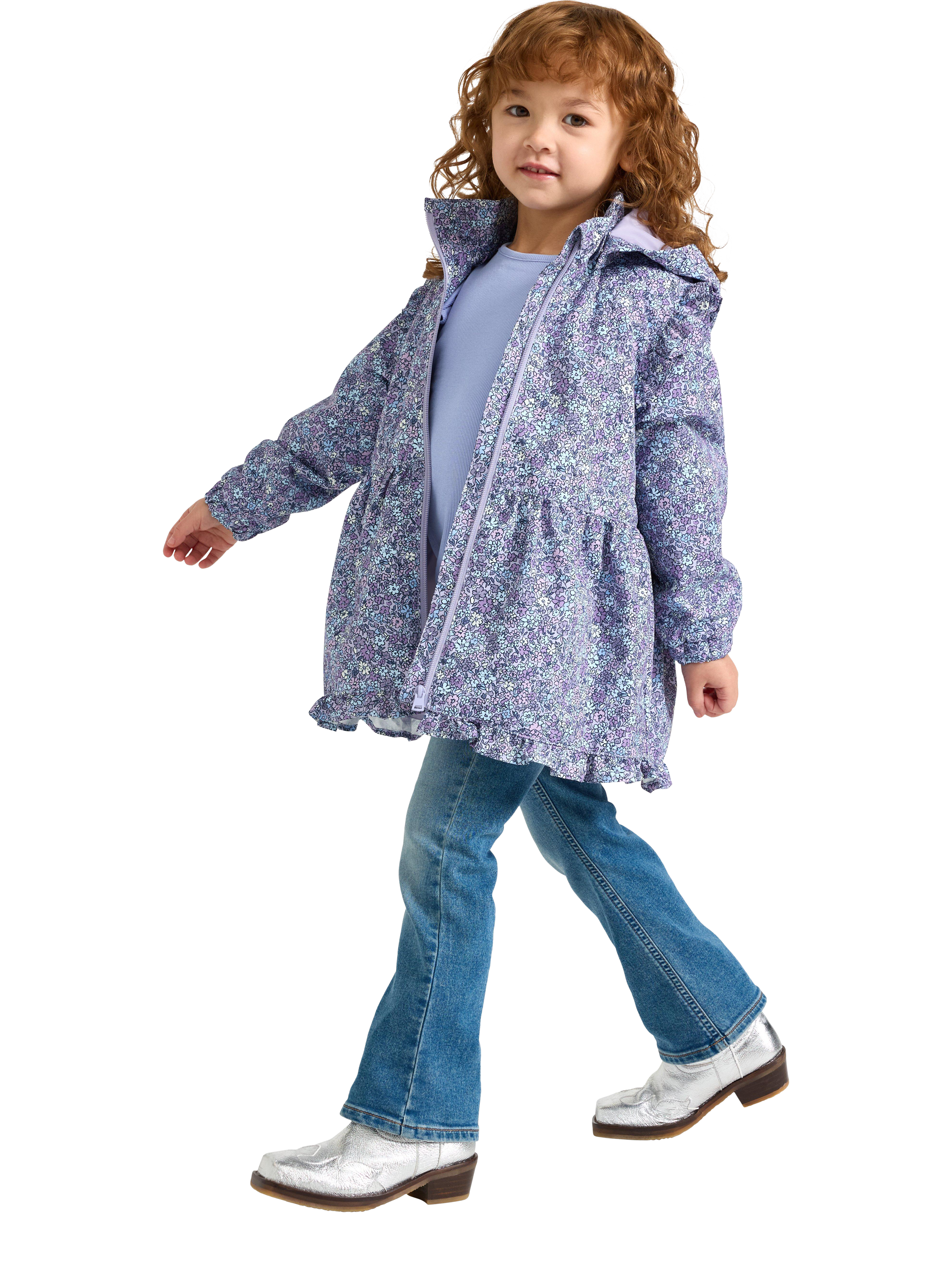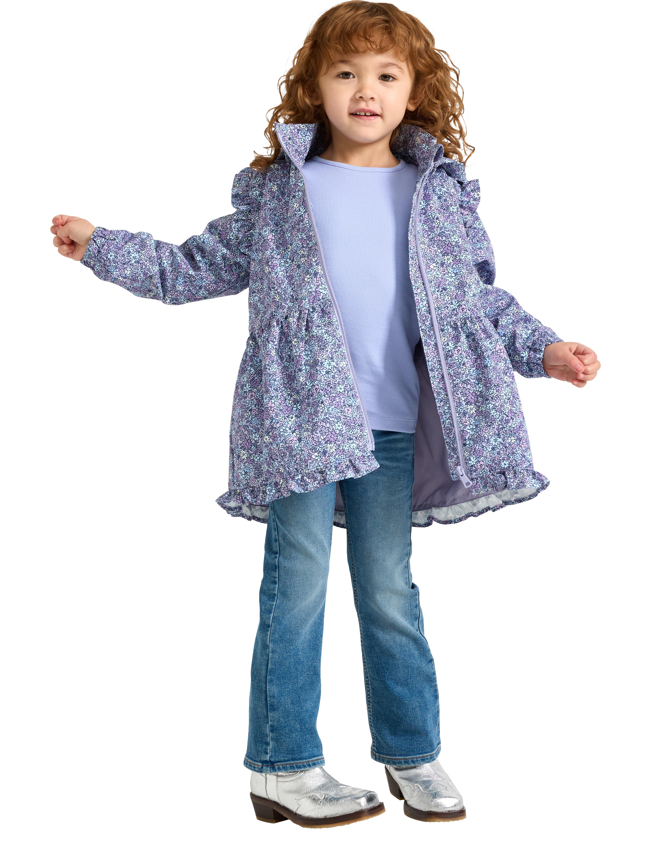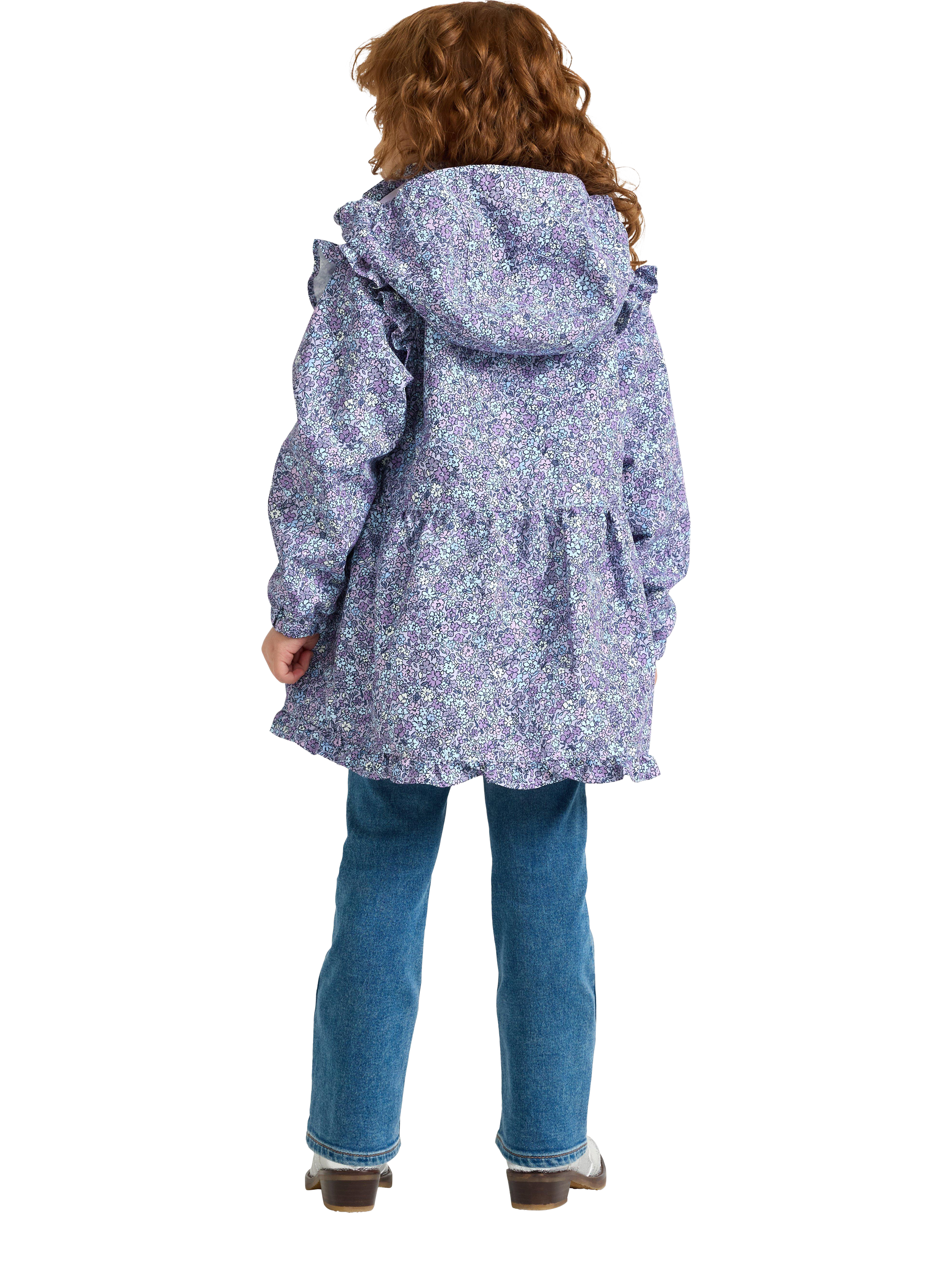 Rain never slows them down in this floral raincoat with a ruffle hem. Designed for comfort on casual days, it keeps anyone dry while adding a splash of fun to any outing.