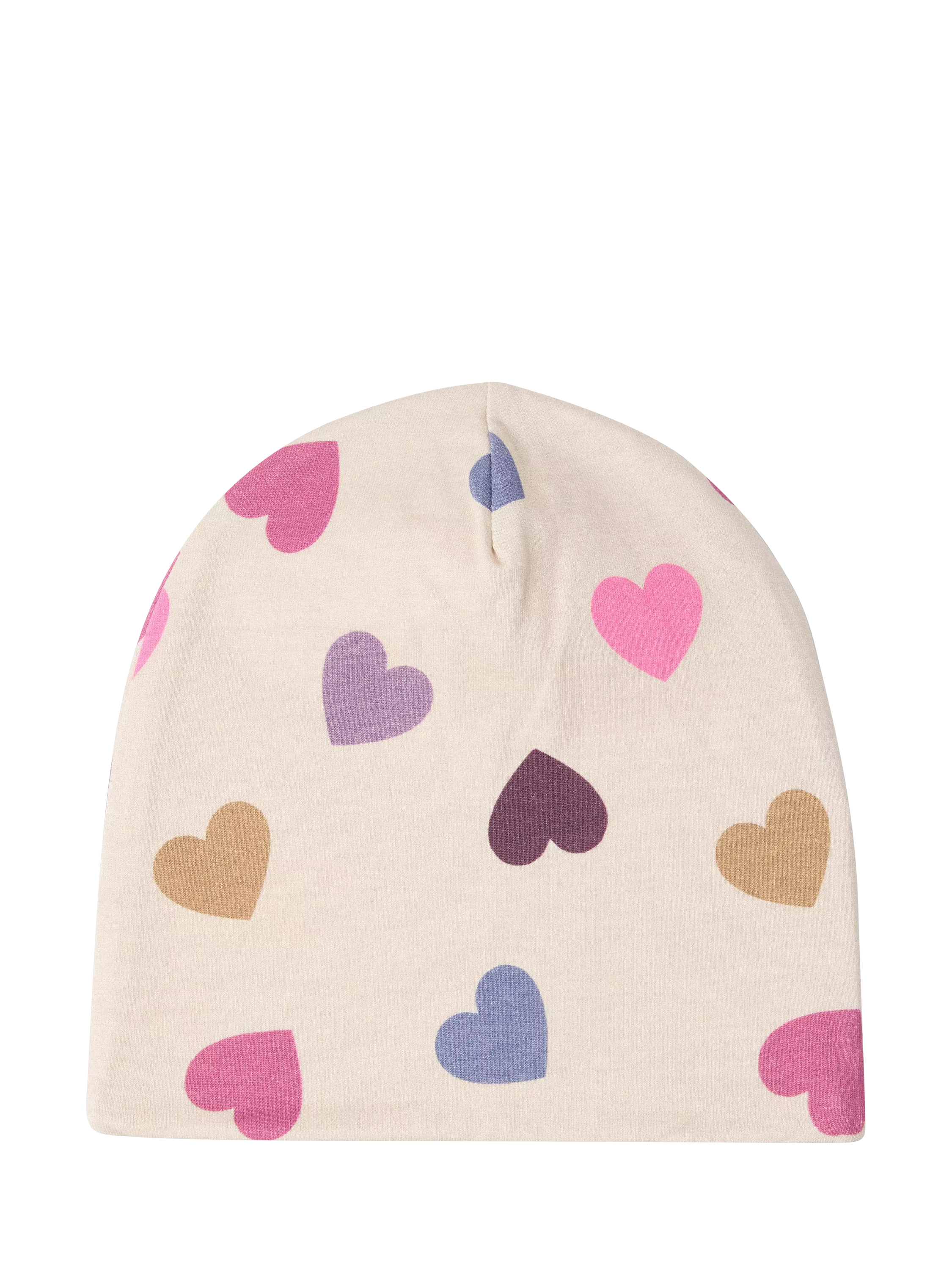 A warm and comfy jersey beanie hat with a soft fleece lining and colourful graphic design.