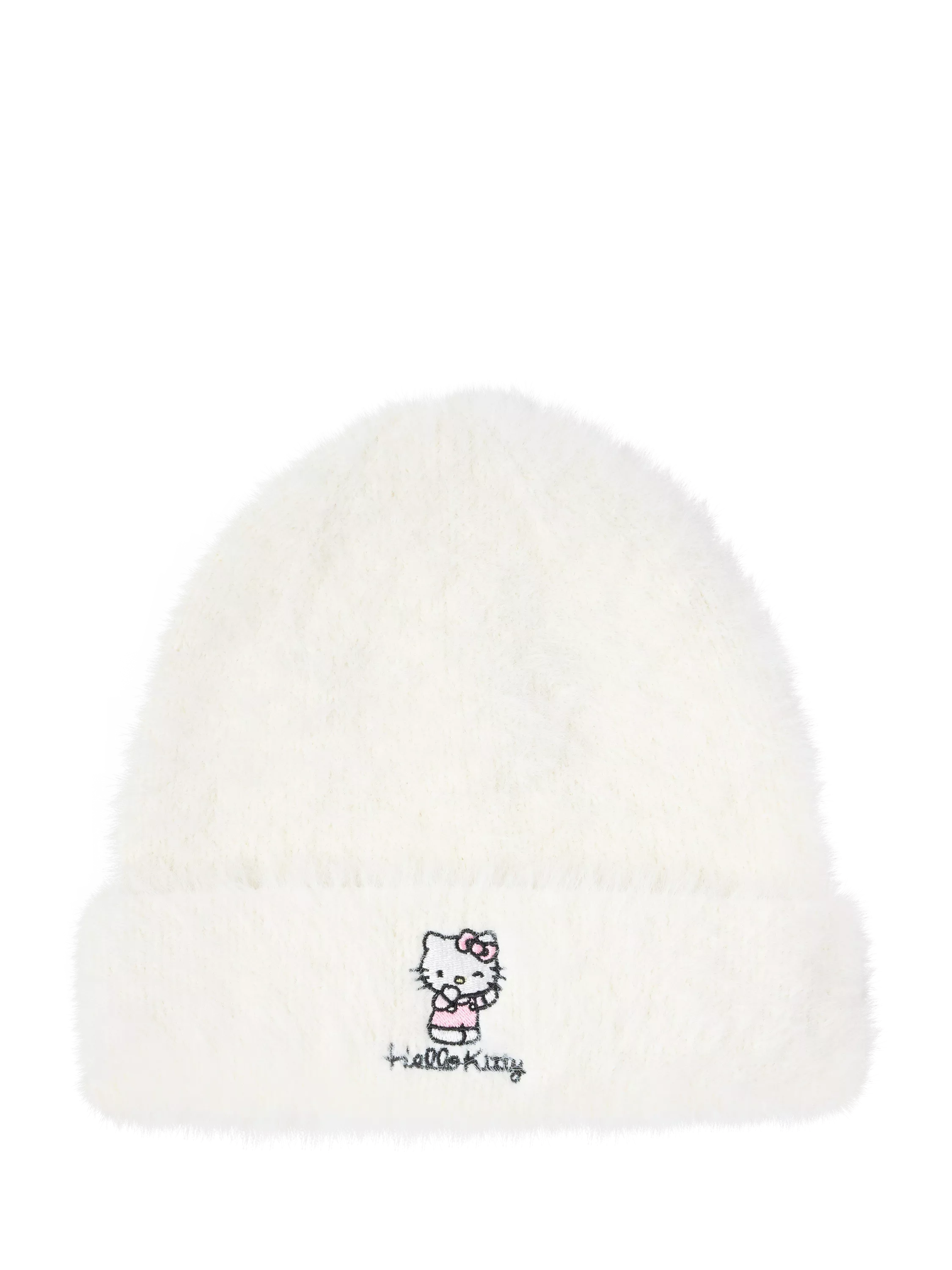 Soft and cosy beanie hat with Hello Kitty embroidery at the front.