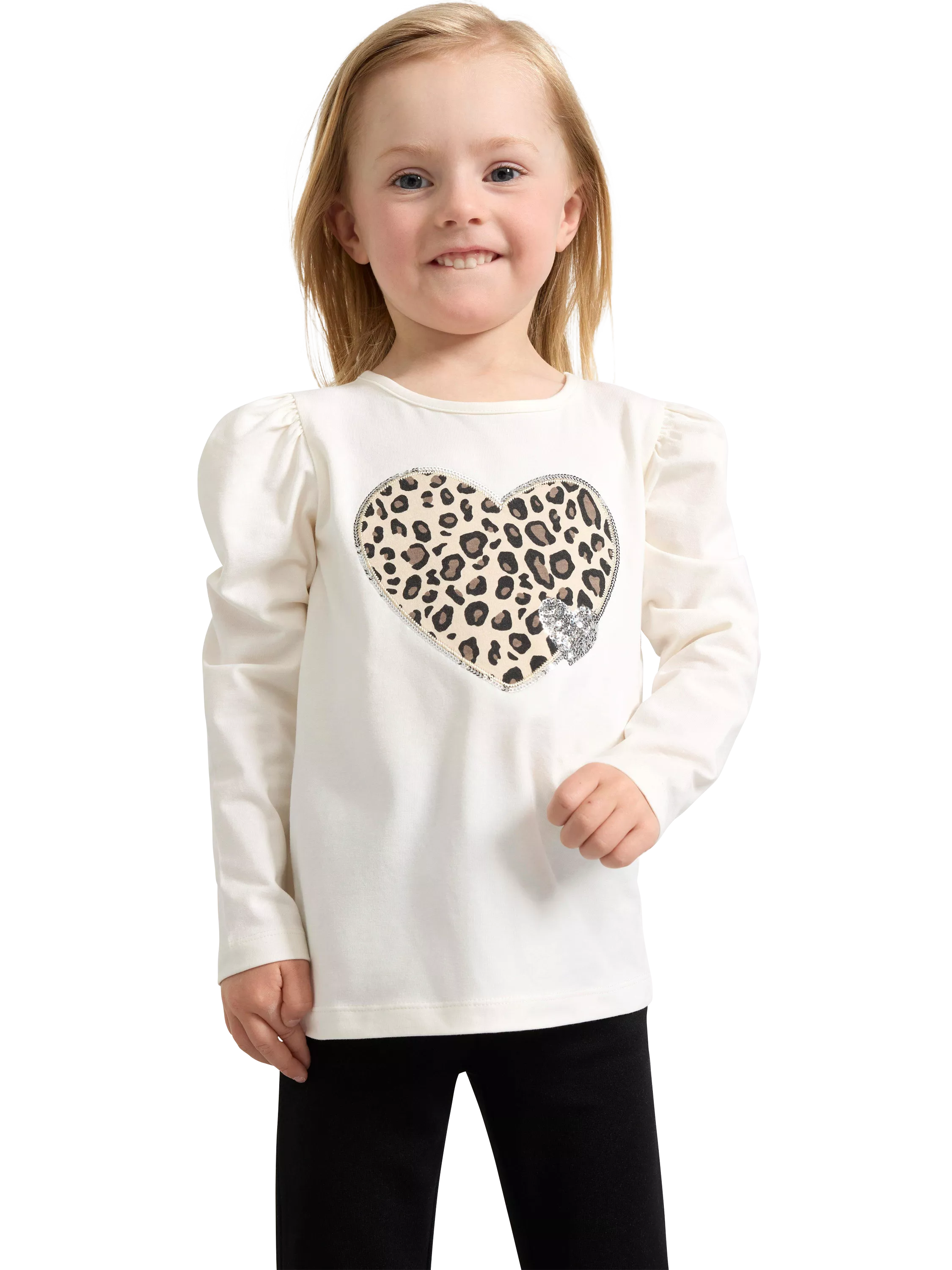 LindexKids' Leopard Print Heart Applique Top, Dusty White