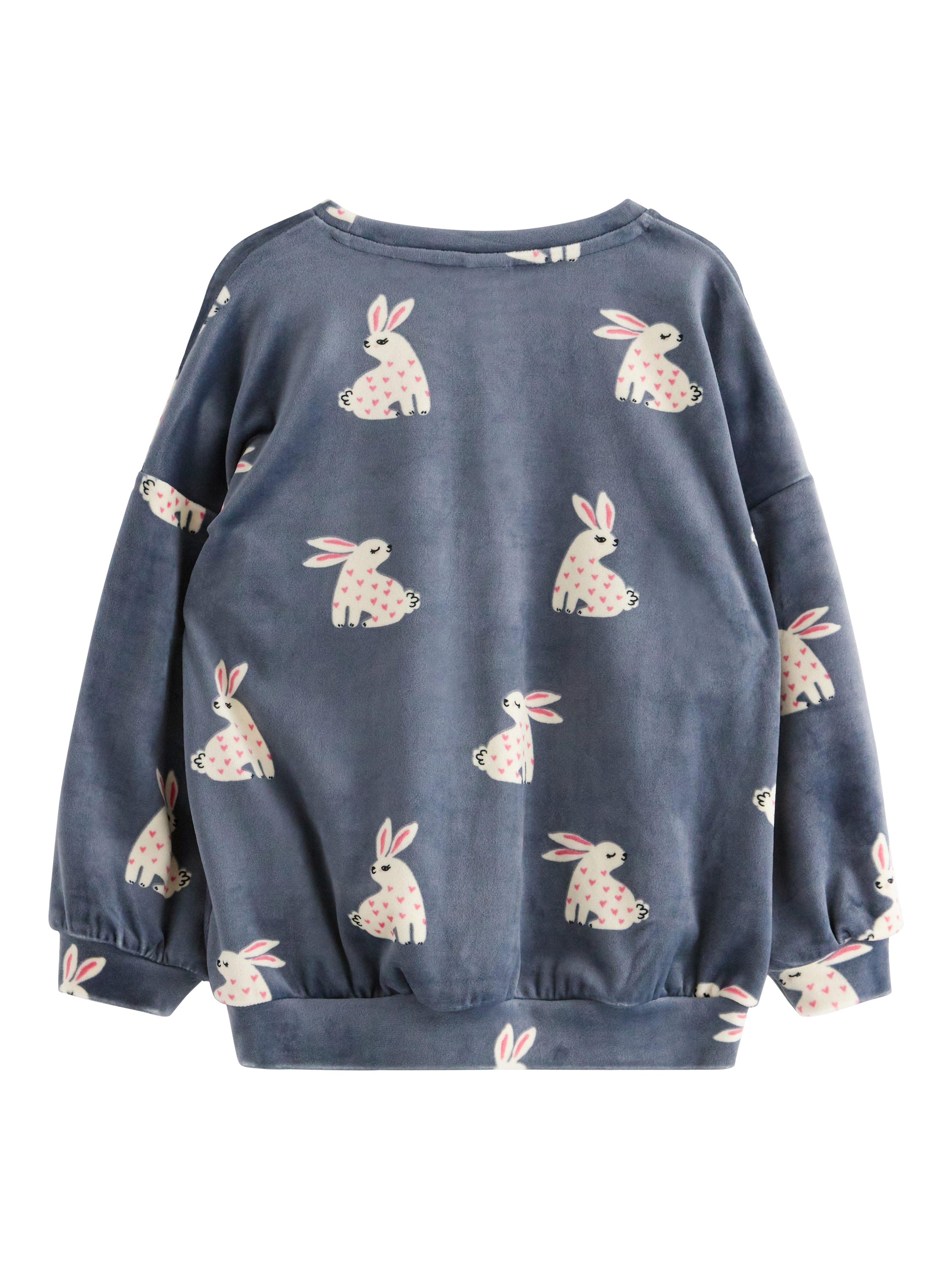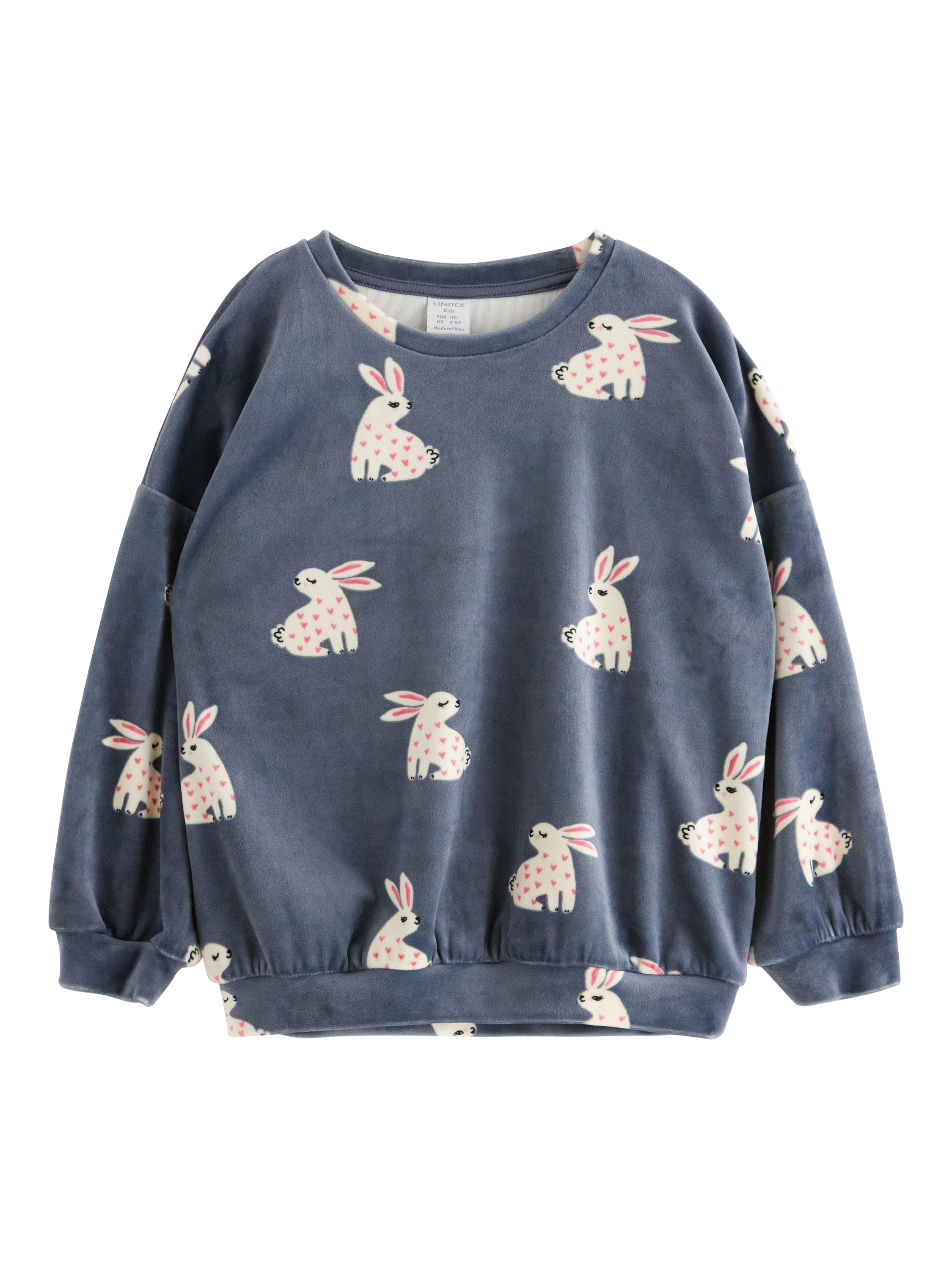 A soft and cosy velour sweater with all over rabbit pattern.