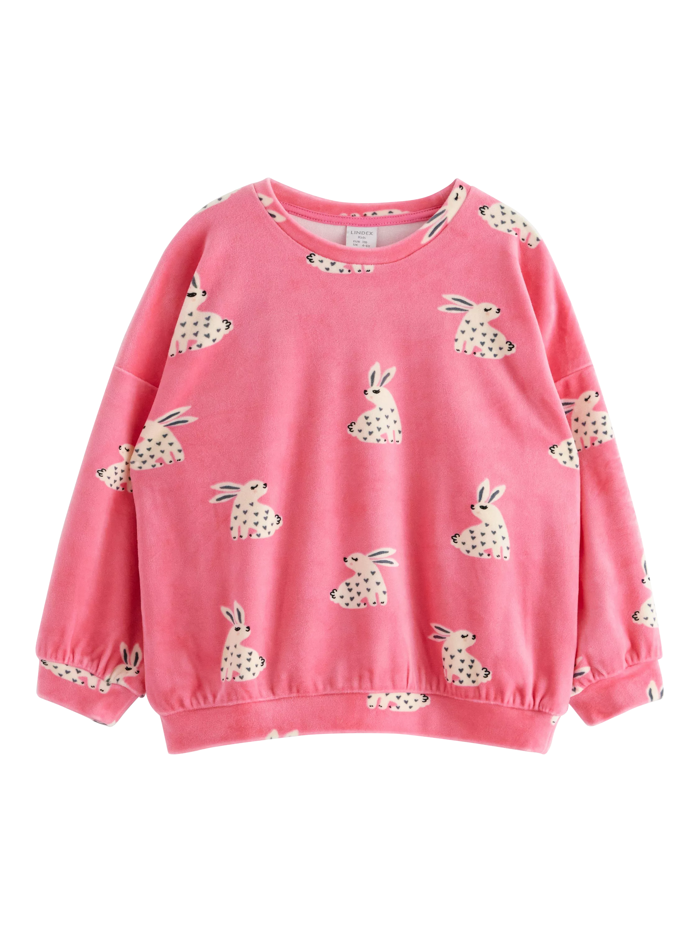 A soft and cosy velour sweater with all over rabbit pattern.