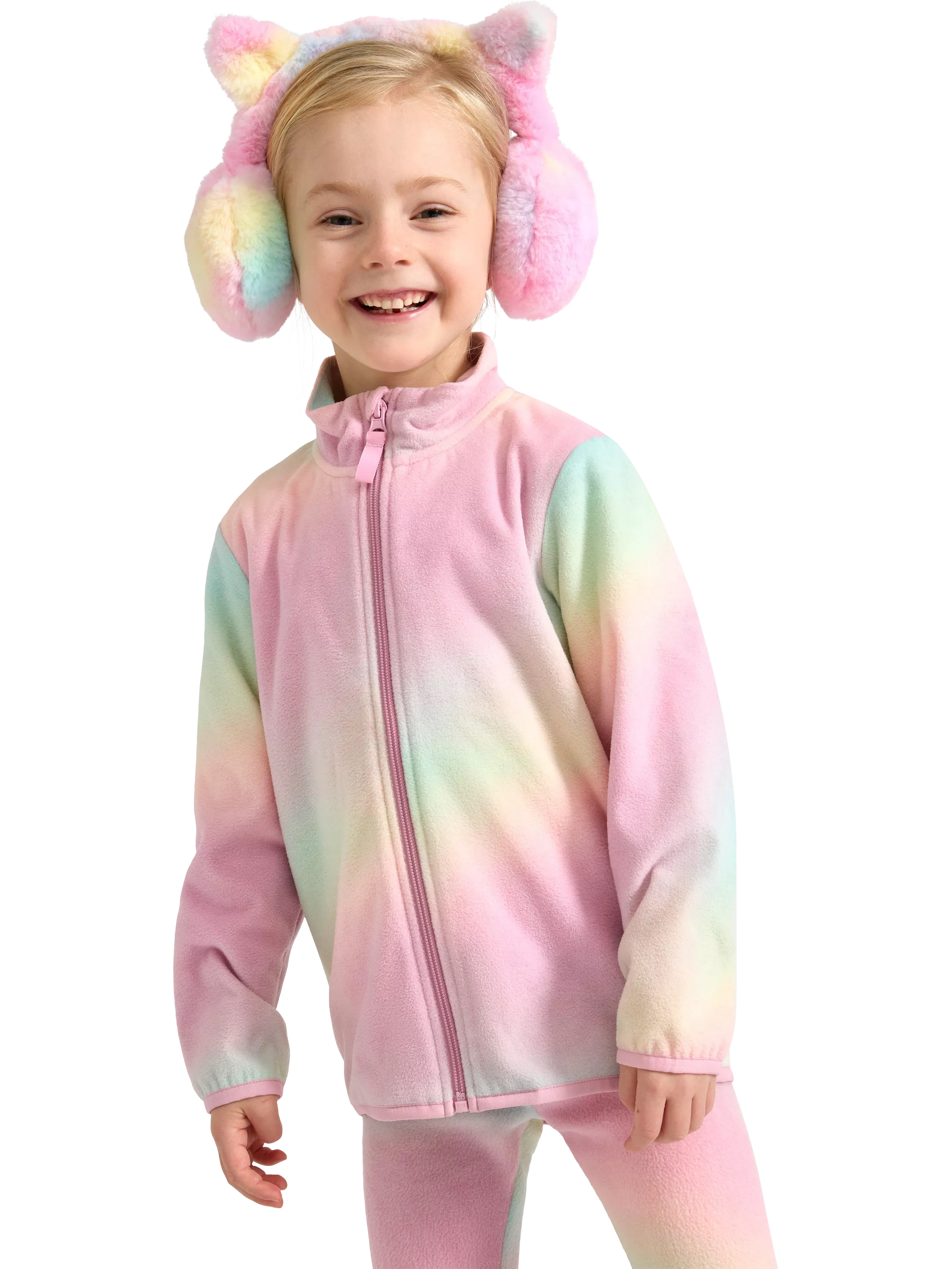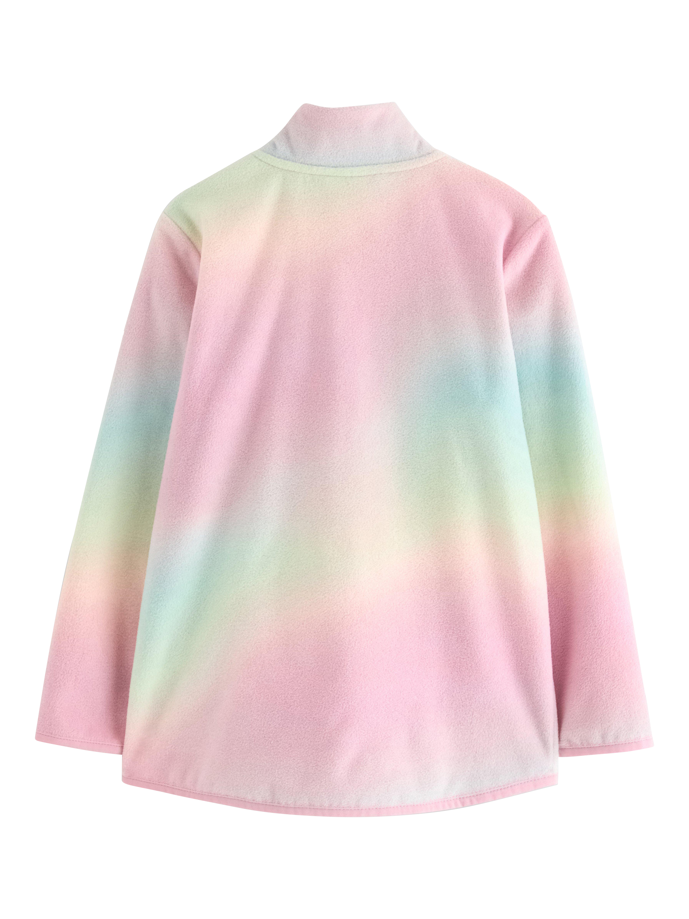 Dreamy plush zip-front jacket offering cloudlike warmth, a cosy high neck, gentle stretch and a playful silhouette for everyday adventures and crisp mornings.