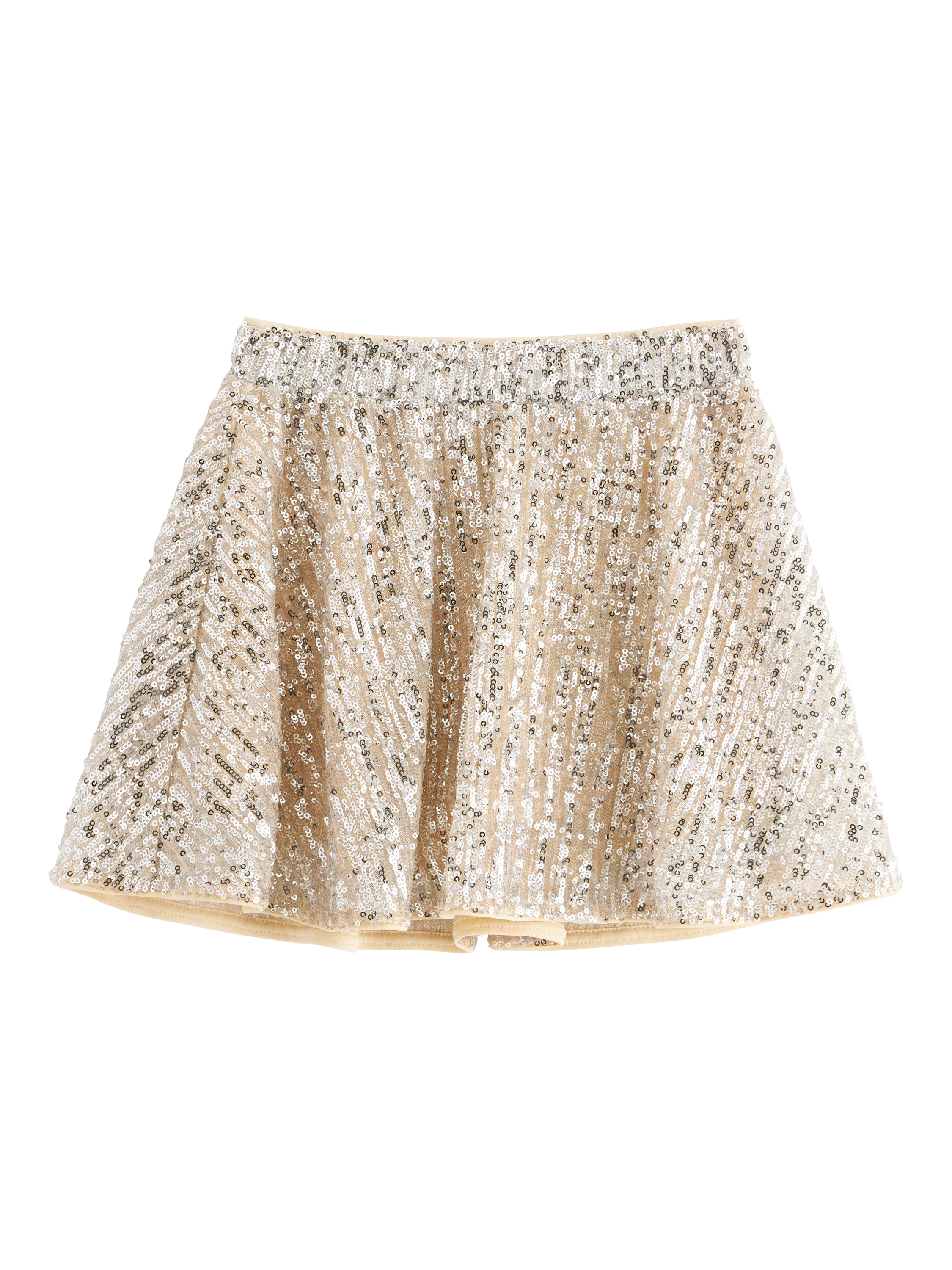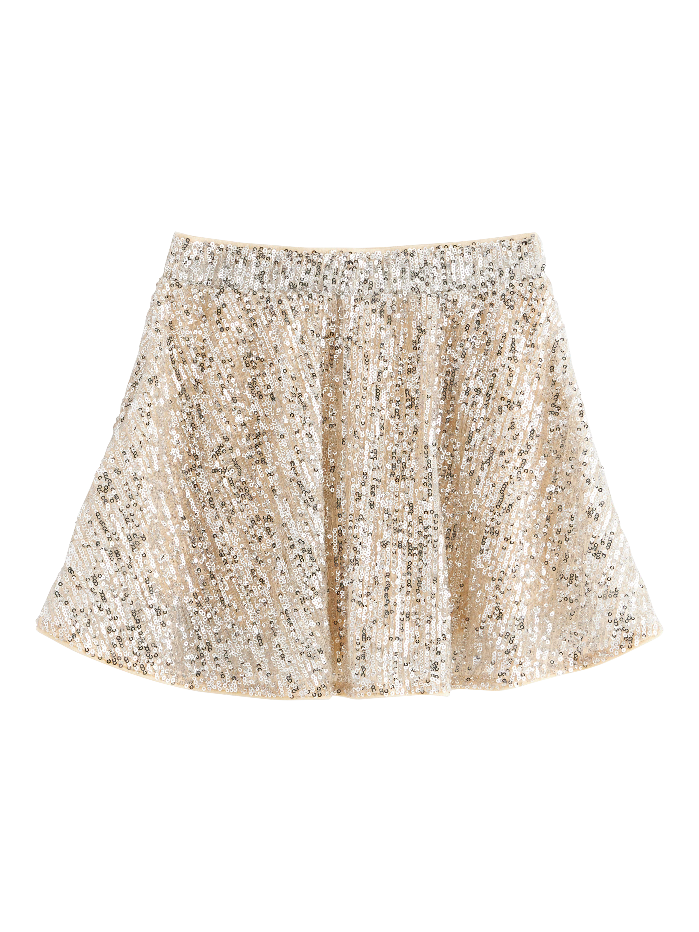 Add a touch of sparkle to any occasion with this dazzling skater skirt. It features a swirly flared cut and an easy-to-wear elasticated waist.