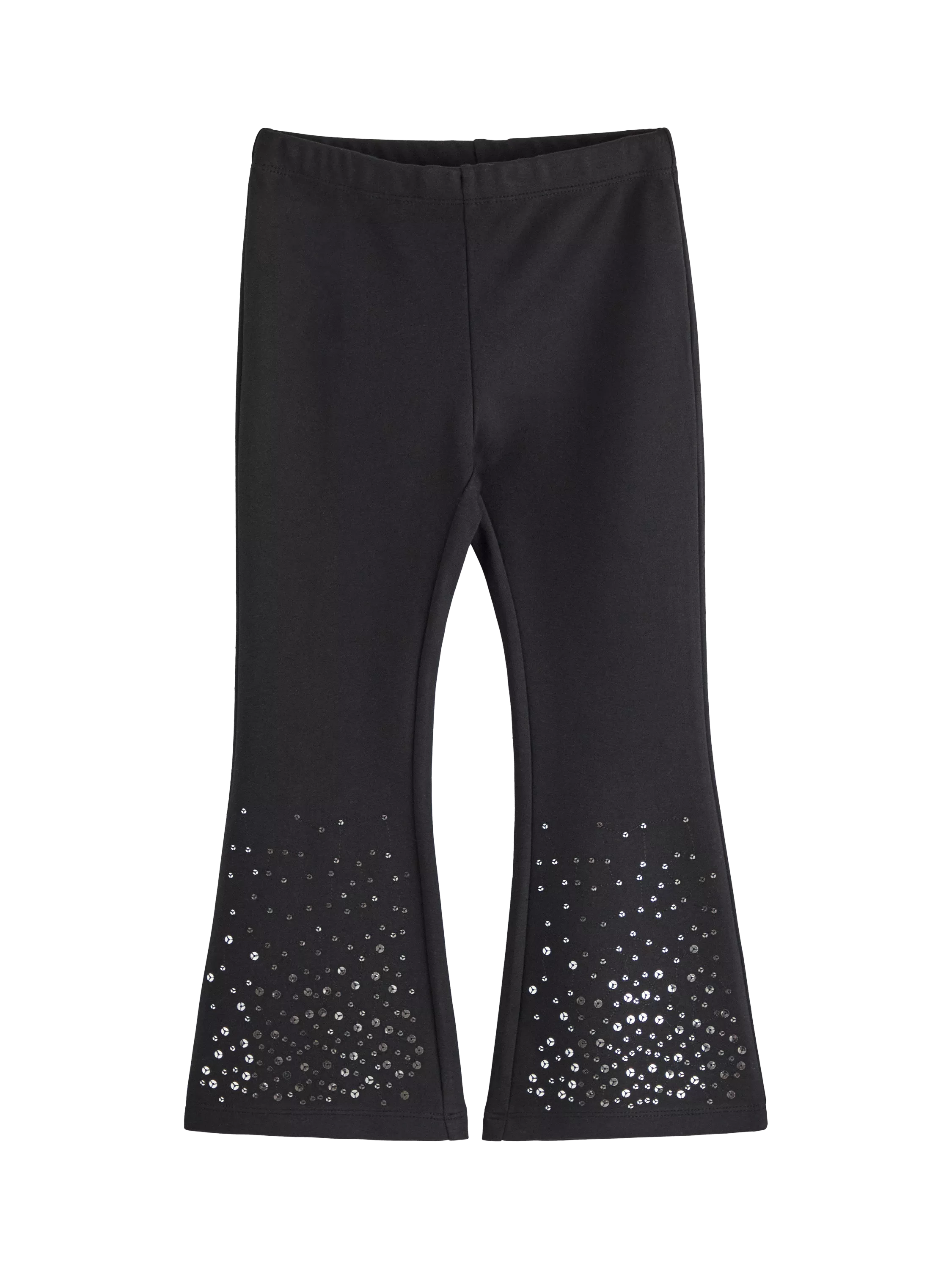 Comfort meets creativity in these glamorous sequin-trimmed flared trousers, perfectly blending comfort and chic elegance for any occasion.