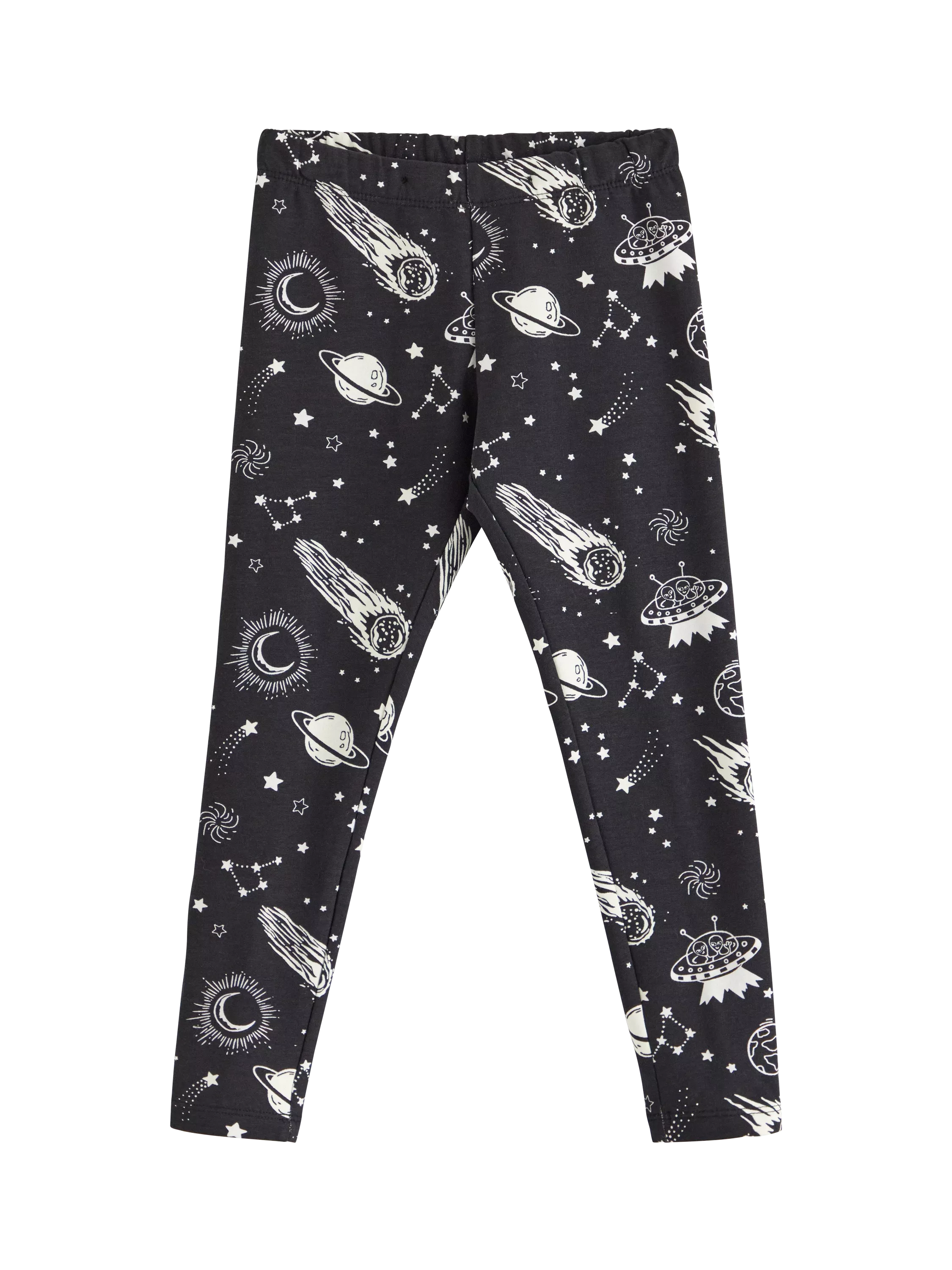 Soft cotton blend leggings with a glow in the dark print, elasticated waist and cosy brushed inside.