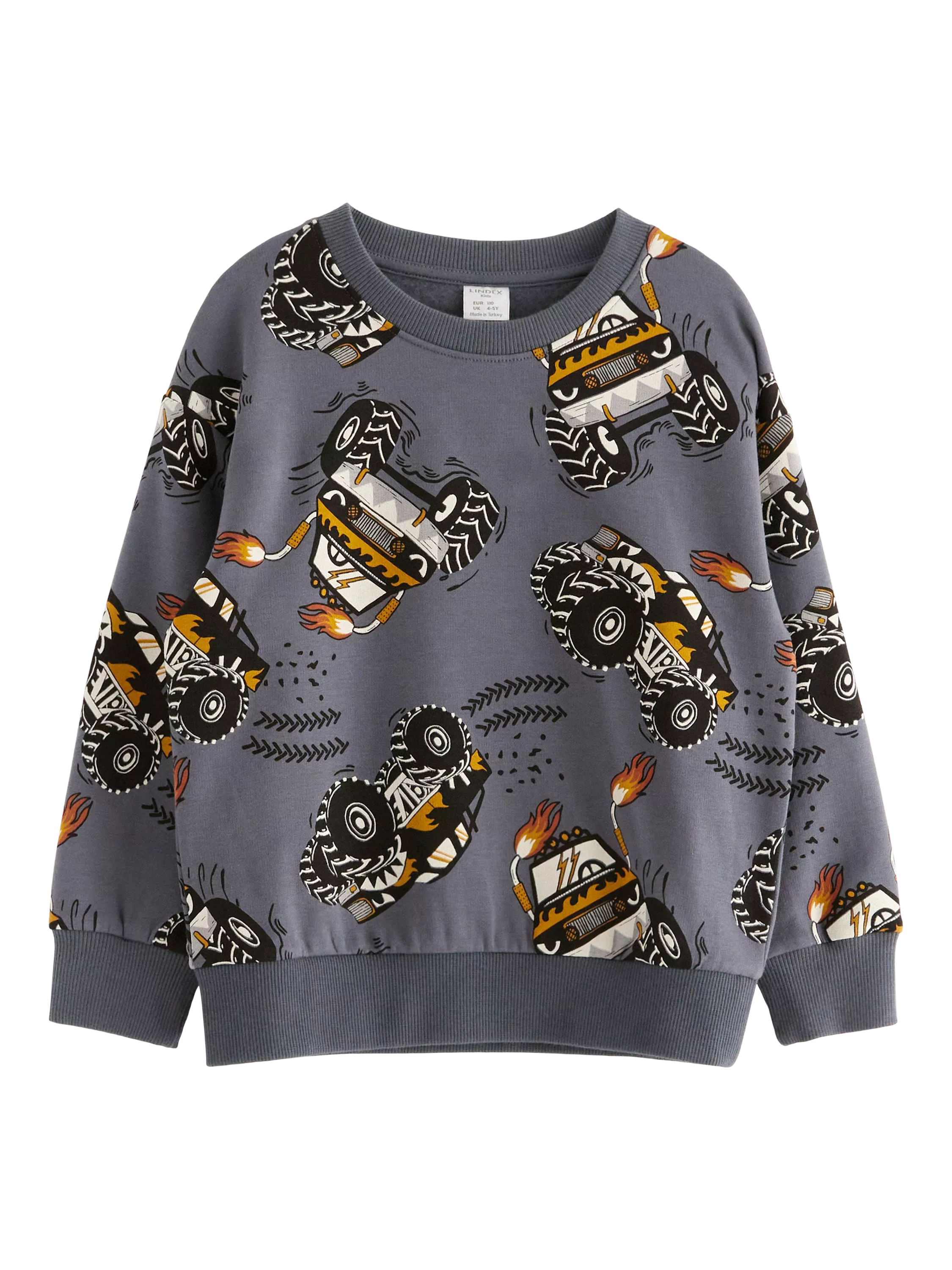 A truck print sweatshirt from Lindex is cut from a cotton blend with a soft brushed inner for comfortable wear all day long.