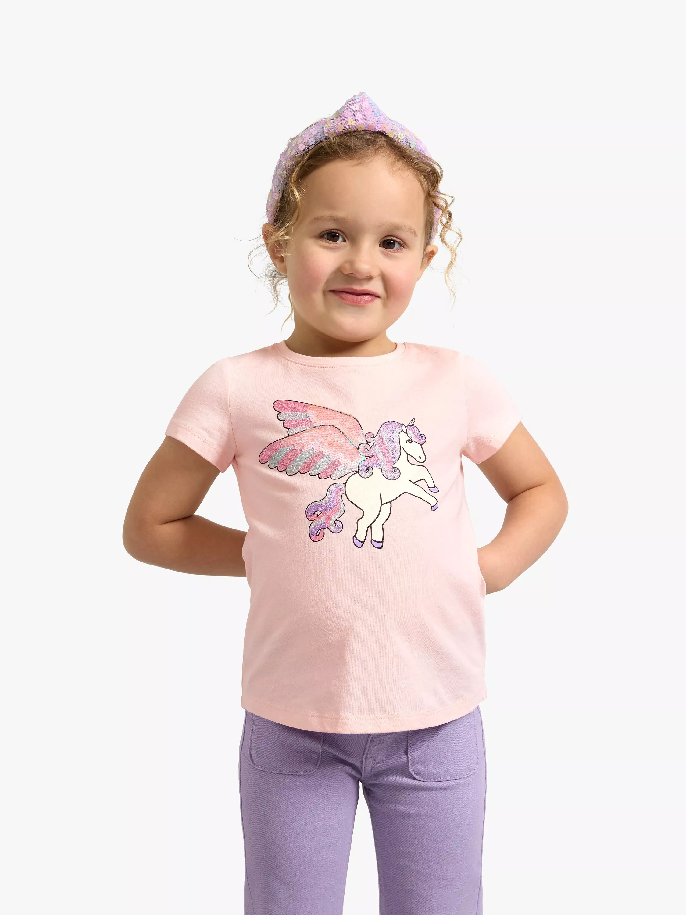 With a shimmering unicorn design, this short sleeve t-shirt from Lindex is made from pure cotton for soft and comfortable wear and pairs with jeans and skirts alike for playdates and trips to the park.