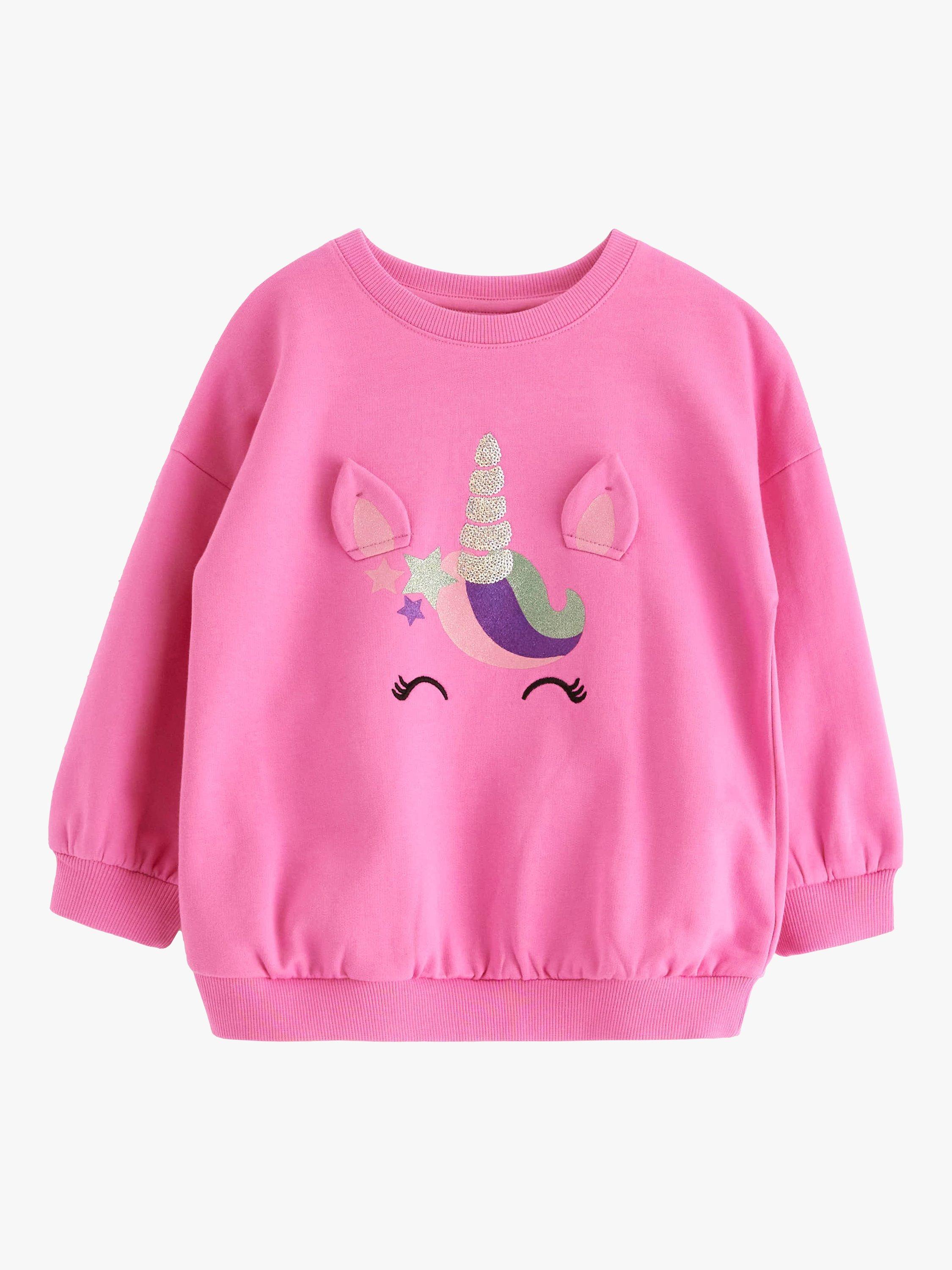 Unicorn design sweatshirt in soft cotton with a round neckline. The sweatshirt has long sleeves, ribbed cuffs and ribbed hem.
