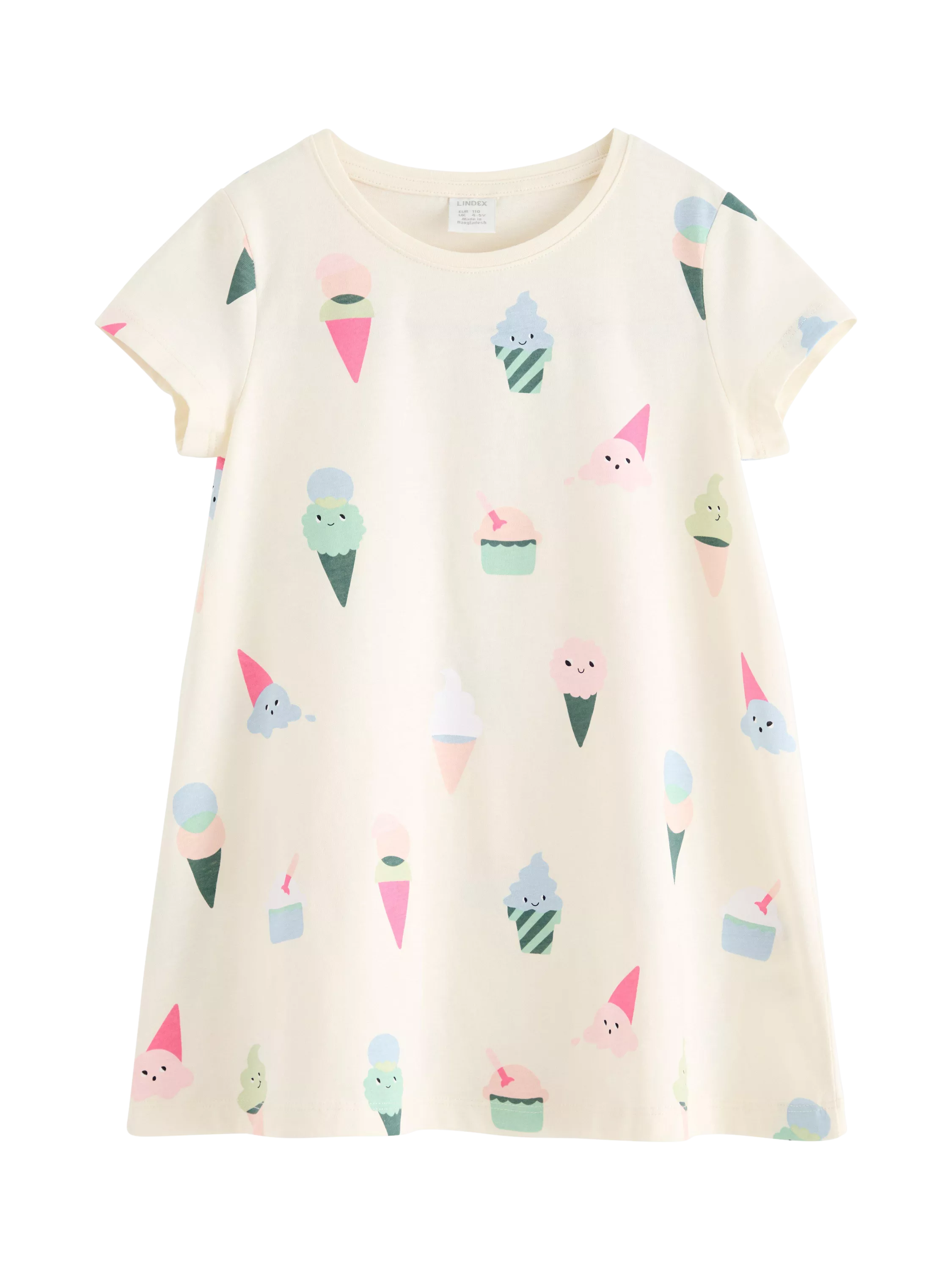This vibrant and playful short-sleeved tunic features a delightful ice cream print, perfect for a fresh and fun look this summer.