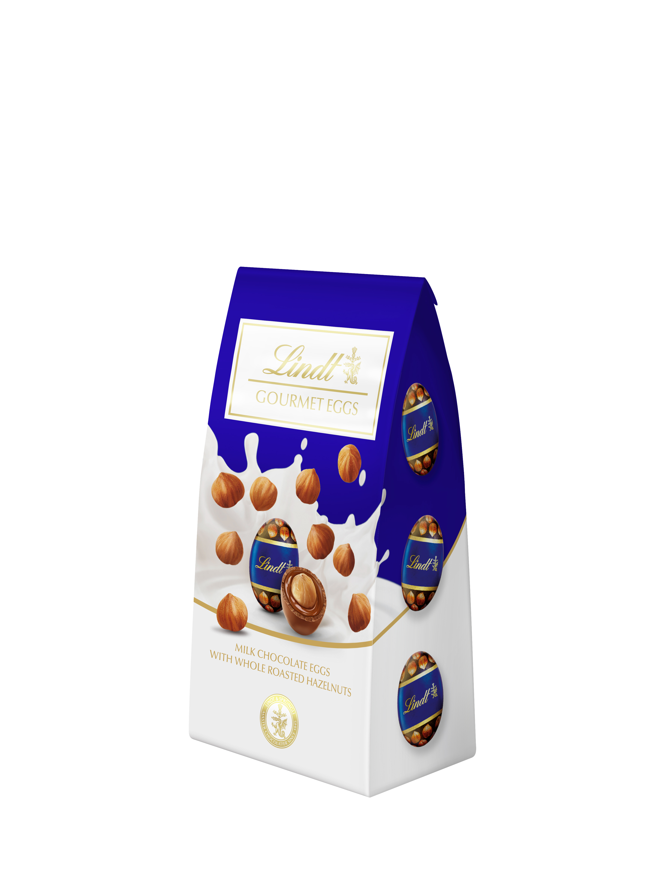 Lindt Hazelnut Milk Chocolate Mini Eggs are made up of a smooth Lindt milk chocolate shell with whole hazelnuts and a smooth praline chocolate filling.