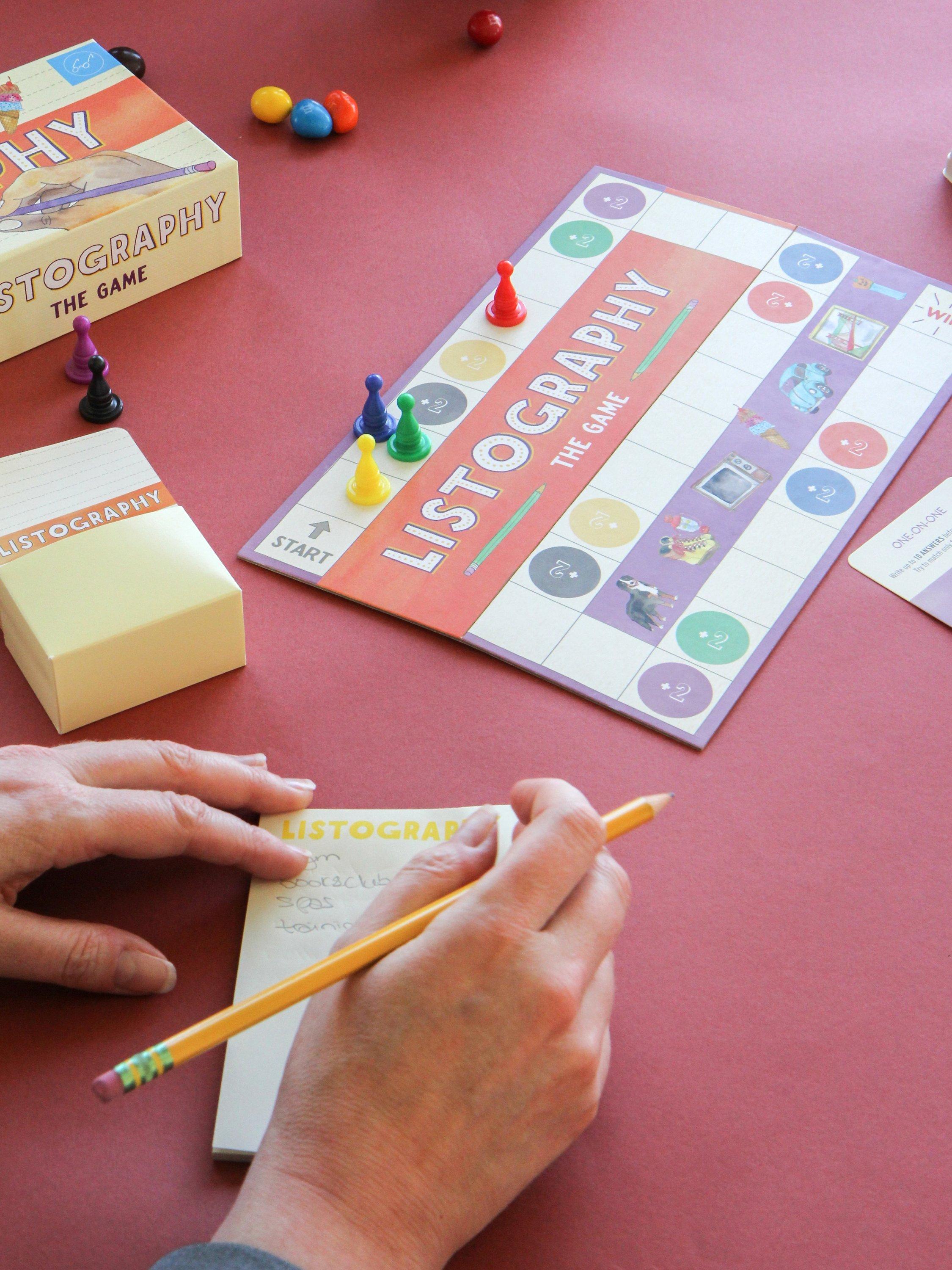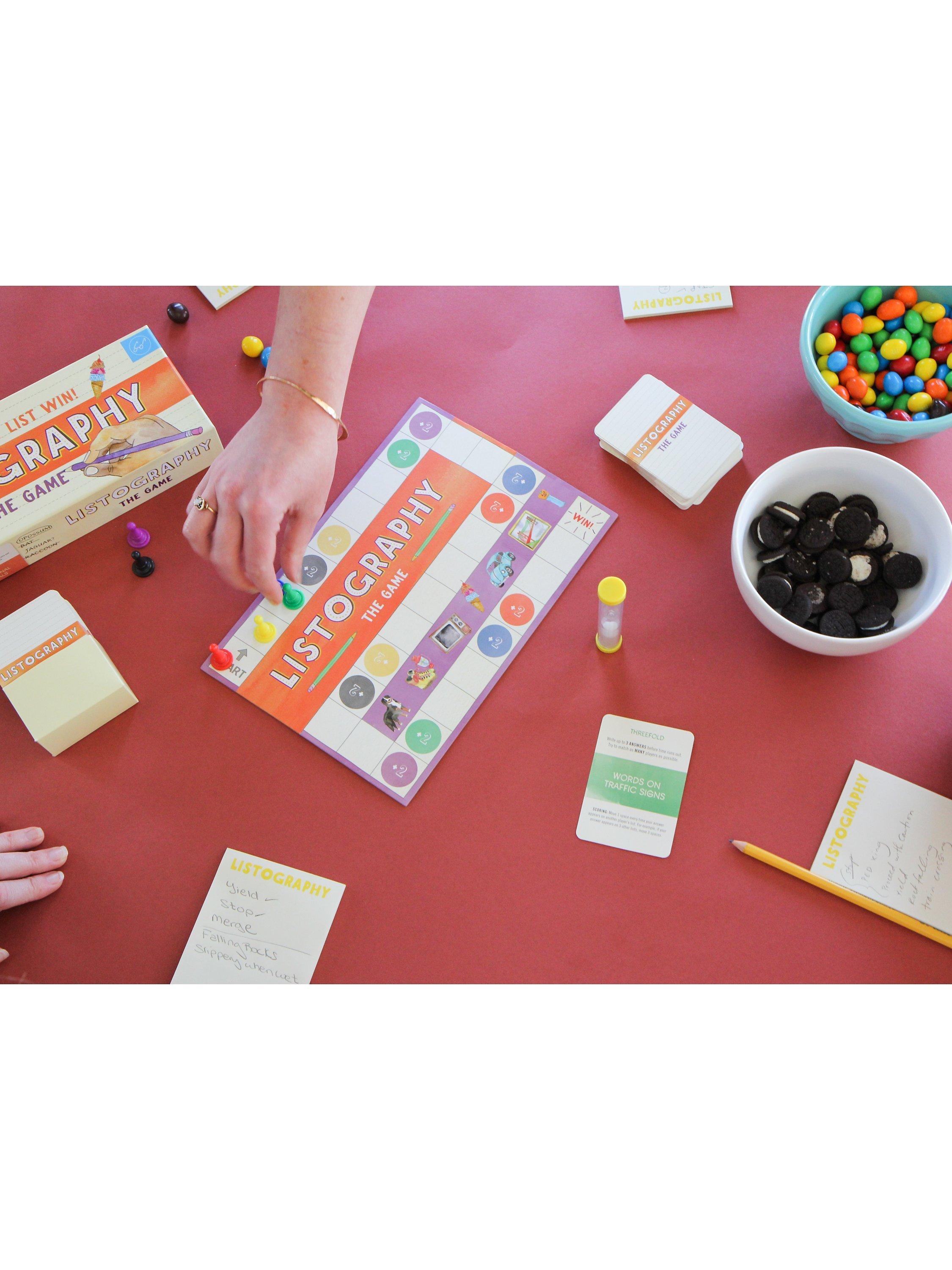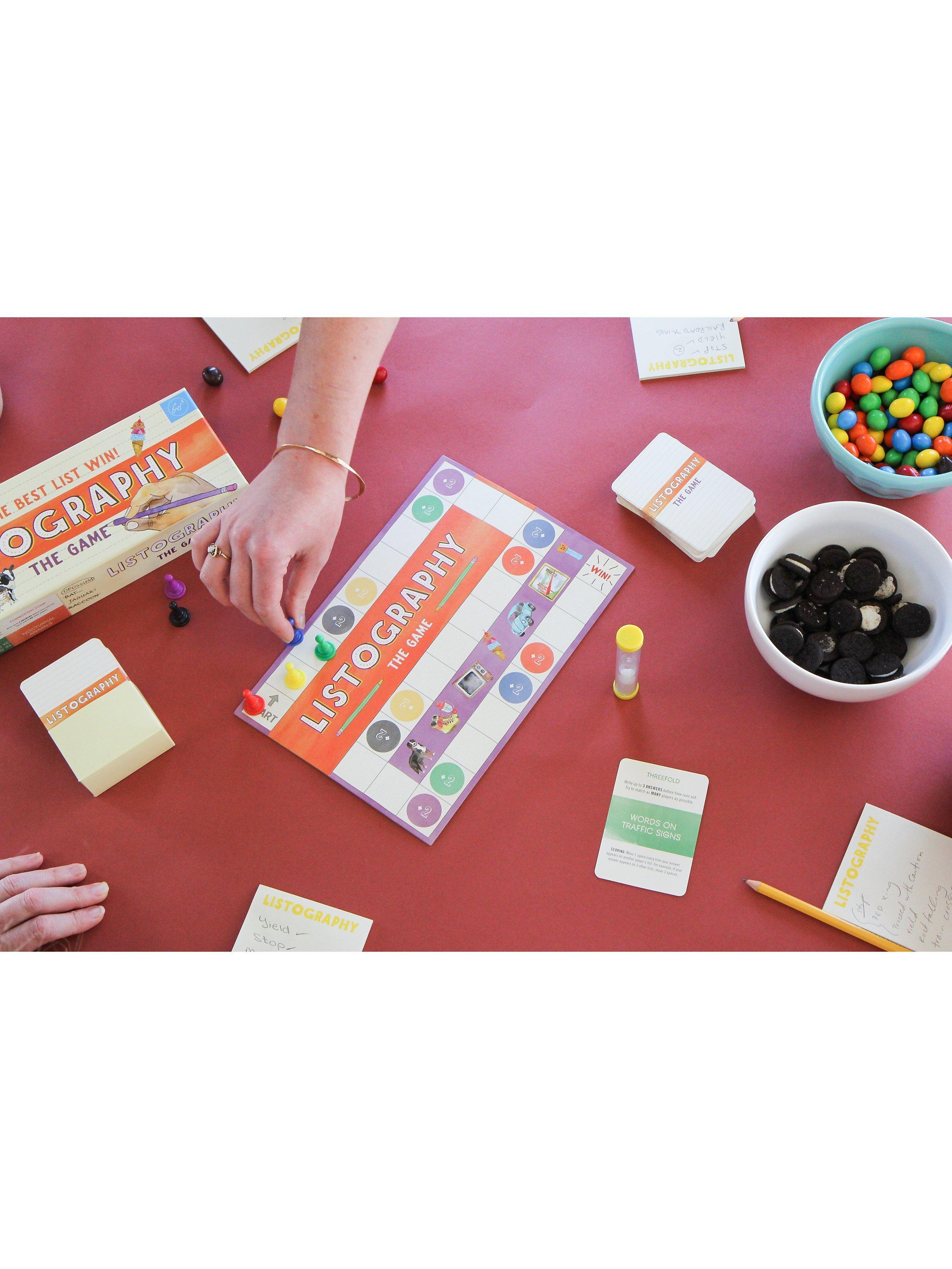 A new twist on the bestselling Listography journal series, this game invites players to create and share lists based on fun and thought-provoking topics. From geography and pop culture to toothpaste and constellations! With the goal of being the first around the game board, players score points according to the number of similar or unique answers. Every round in the game results in creative thinking, surprise outcomes, and lots of laughs!
