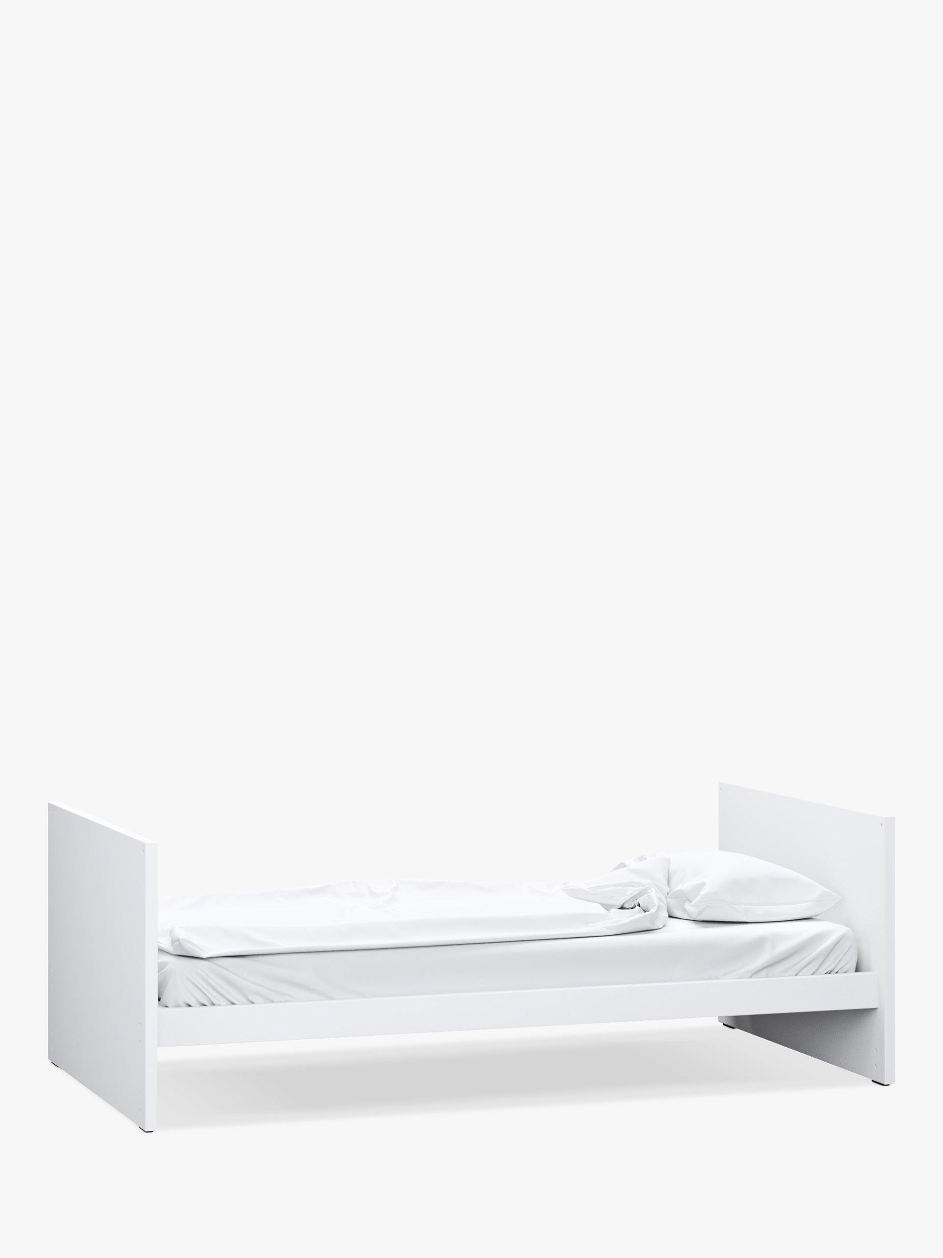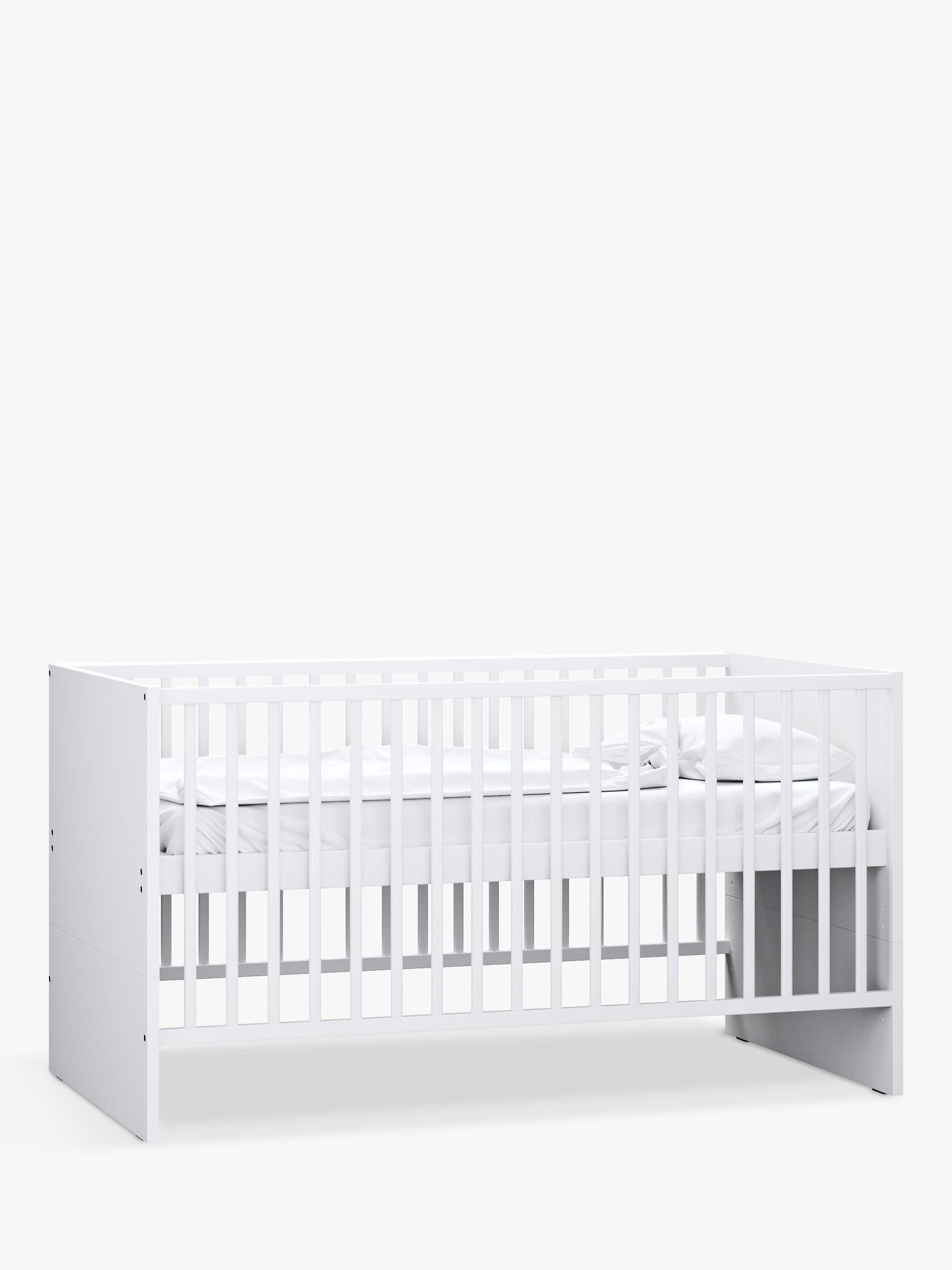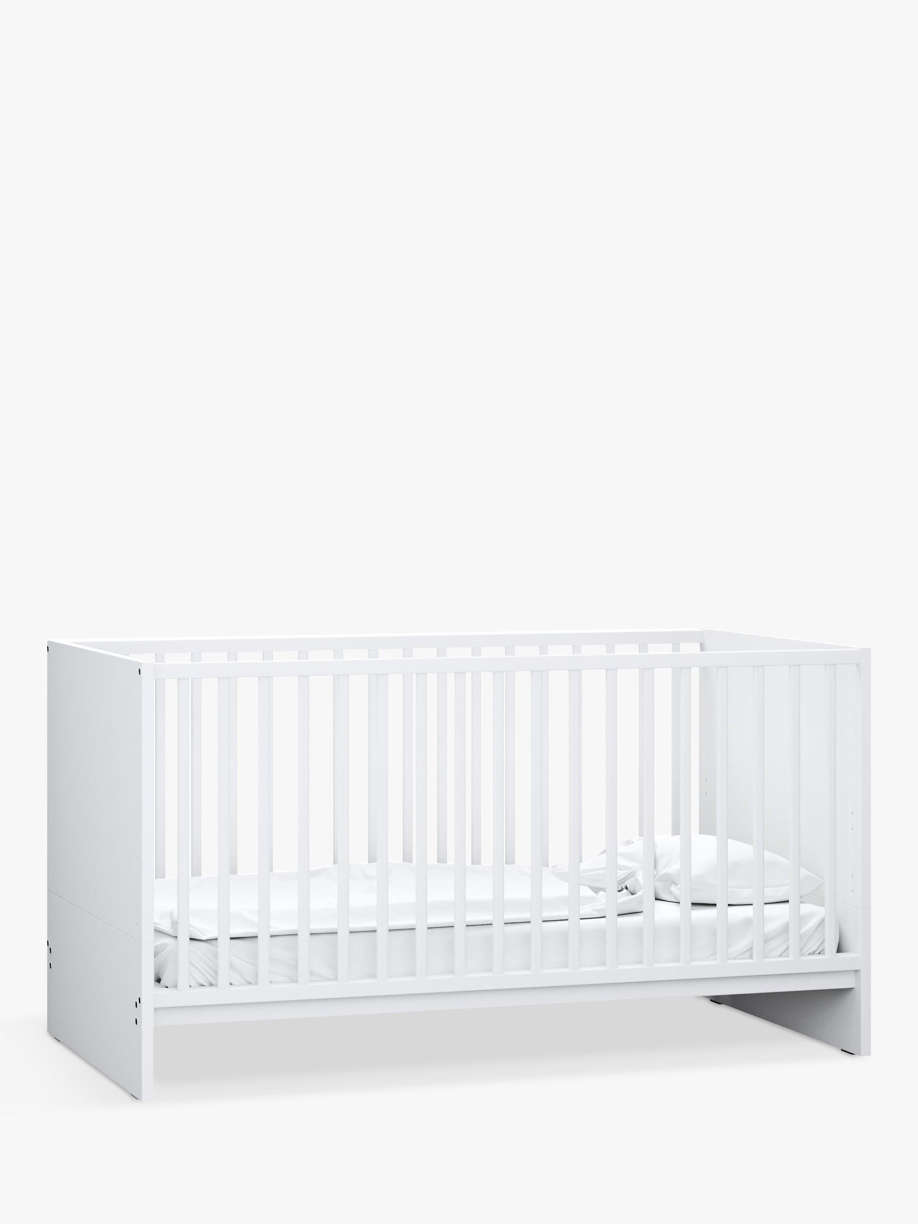 The modern design with a clean, white finish is sure to impress in any home and a 3-position base means you can vary the cot height as your little one grows. The cot bed is suitable for your child from birth to around 4 years. The cotbed can be adapted into a toddler bed by removing the side rails and splitting the head and footboard.