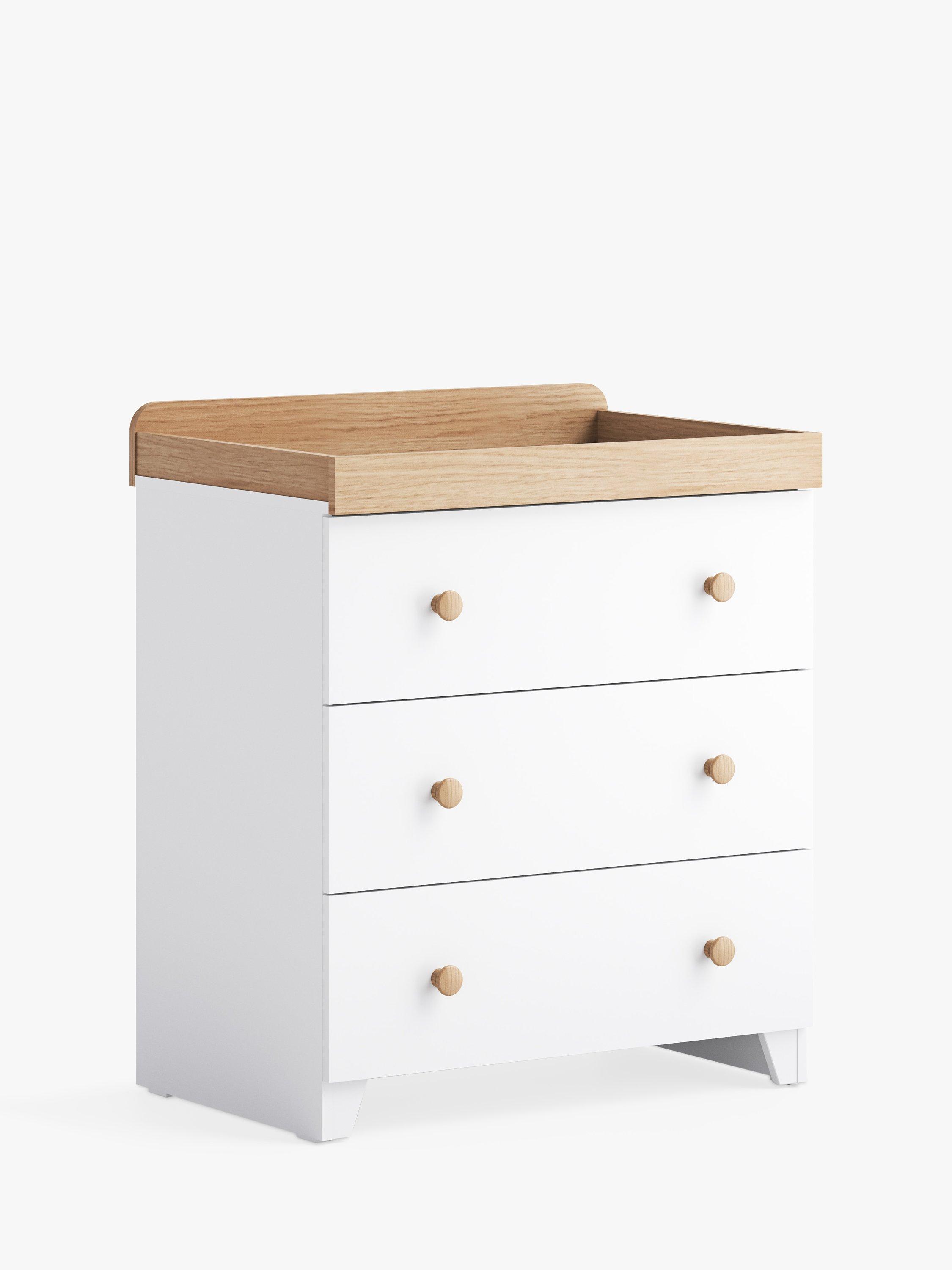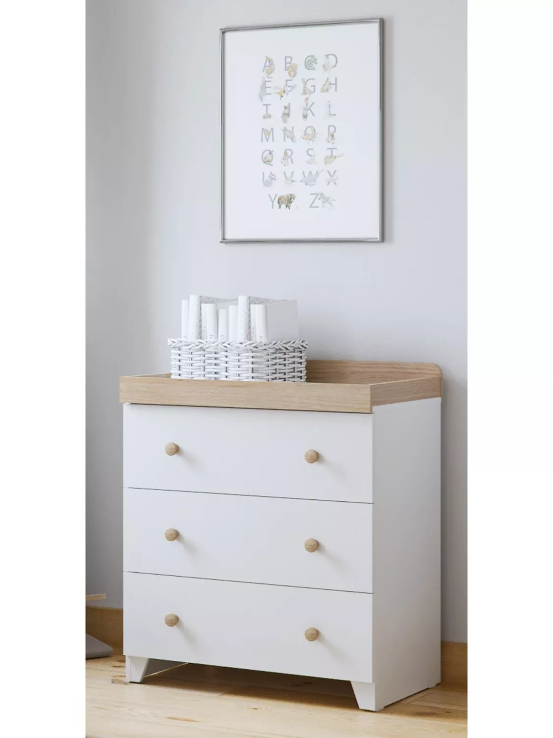 This Classic Two-Tone dresser from Little Acorns is a versatile essential for your baby's nursery. It features 3 deep, sturdy drawers that can be used to store all kinds of baby essentials. Designed to grow with your child, this unit comes with a changing area that can easily be removed. This transforms the changer into a classic chest of drawers that your youngster can use for many more years to come. In a sleek, contemporary design, this stylish piece of furniture will look great in any nursery.