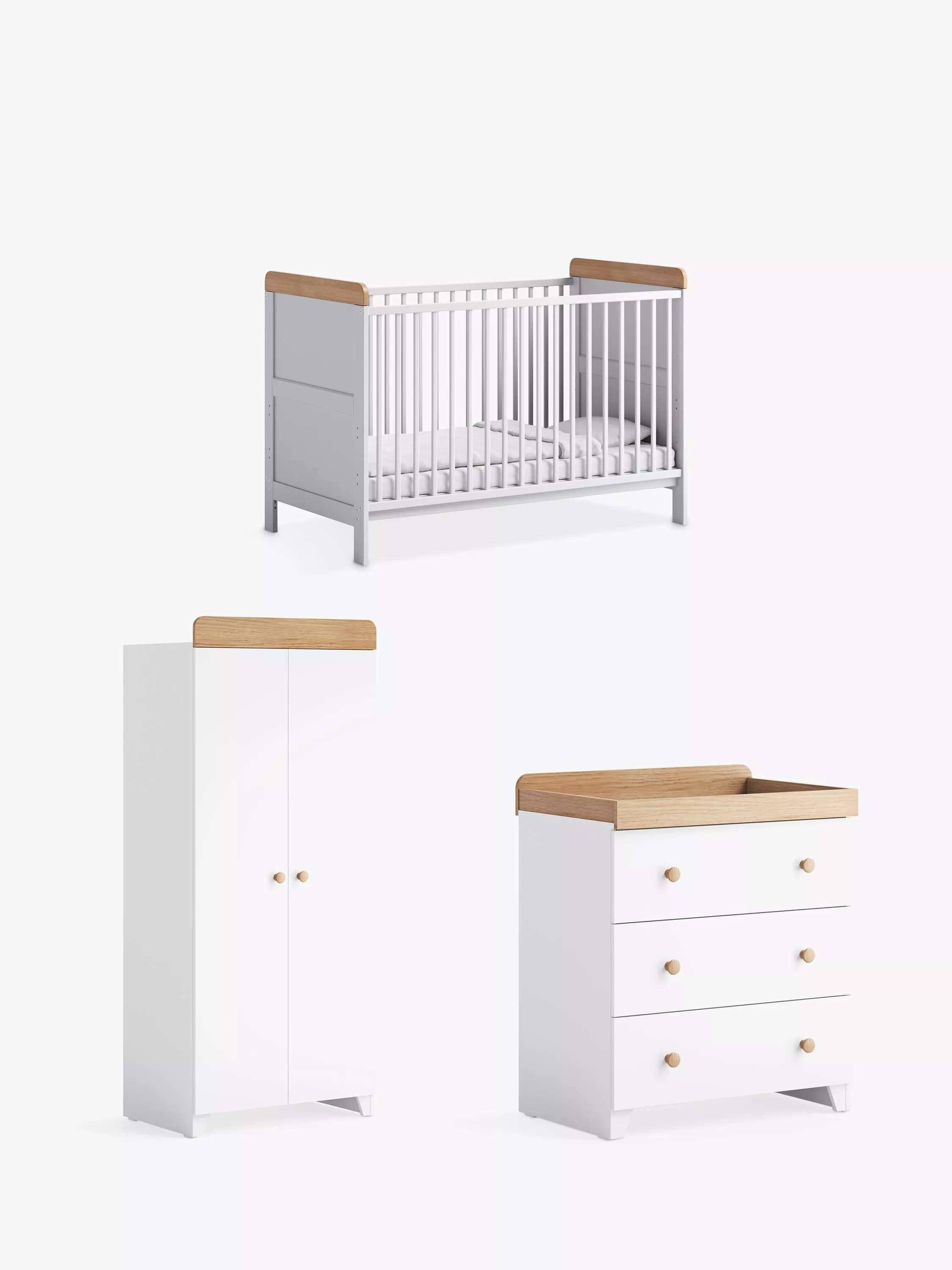 Little AcornsClassic Two-Tone Cotbed, Changing Table Dresser and Double Wardrobe Bundle, White/Oak