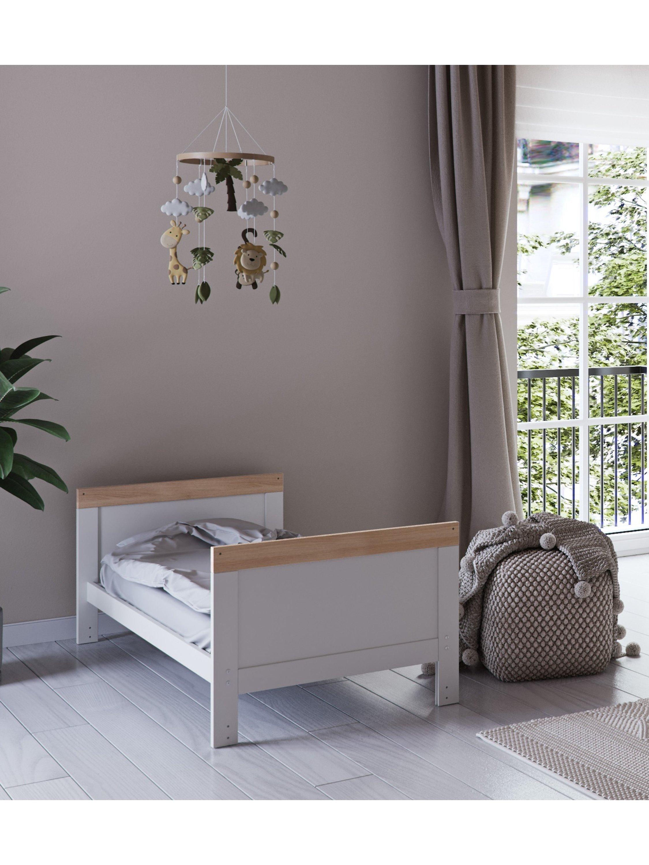The Florence range from Little Acorns has a modern yet traditional feel, coupled with stylish looks and practical features. The cotbed has 3 different mattress heights to match your child's development, plus teething rails. When the time is right for your toddler to have their own ‘big-bed’, it easily converts into a toddler bed, keeping them in the same sleep space until they're about 4 years old. The dresser has a great changing topper and 3 deep and spacious drawers. Each draw has a reinforced metal bar under its base, giving more durability and longevity of use. The double wardrobe comes with two shelves and two hanging rails. The lower shelf and hanging rail are removable, so when you need to put longer clothes in you can create the space.