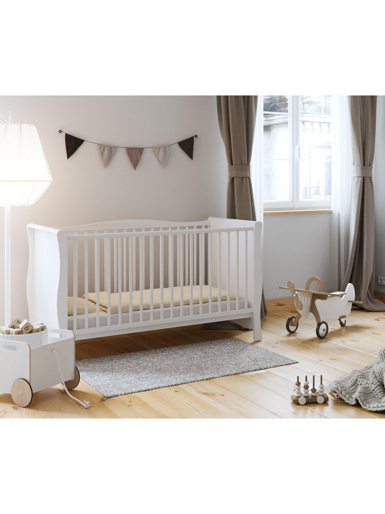 The Little Acorns Traditional Sleigh Cot has a classic, clean look featuring beautiful curved edges which is sure to compliment any nursery. With its sturdy construction, this beautiful cot has 2 mattress heights to adapt to your child as they grow. Plus, it's smaller size makes it ideal for tighter spaces.