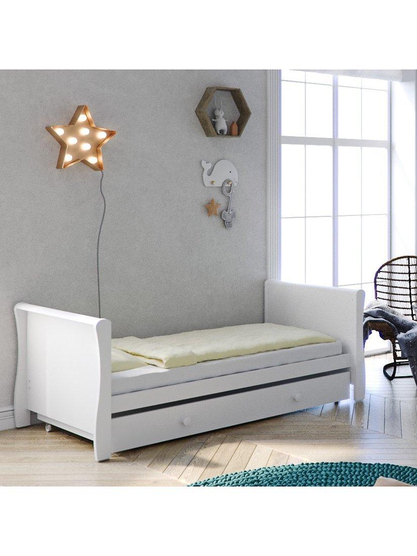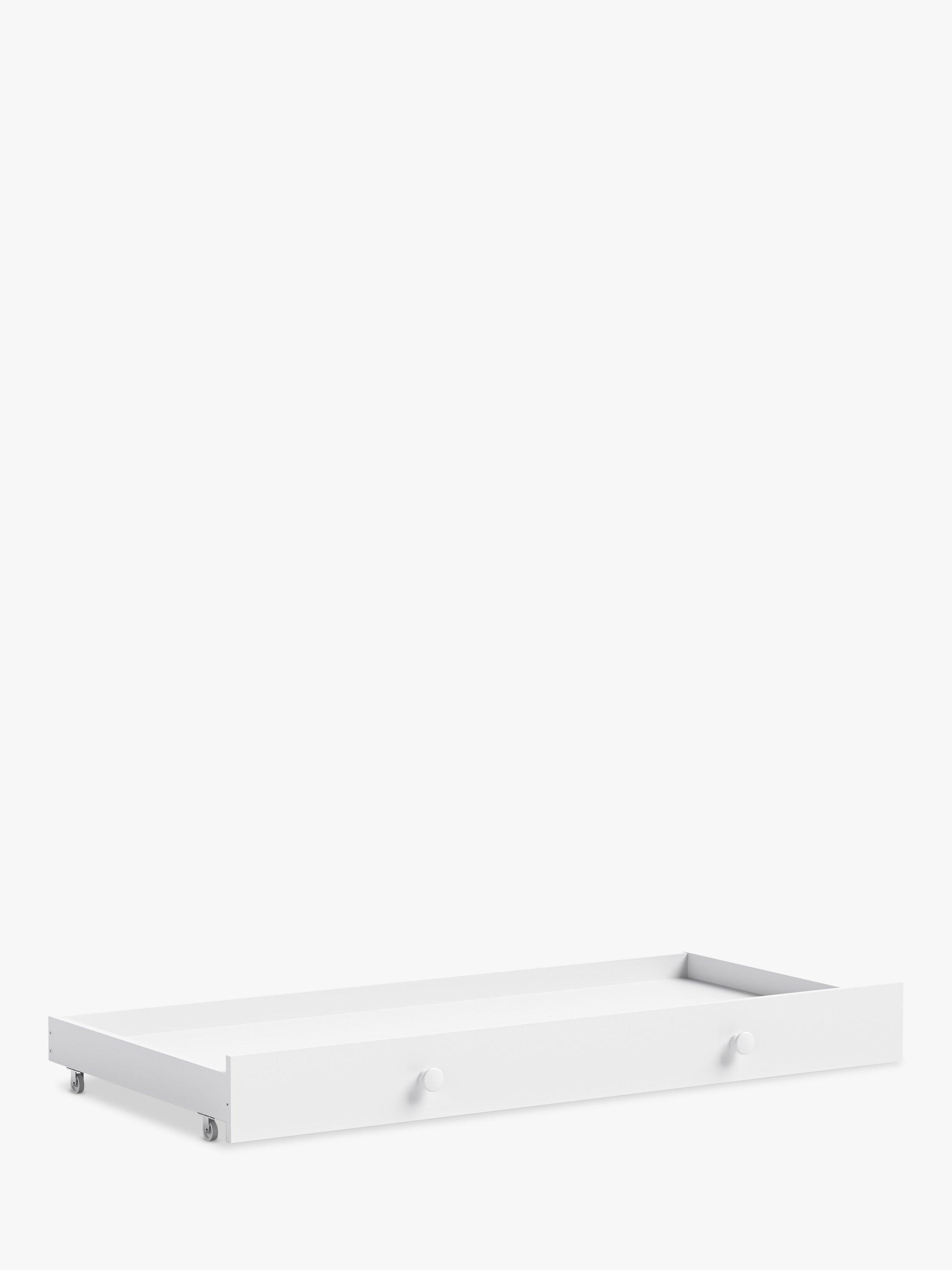 The Little Acorns traditional sleigh cot bed drawer is an ideal storage solution when space is limited. Running on fixed caster wheels its super smooth to use. Perfect for clothes, toys or changing accessories, the storage drawer sits beautifully under the bed (in cot or toddler bed mode) and thanks to the stylish design, it is sure to look stunning in any nursery, whatever the decor.