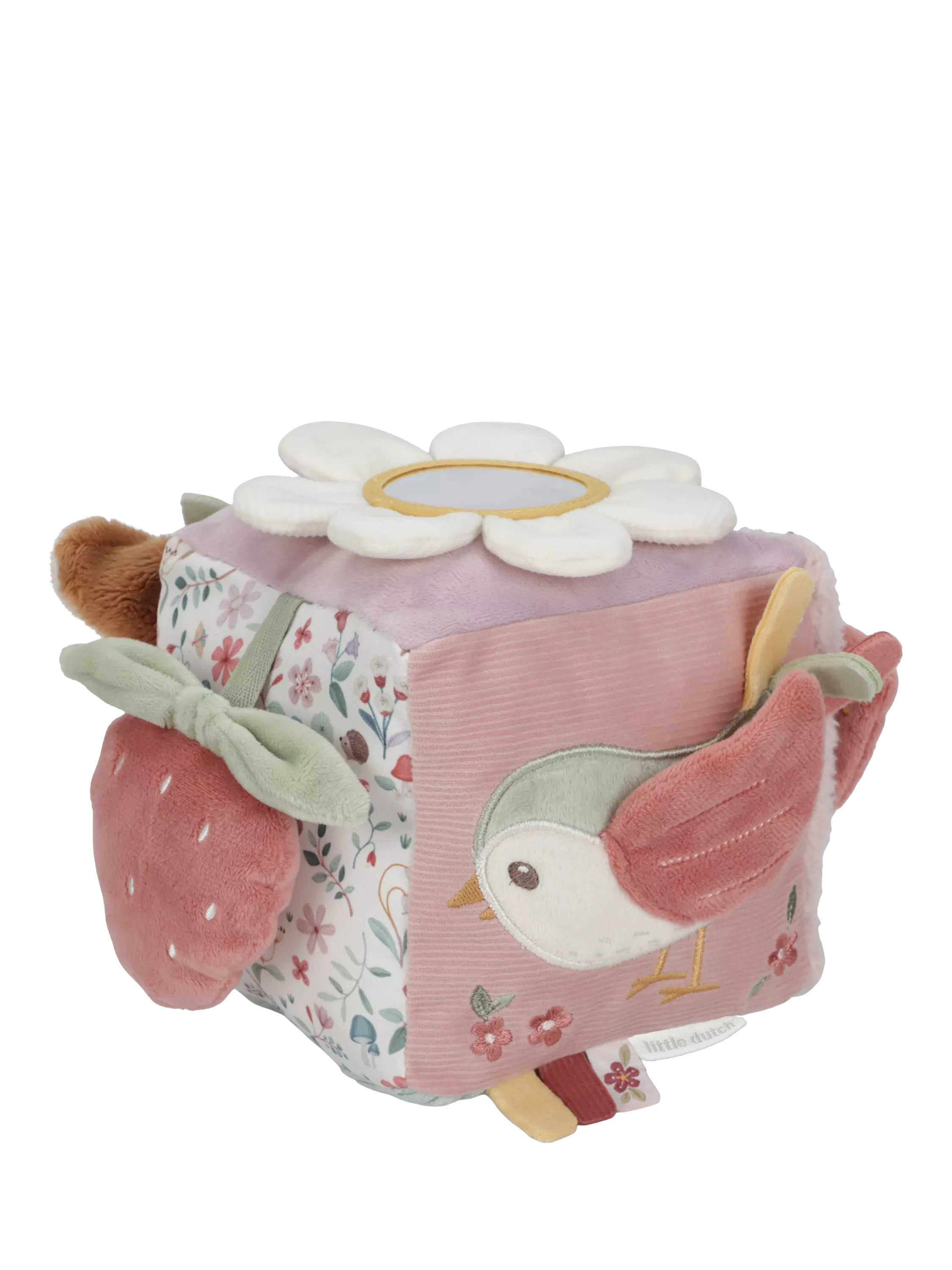 Explore the Fairy Garden where the deer, bird and butterfly live and play. Rendered in an array of appealing hues, this super-soft activity cube will trigger your baby's curiosity.