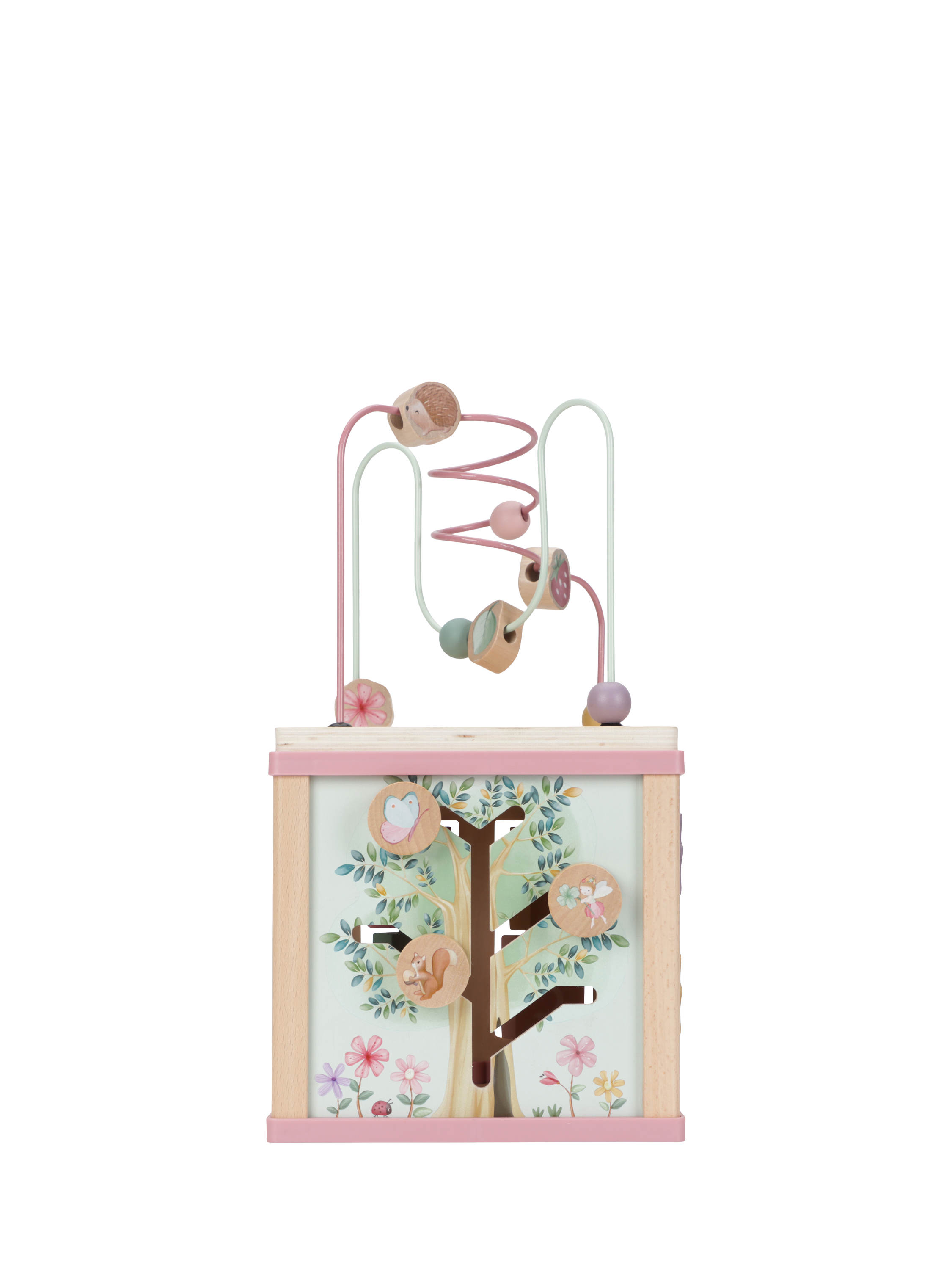 Embark on an adventure exploring every side of this entertaining cube of activities. Each side features delightful Fairy Garden elements and presents a fun educational activity, including a shape sorter, spinning gears, puzzles, and a challenging bead maze on top. Through each engaging task, your little one will enhance fine motor skills and be inspired to unleash their creativity. This activity cube not only stimulates curiosity in children but also ensures hours of playful discovery.