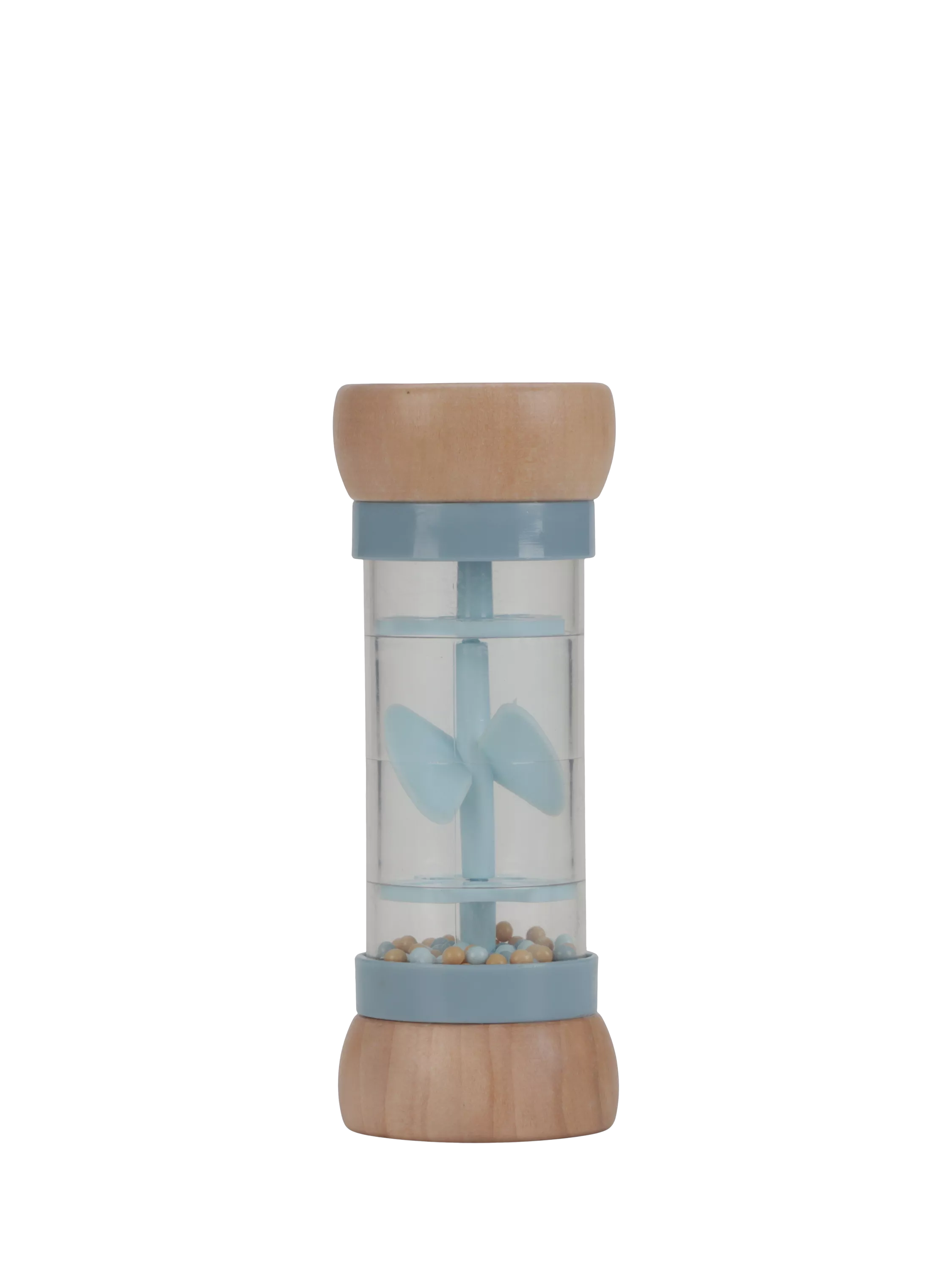 Shake and rattle! Turn the rain rattle and listen to the soothing sound of the balls moving from one side of the rainmaker to the other.