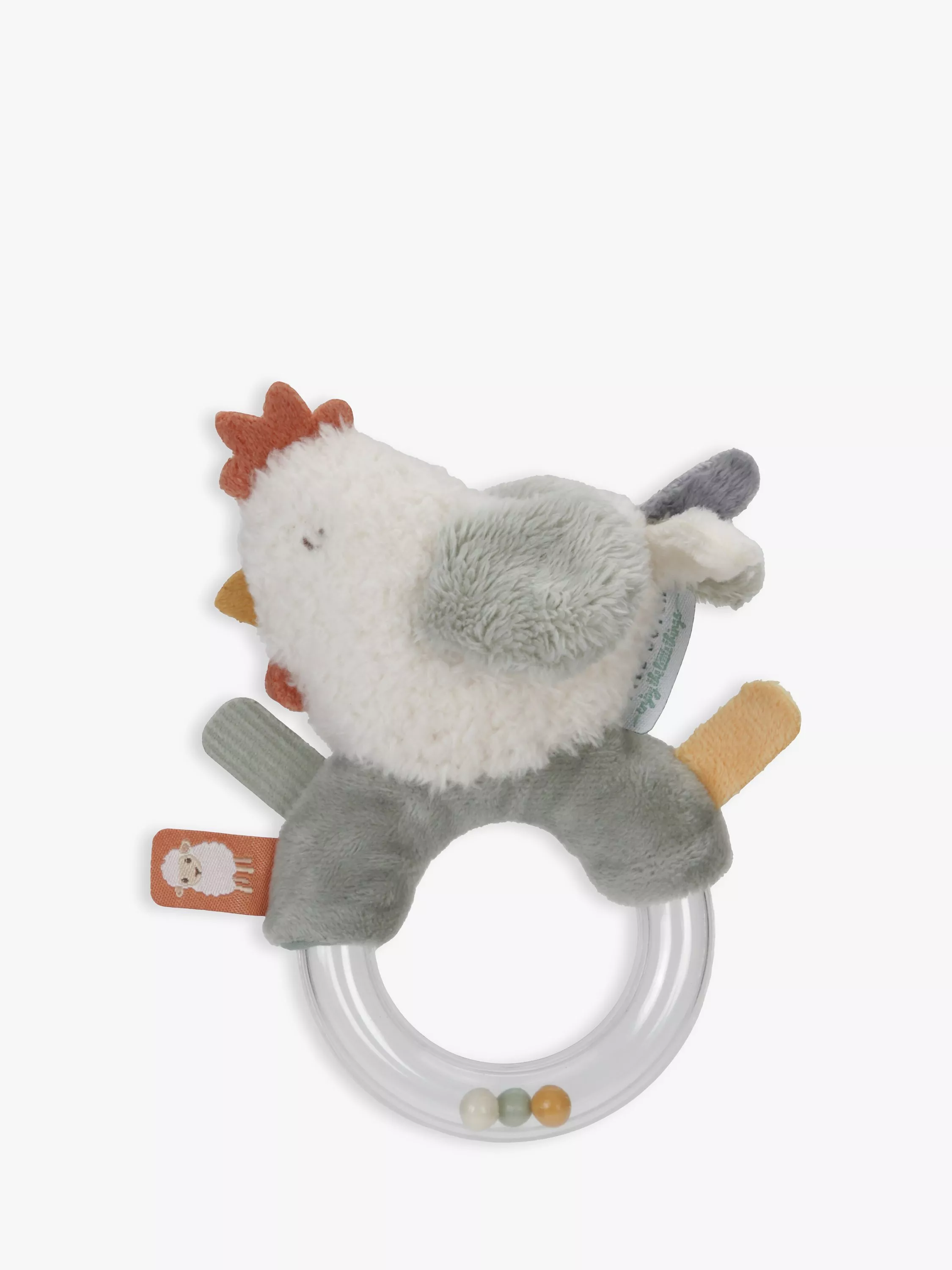 Grab, twist and shake! This ring rattle in the shape of a chicken will stimulate your baby's curiosity. Clap the wings or rub the soft belly. The transparent ring is filled with 3 small beads that rattle when your child plays with it. This attractive baby toy improves hand-eye coordination and stimulates the senses.