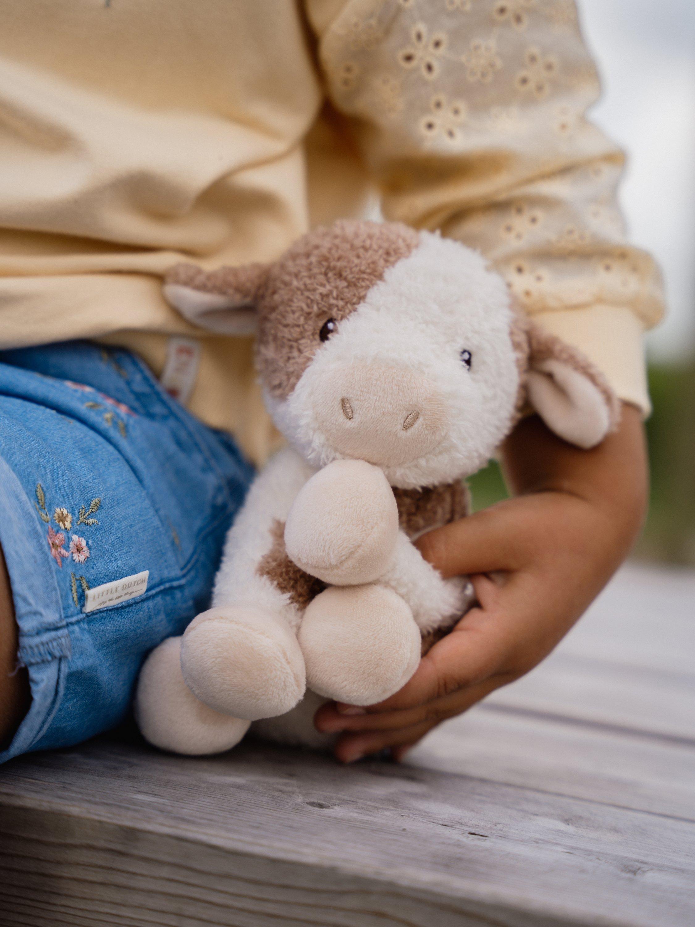Mooooo! This cow loves to play. She likes to stay with you and can go anywhere with you. This little cow is made of wonderfully soft materials, which makes her incredibly friendly and cuddly.