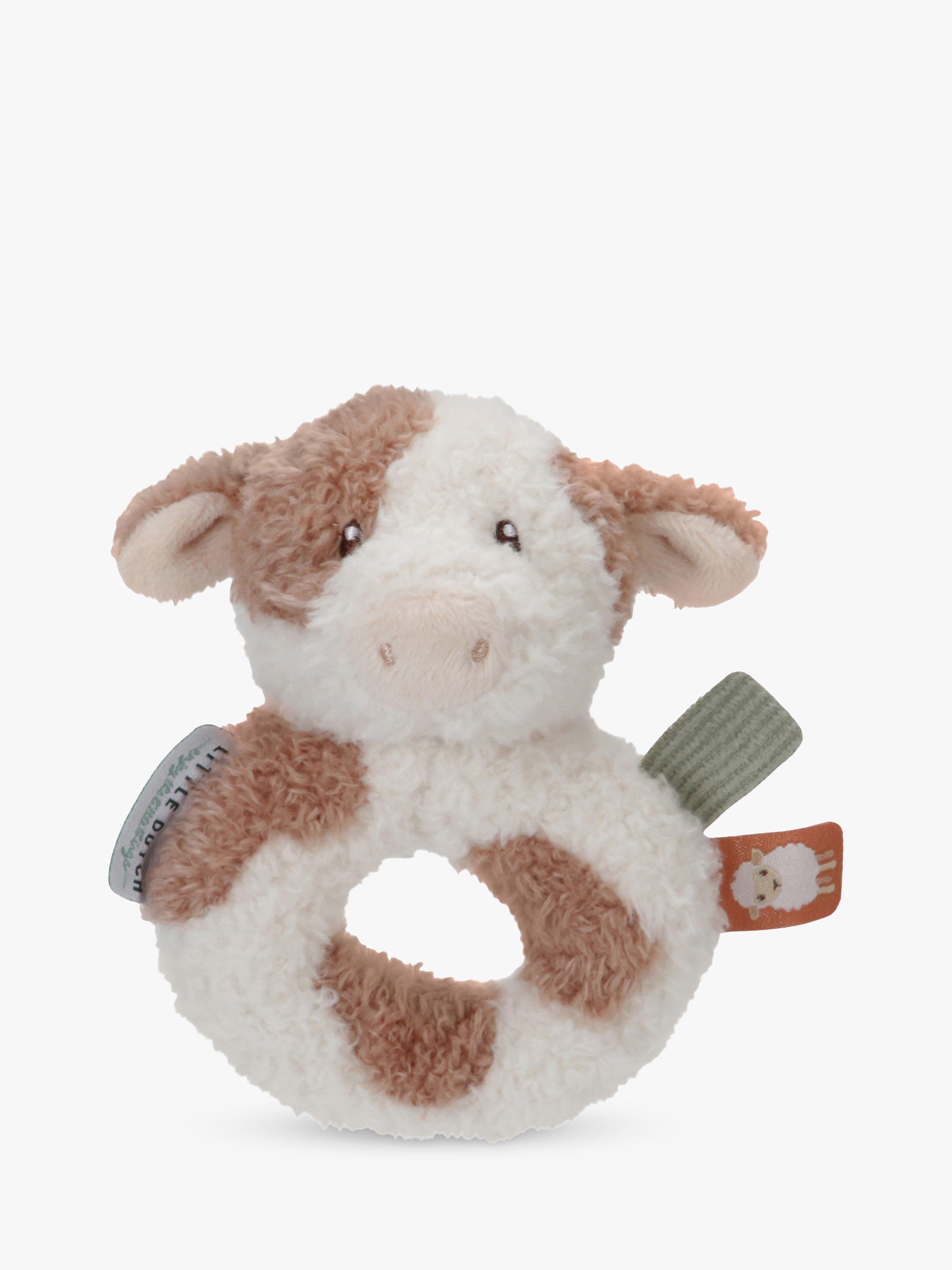 This beautiful box contains three soft products for sleeping, cuddling, and playing. The soft cuddle cloth with a cute little chicken is perfect for snuggling, but also great for a game of peek-a-boo. The cuddly sheep is always up for a big hug and likes to go everywhere. This set also includes a cow ring rattle for playing with, which stimulates hand-eye coordination and curiosity in babies. All three products are packaged in one beautiful gift box.