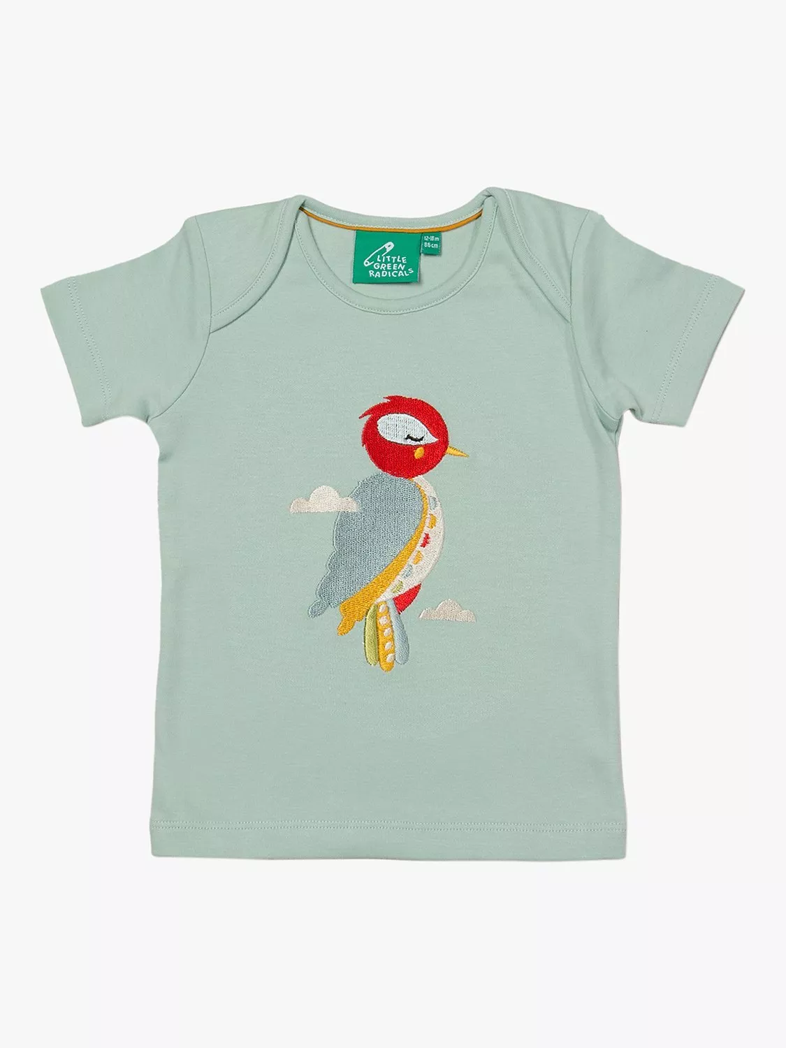 Little Green RadicalsBaby Woodpecker T-Shirt, Powder Blue