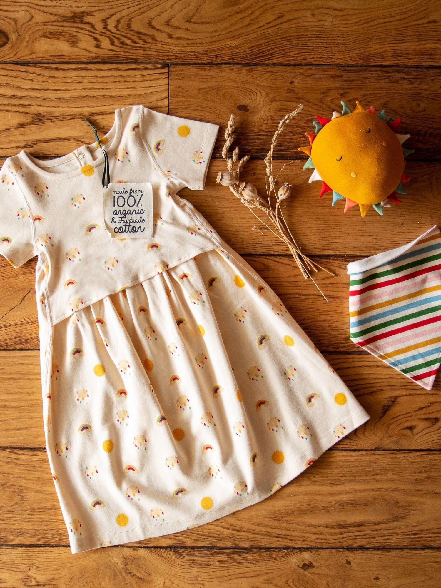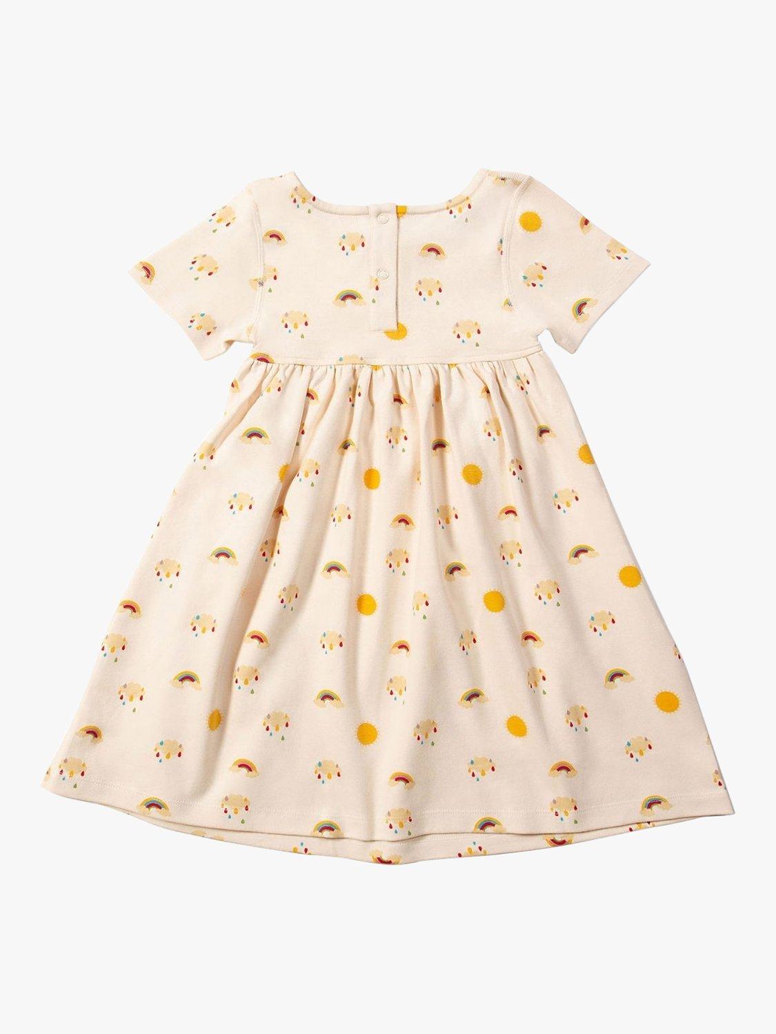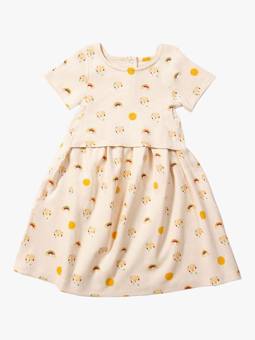 Little Green RadicalsKids' Adaptive Organic Cotton Sunshine & Rainbows Easy Peasy Dress, Cream