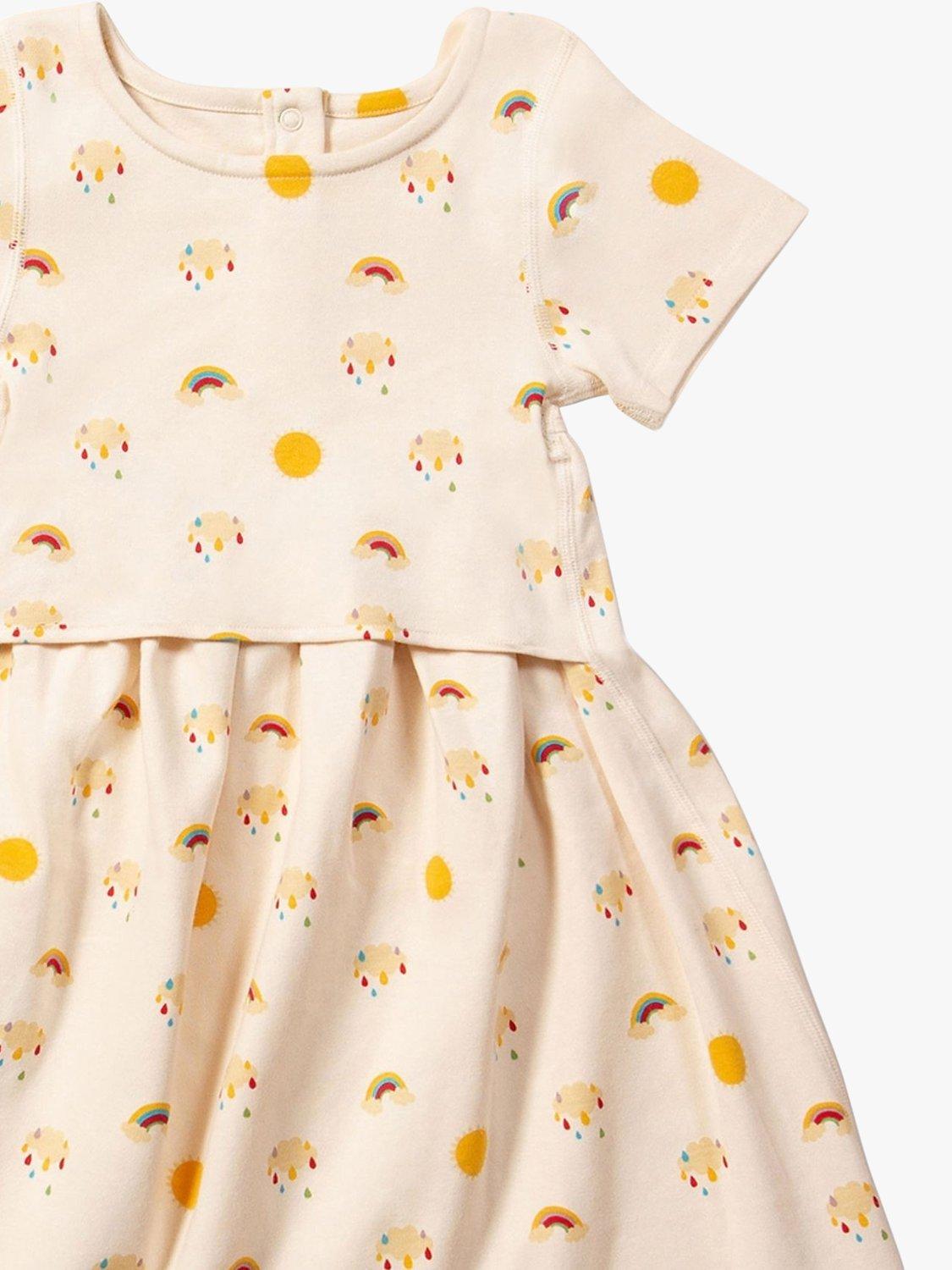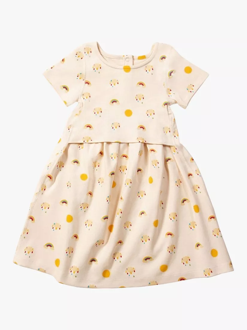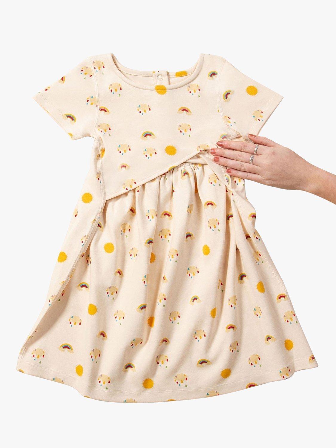 Little Green RadicalsKids' Adaptive Organic Cotton Sunshine & Rainbows Easy Peasy Dress, Cream