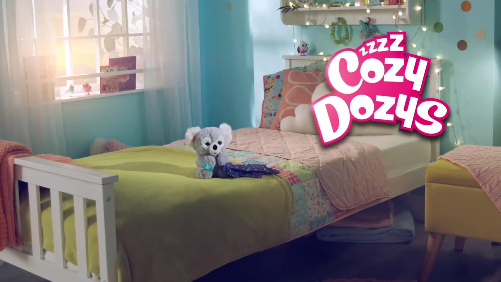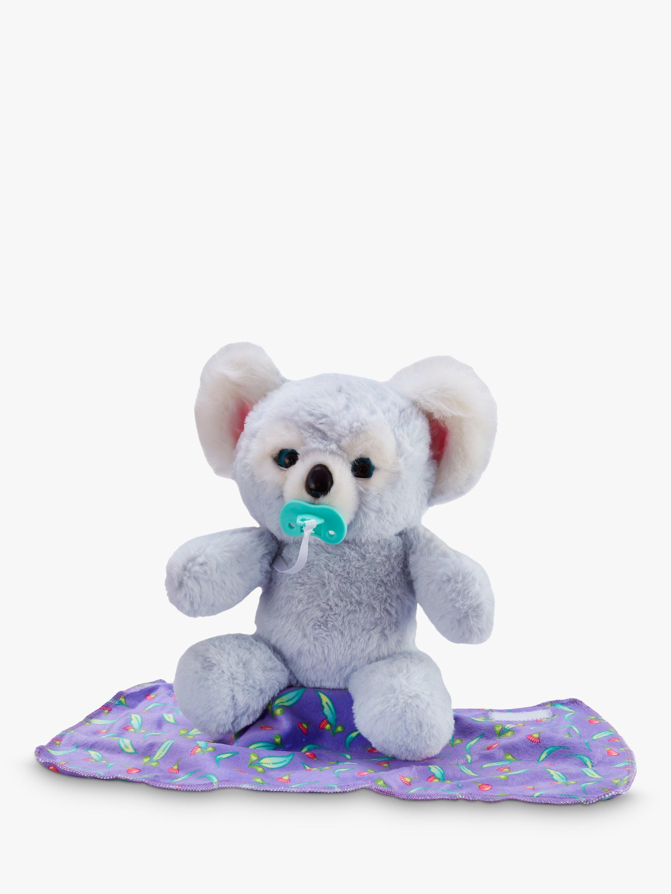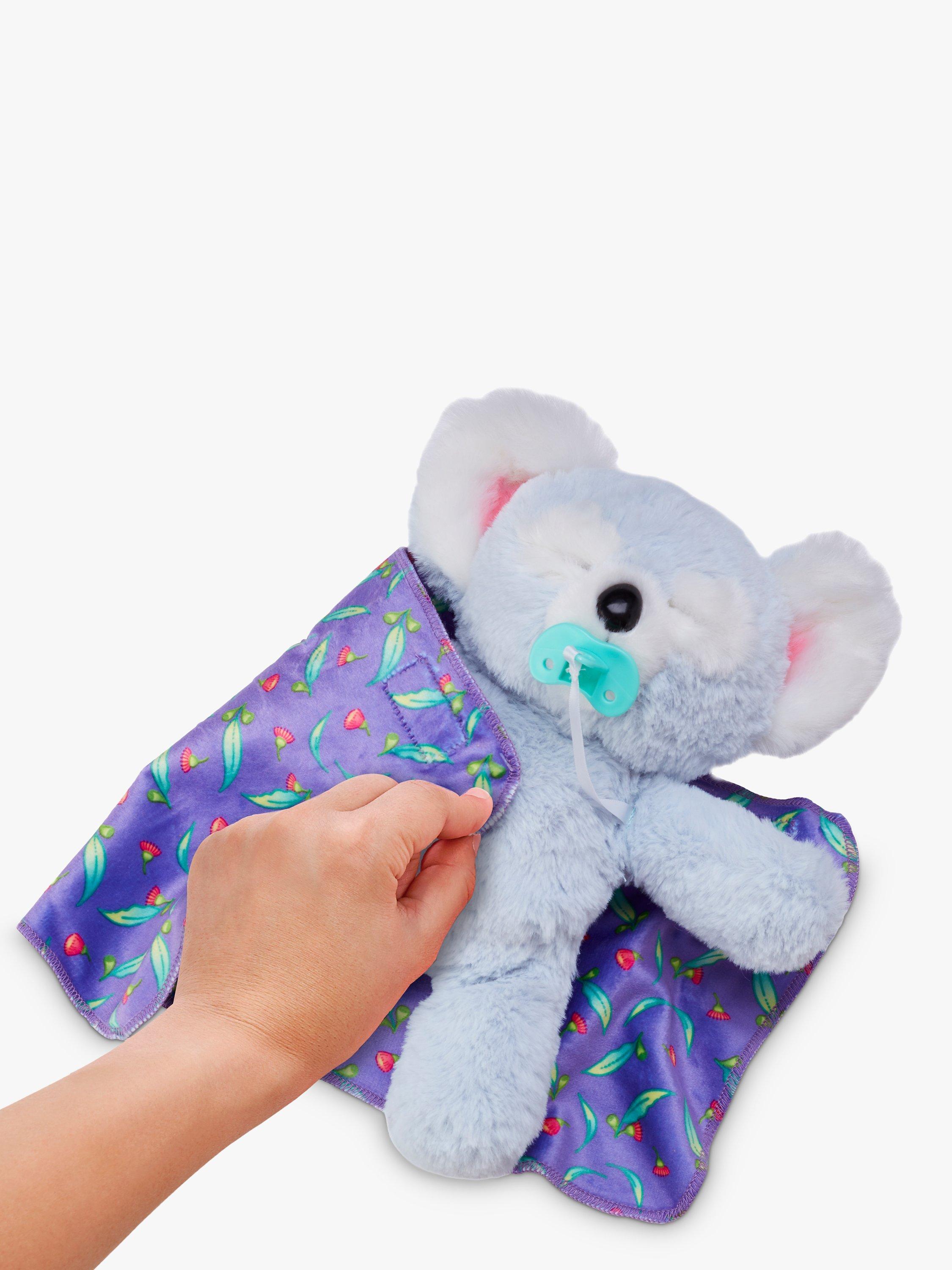 Cozy Dozys Koala is the super soft and interactive cuddly Koala bear that is so playful and the perfect bedtime buddy. Kip the Koala responds to being tickled on its tummy and patted on its head. There's a soft blanket included to lovingly wrap around your bear and a toy pacifier to help soothe Kip to sleep.