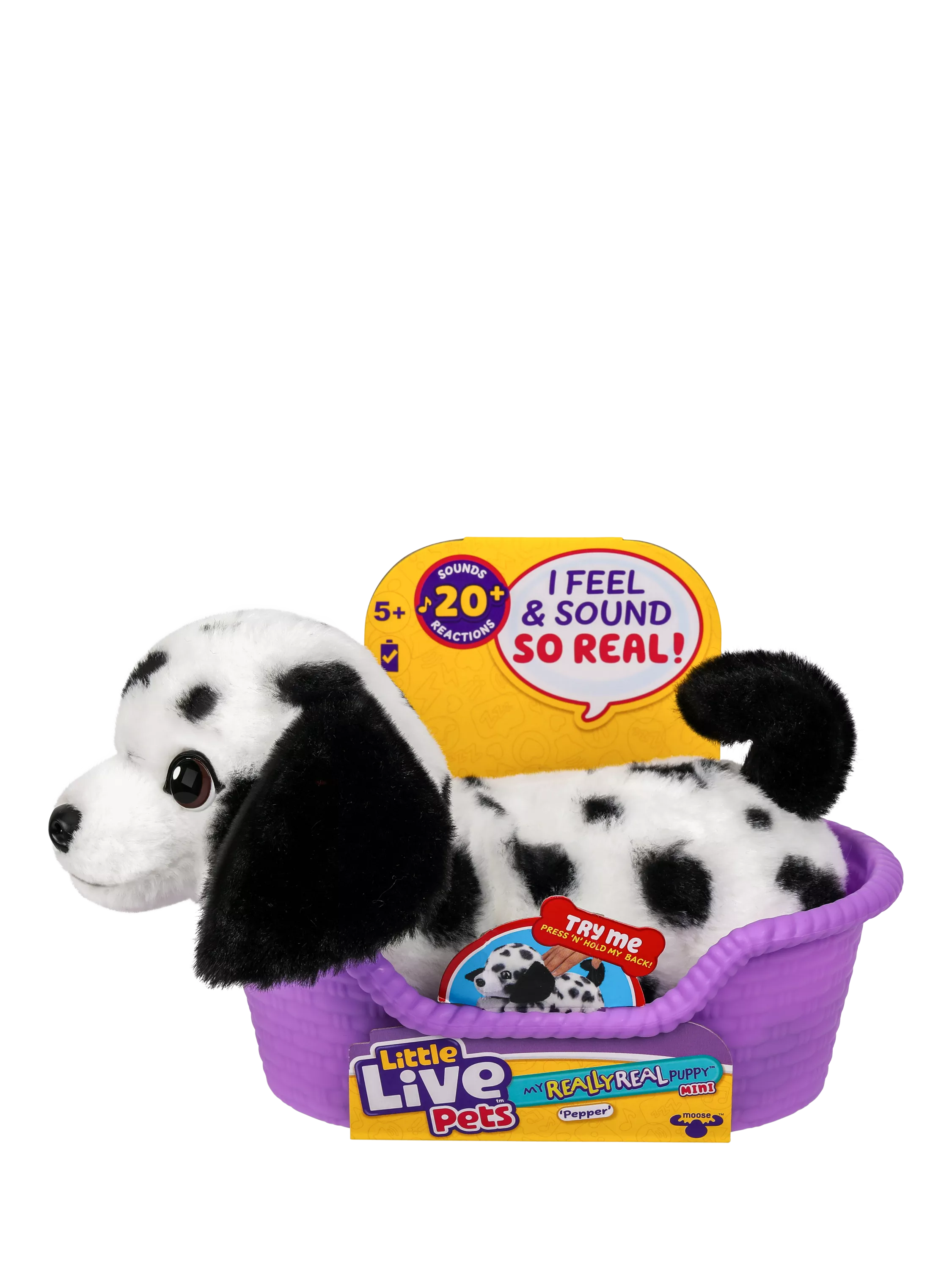 Little Live Pets My Really Real Puppy Minis! Meet Pepper, the adorable Dalmatian puppy that looks and feels so real with the softest fur and irresistibly cute puppy eyes. He reacts to your touch with over 20 sounds and reactions!