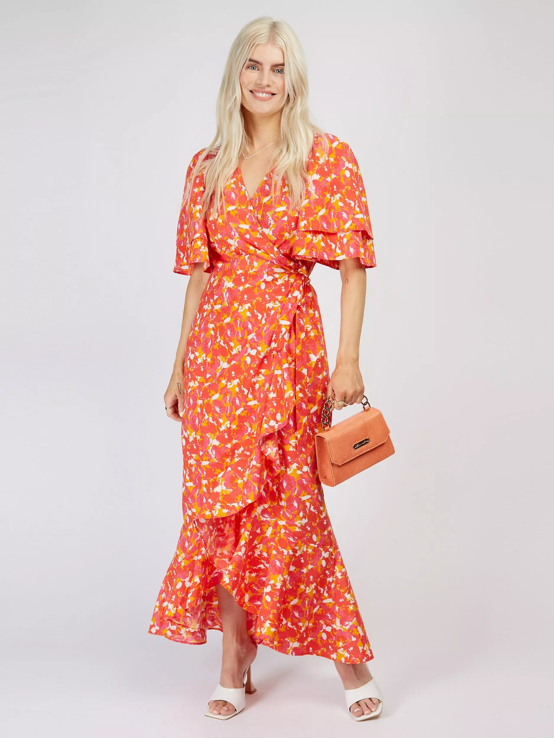 Little Mistressby Vogue Williams Maxi Floral Wrap Dress, Red/Pink