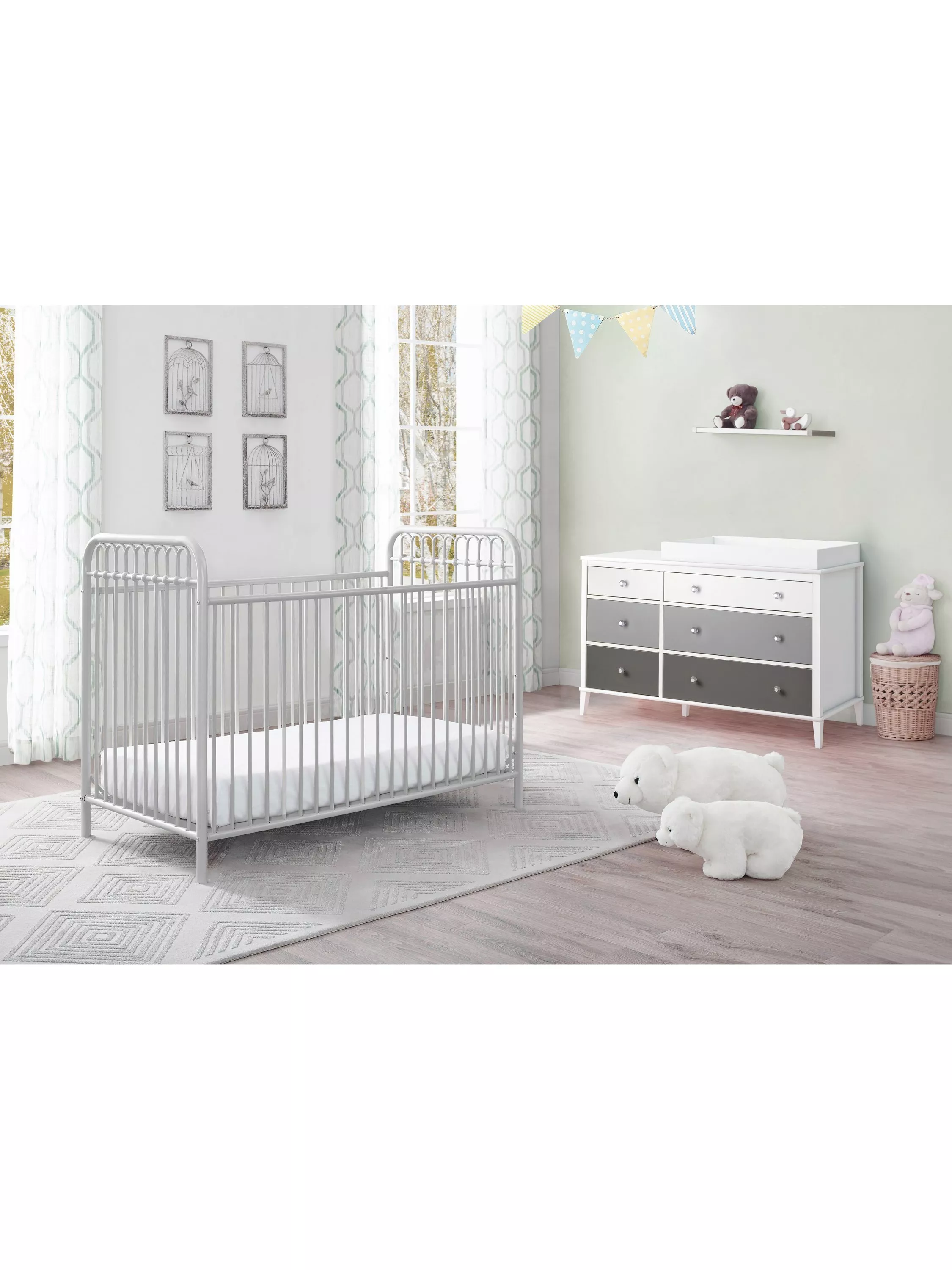 Made of laminated particleboard, the classic chassis is accented by the ombre-styled drawer fronts for a fun look. Two sets of drawer knobs are included so you can customize the look of the Changing Table. The durable metal drawer slides feature built-in stops for safety. The changing table topper fits a standard-size changing pad (not included) and can be removed when your child outgrows it to convert the changing table into a youth dresser. Place all of your diapers, wipes, and lotions in the 6 spacious drawers to keep your changing essentials organized and out of sight.