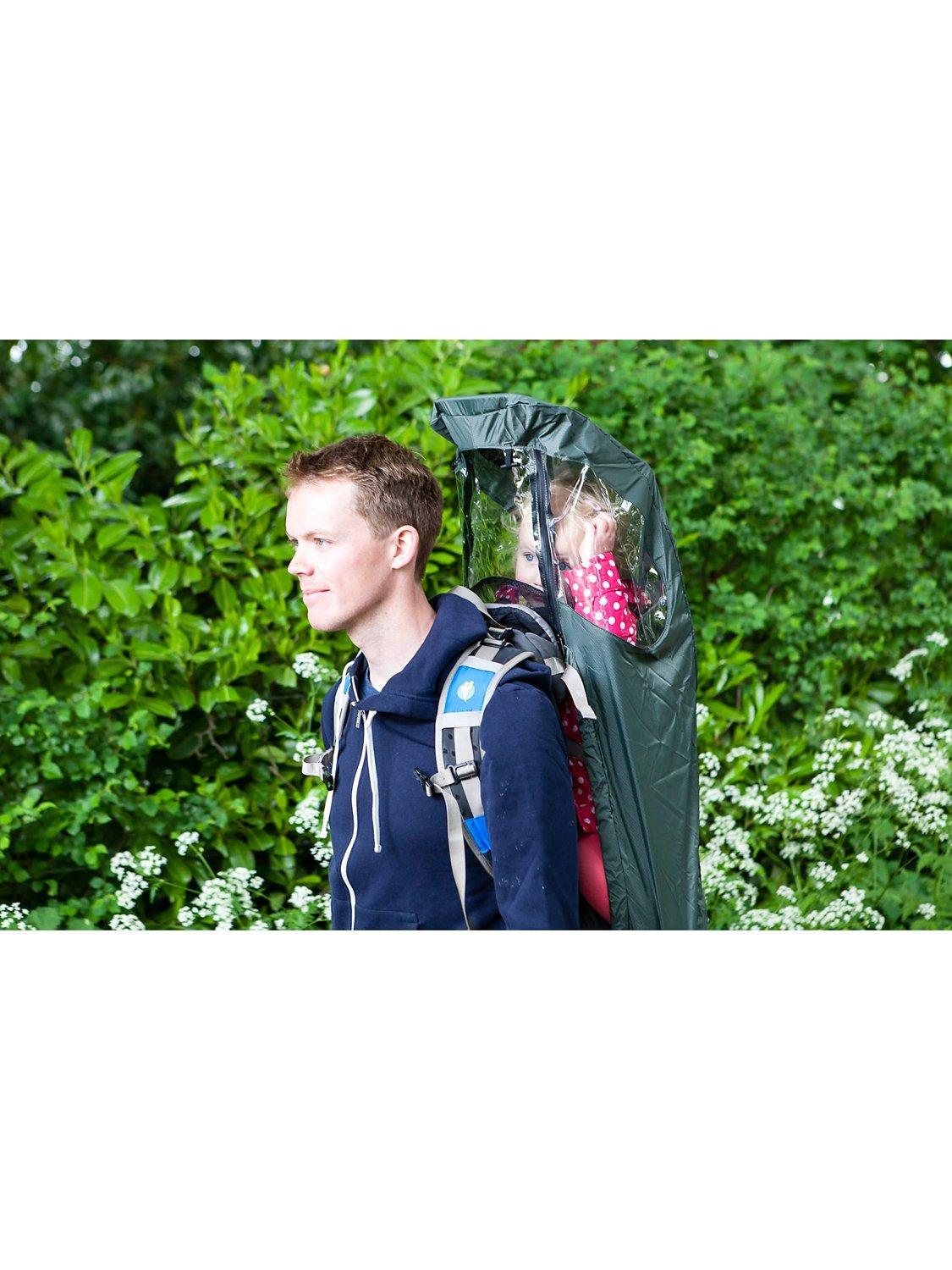 This waterproof cover with a simple aluminium frame will protect both child and carrier. The front window can be rolled up or left down for complete protection.