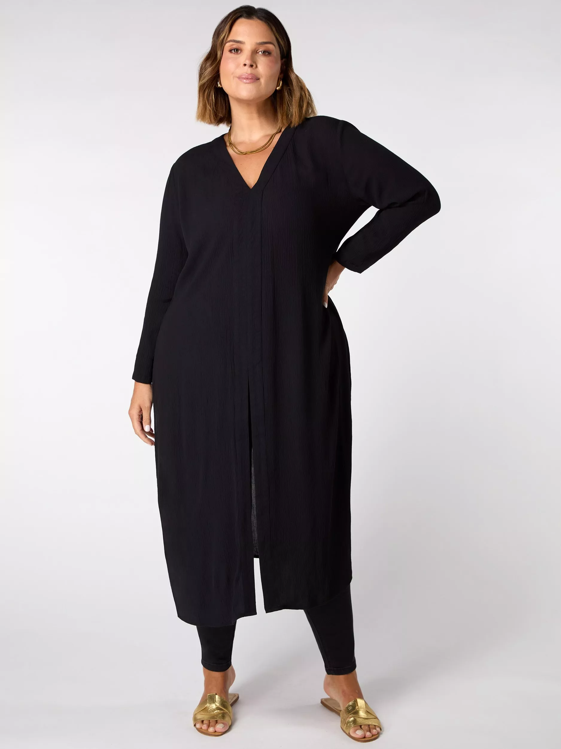 Longer in length for relaxed days ahead, this petite tunic top by Live Unlimited is free-from-fuss for timeless appeal. Framed with a classic v-neckline and long sleeves, it is made from soft viscose and is finished with a split front.