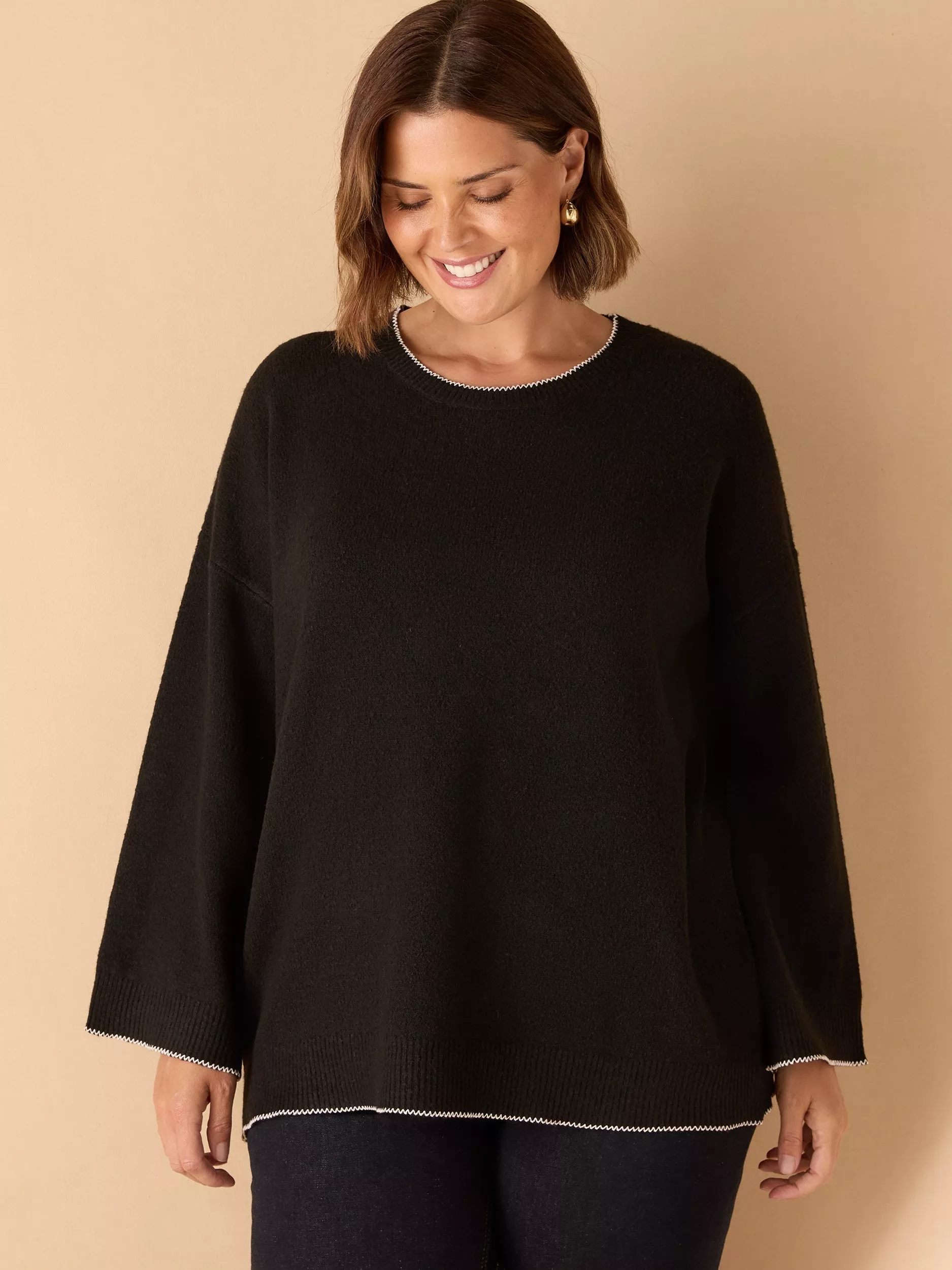 This Crew Neck Contrast Stitch Jumper adds a modern twist to a classic knit, featuring bold contrast stitching along the neckline and sleeves. Designed with a relaxed dropped shoulder and long sleeves, it offers a laid-back yet elevated fit. Finished with a ribbed hem, this jumper is perfect for adding subtle detail to your everyday wardrobe.