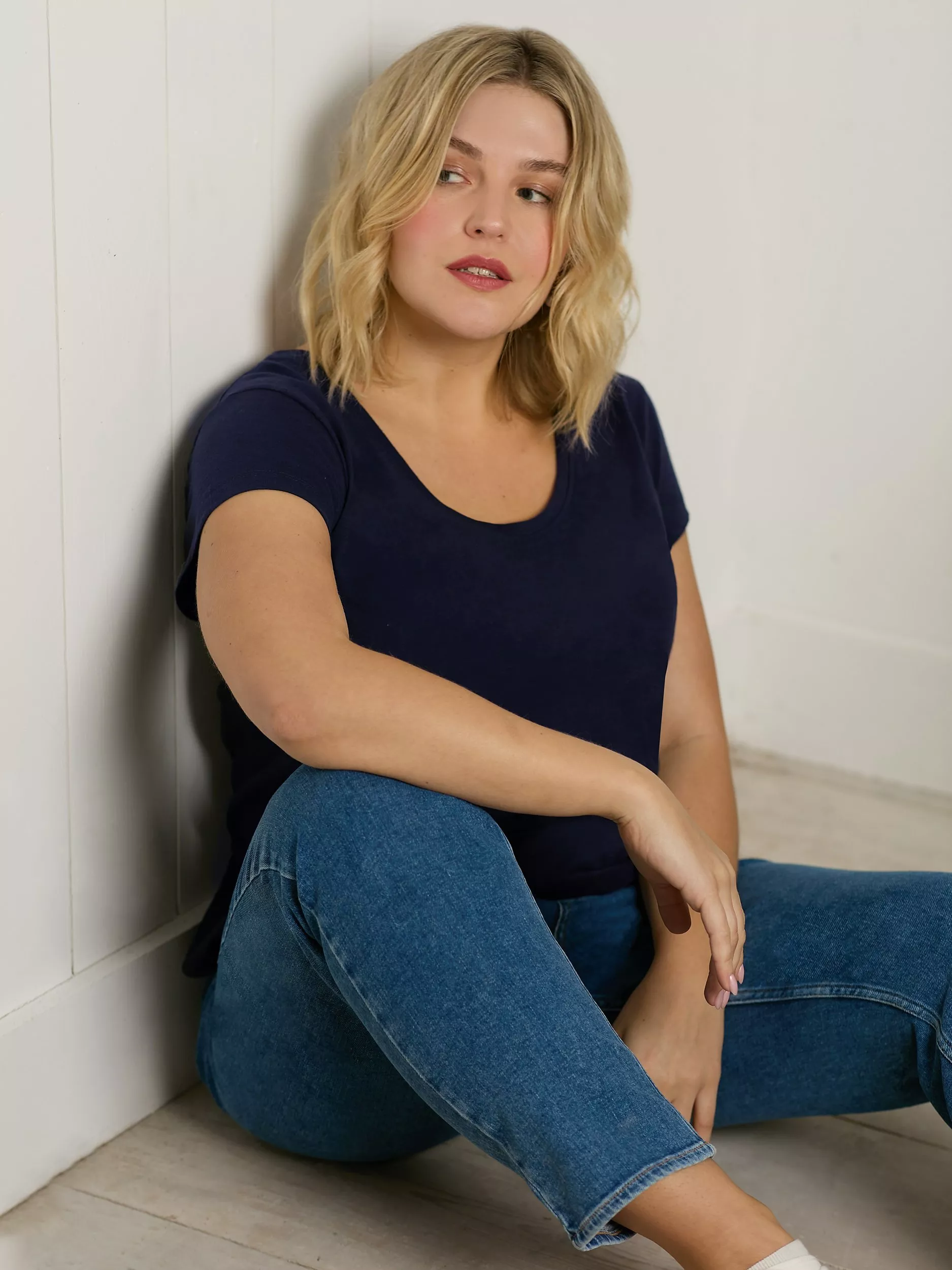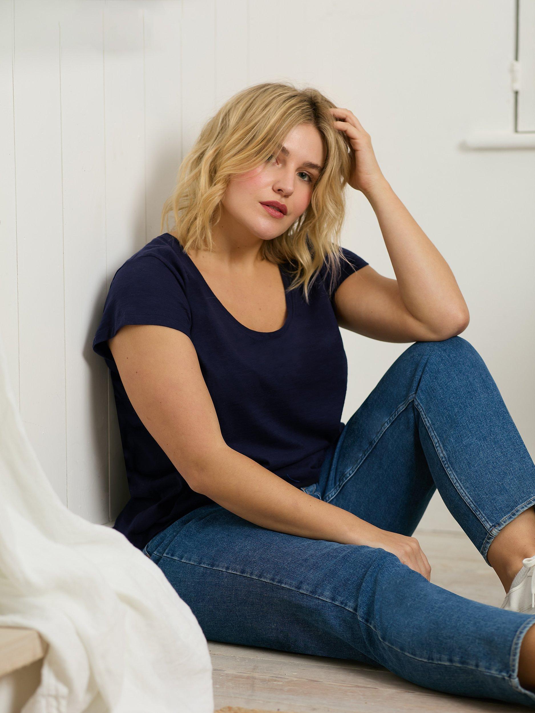 Simply cut with a scoop neck and short sleeves, it is light and breathable in cotton and pairs effortlessly with floaty summery skirts for warm days spent with good friends.