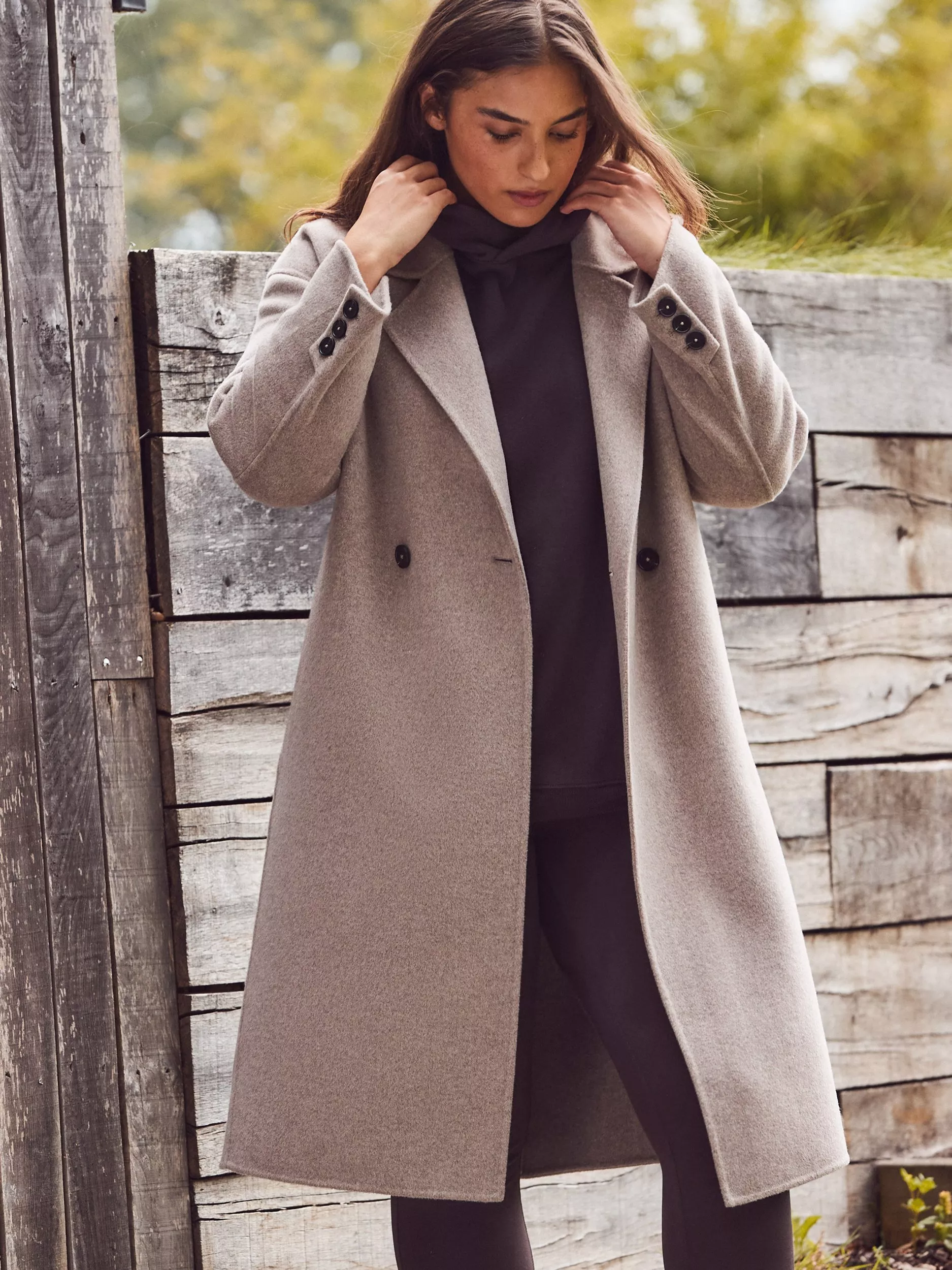 Elevate your outerwear with this Double Faced Coat, tailored from premium double-faced wool-blend fabric for a soft yet structured feel. Featuring a classic notch lapel neckline and double-breasted front, it’s designed with long raglan sleeves and a longline silhouette for a refined, flattering fit. Complete with practical pockets, this coat is a timeless layer perfect for cooler days and polished everyday style.
